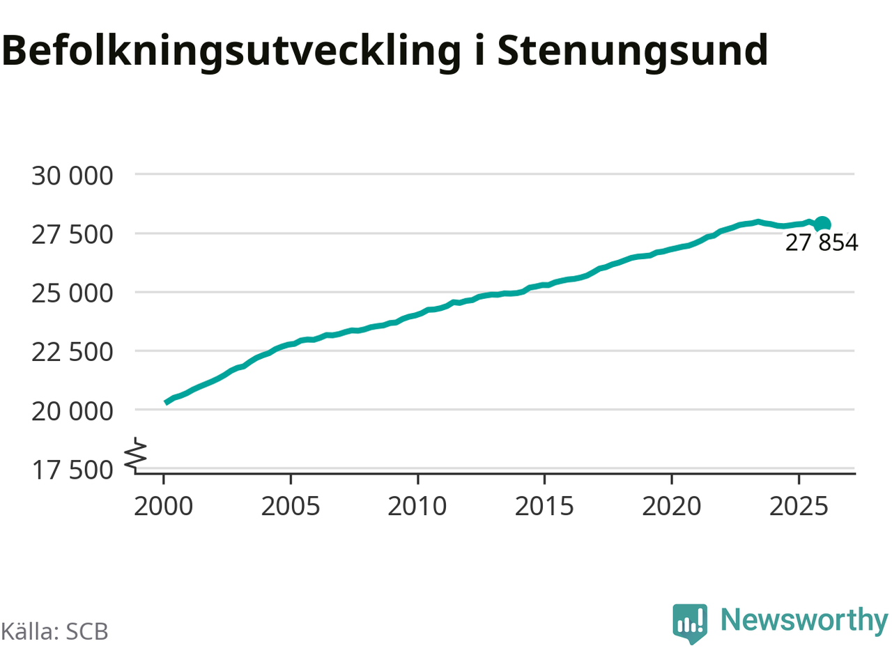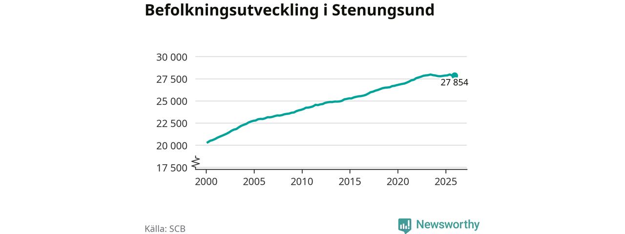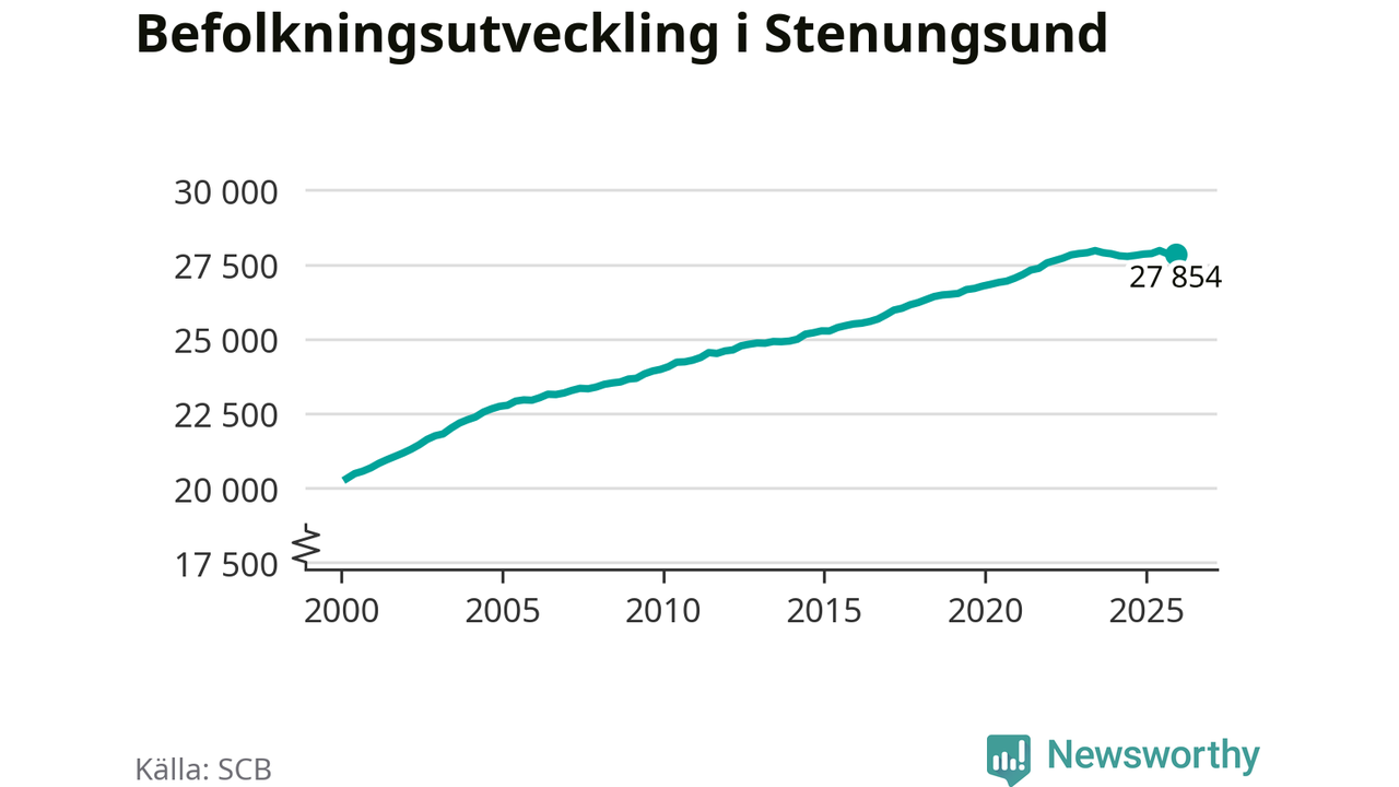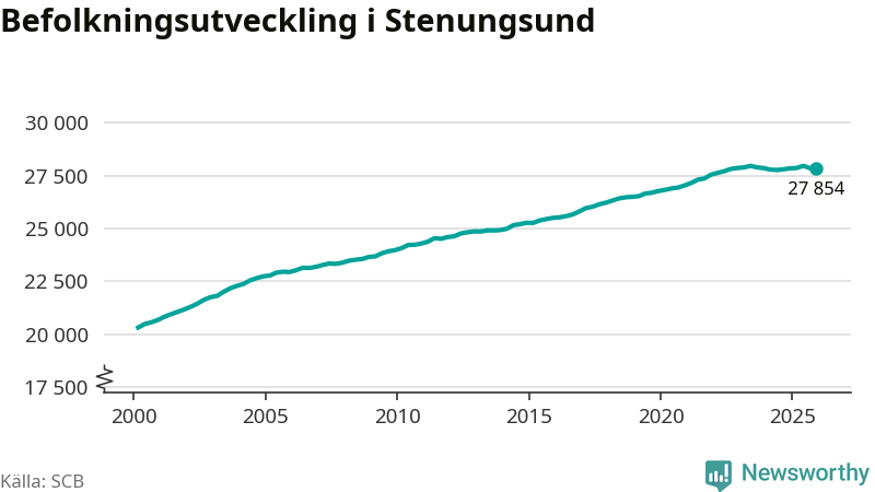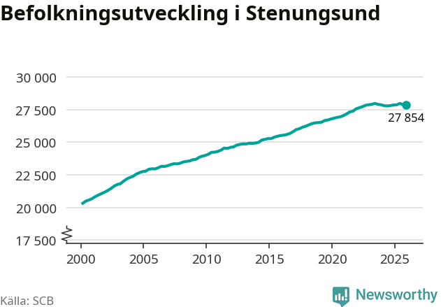 Den 31 december bodde 27 854 personer i Stenungsunds kommun, enligt SCB:s senaste siffror. Det är något färre än i slutet av tredje kvartalet, men skillnaden är så liten att den lika gärna kan bero på den lilla justering som SCB gör av siffrorna för att skydda enskilda individers identitet.