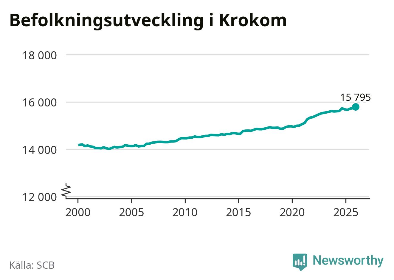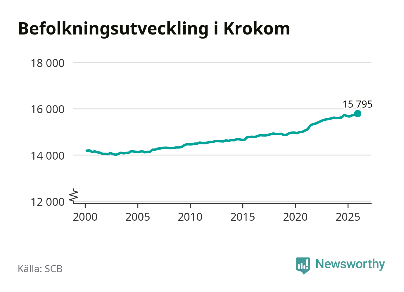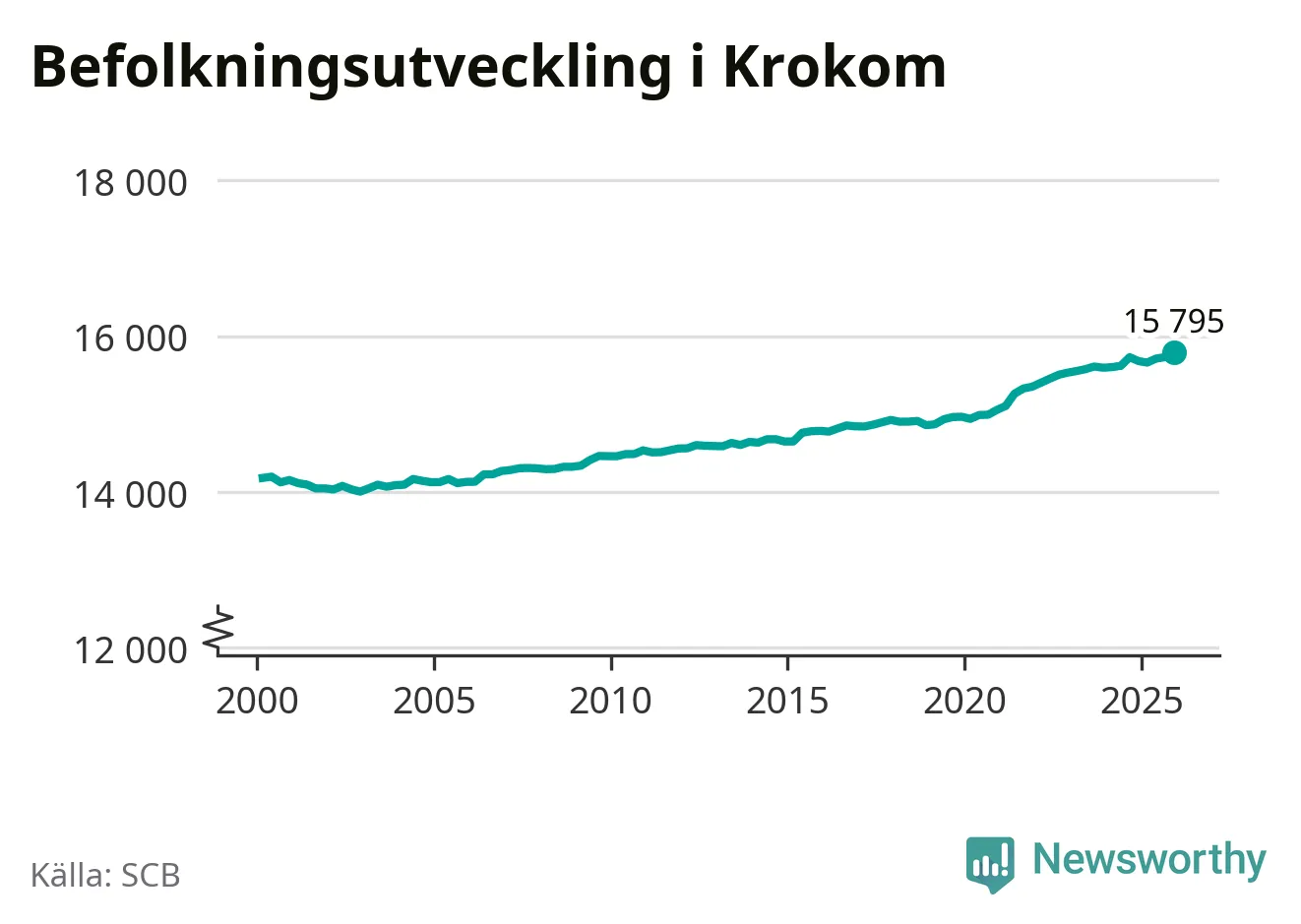 Befolkningen ökade i Krokoms kommun under det fjärde kvartalet 2025. Den 31 december bodde enligt SCB:s senaste siffror 15 795 personer i kommunen, vilket är 64 fler än i slutet av tredje kvartalet. Folkökningen är den näst största i Jämtland procentuellt sett.