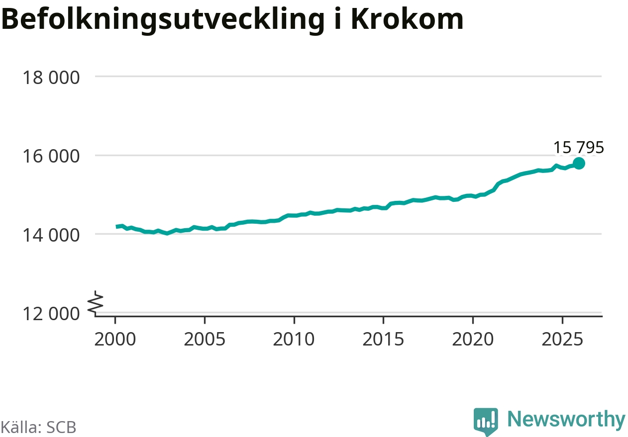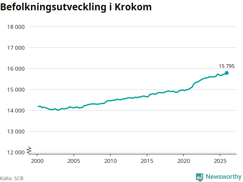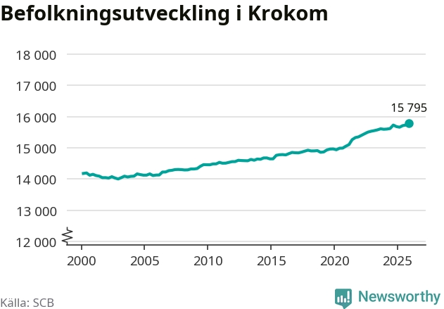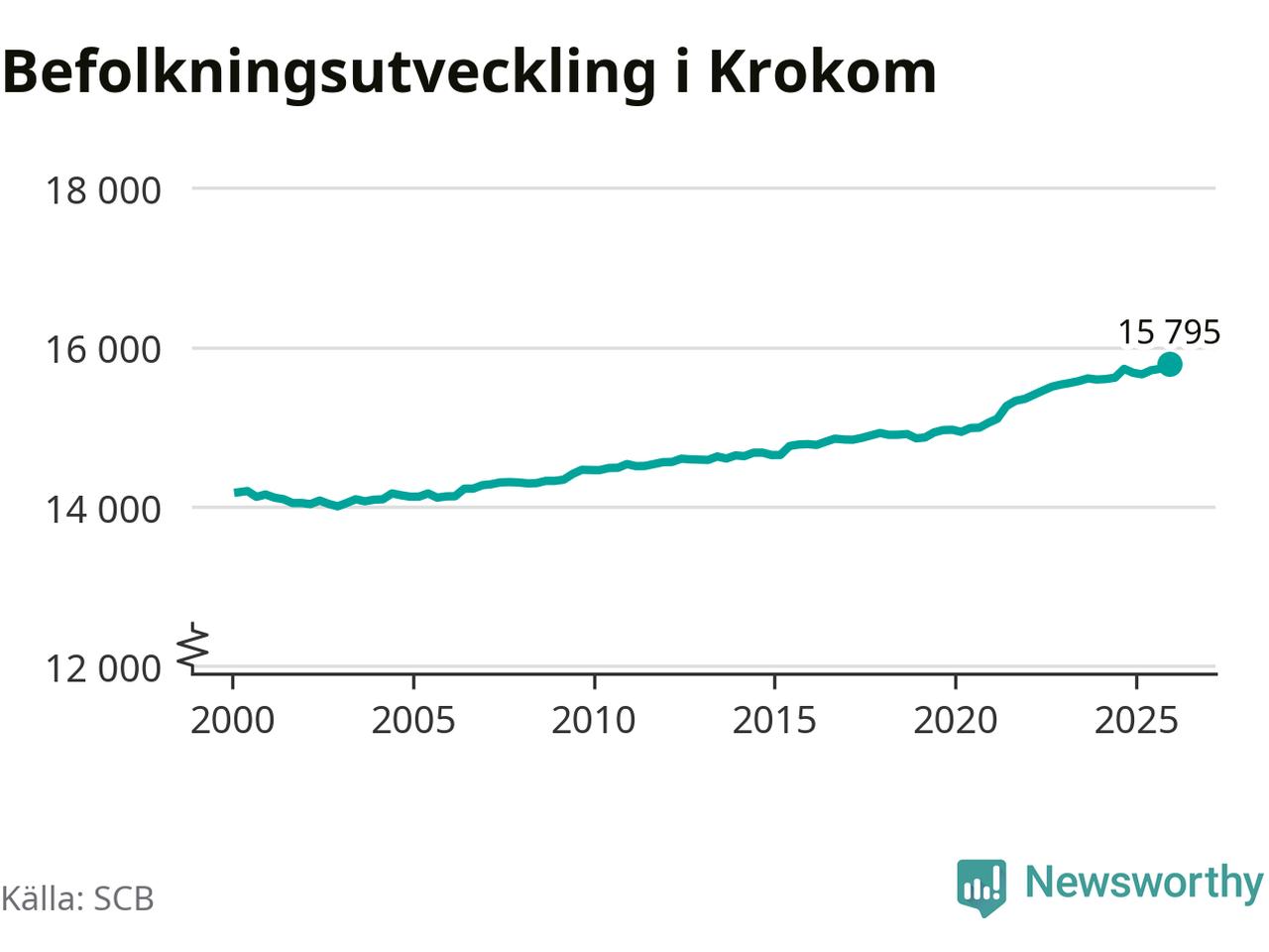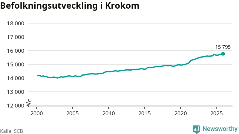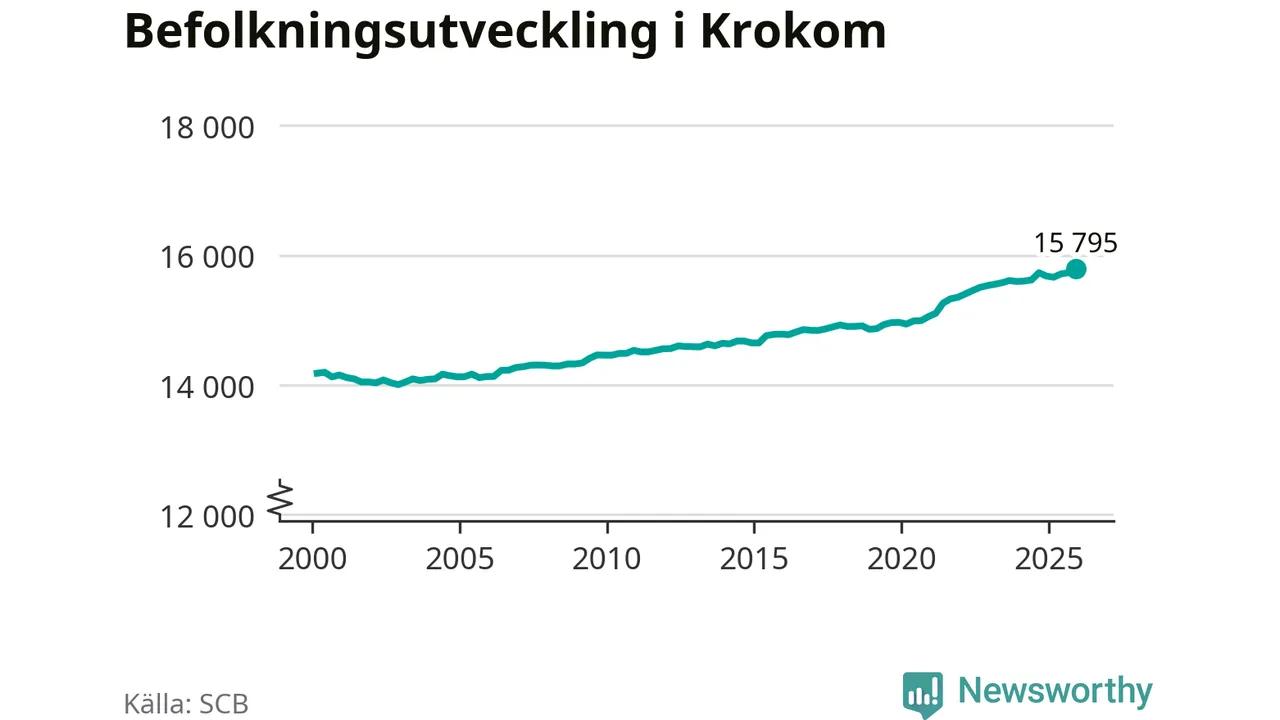Befolkningen ökade i Krokoms kommun under det fjärde kvartalet 2025. Den 31 december bodde enligt SCB:s senaste siffror 15 795 personer i kommunen, vilket är 64 fler än i slutet av tredje kvartalet. Folkökningen är den näst största i Jämtland procentuellt sett.
