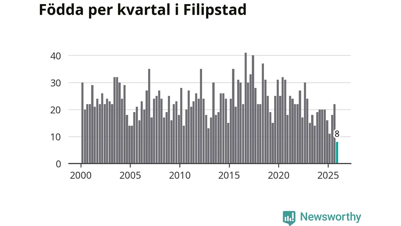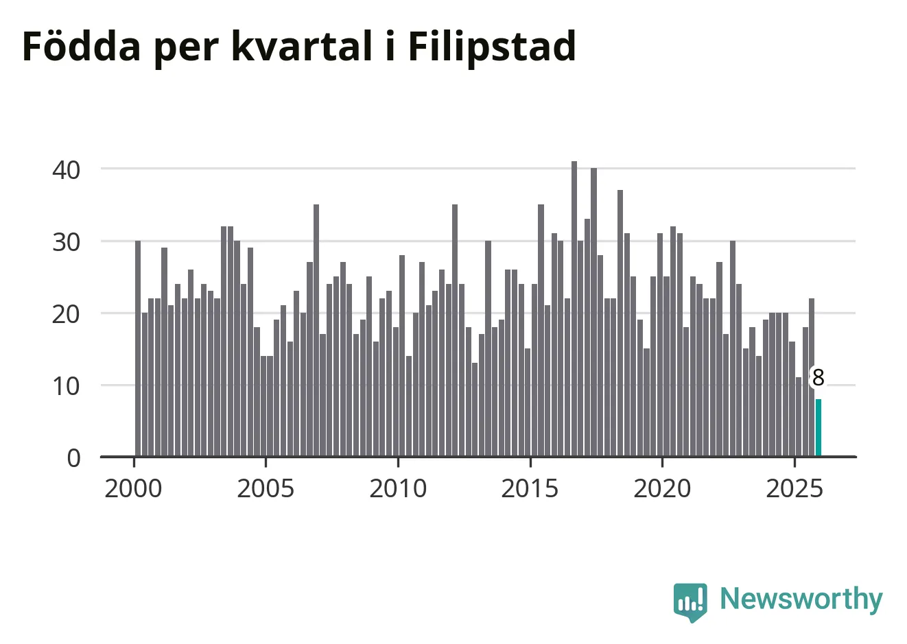 Åtta barn föddes i Filipstads kommun under fjärde kvartalet 2025. Det är den lägsta siffran hittills det här seklet. Det visar SCB:s senaste befolkningsstatistik.