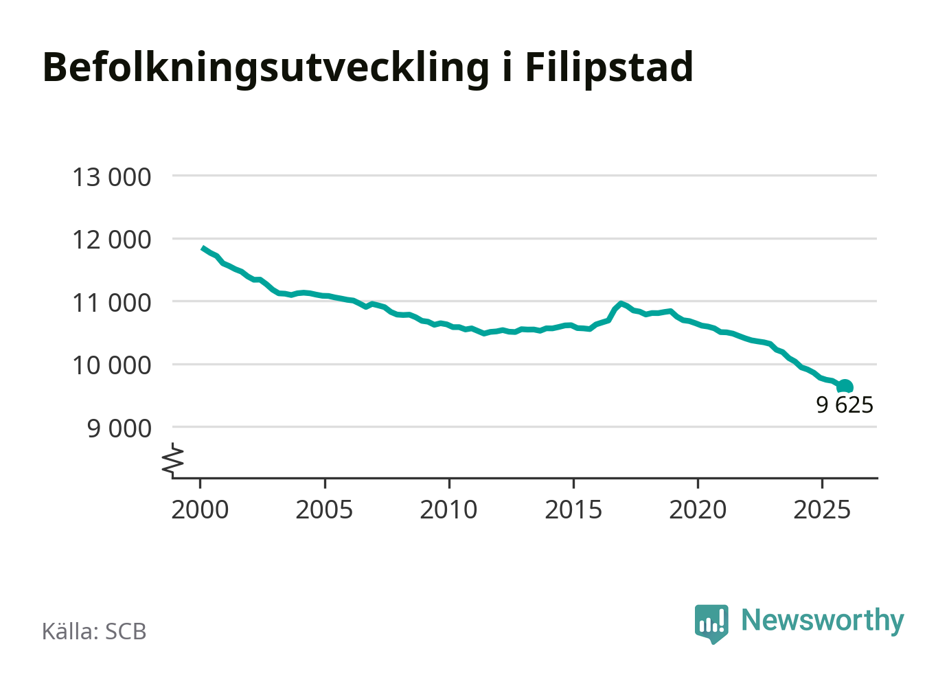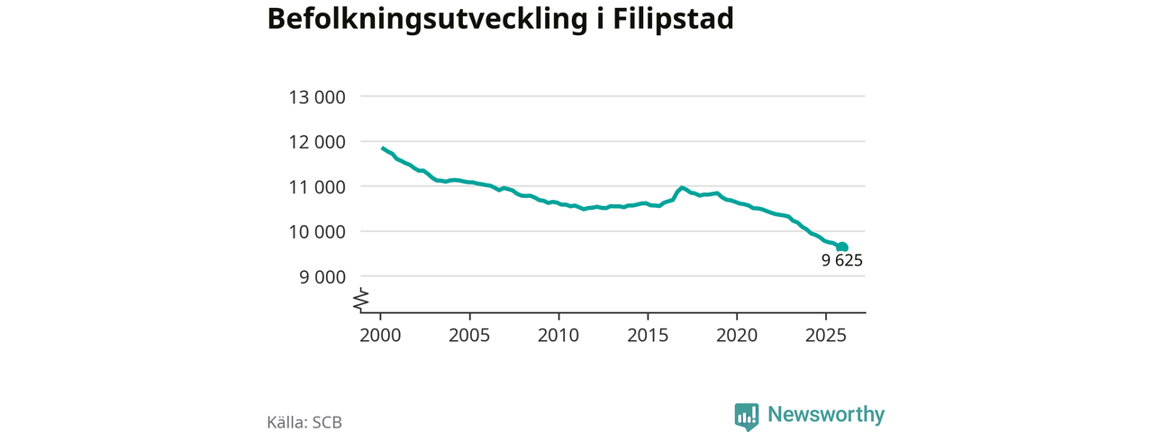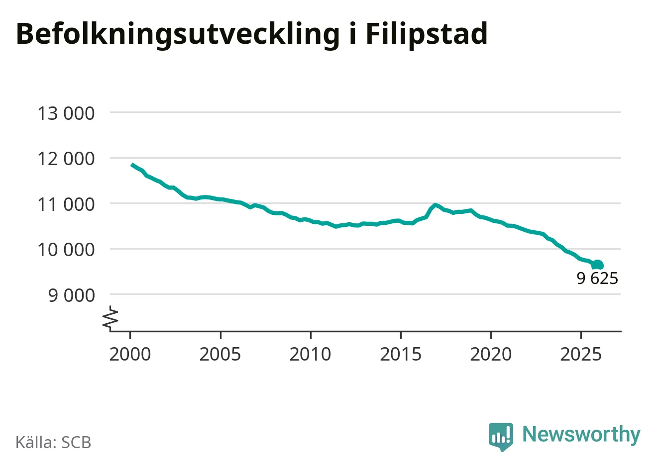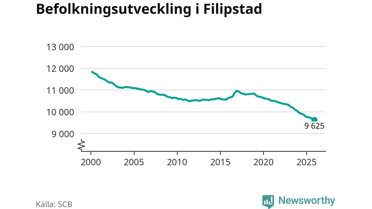 Befolkningen minskade i Filipstads kommun under det fjärde kvartalet 2025. Den 31 december bodde enligt SCB:s senaste siffror 9 625 personer i kommunen, vilket är 45 färre än i slutet av tredje kvartalet. Minskningen är procentuellt sett en av de största i Värmland.