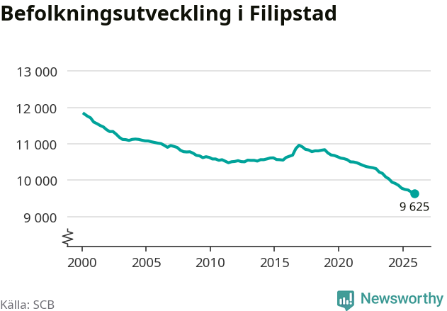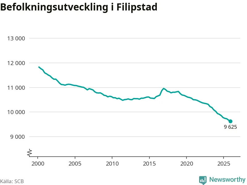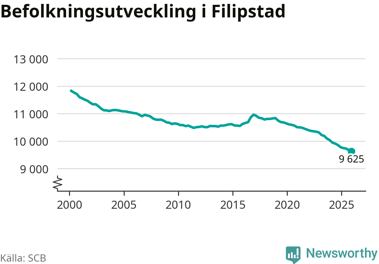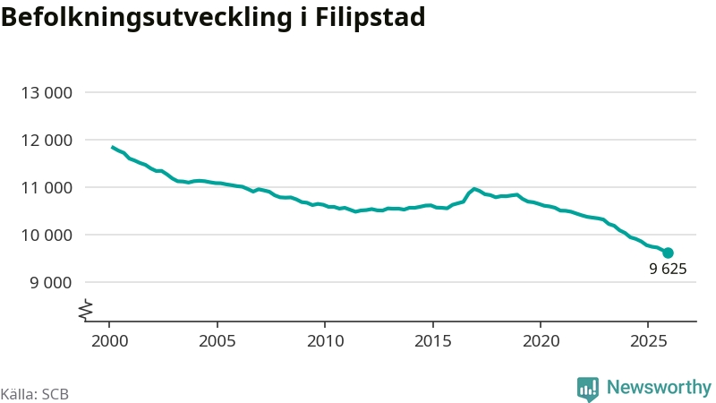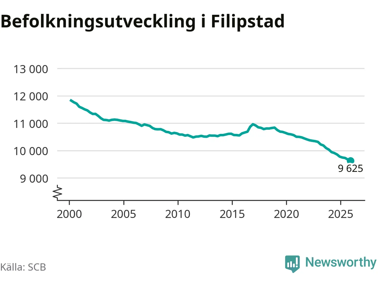 Befolkningen minskade i Filipstads kommun under det fjärde kvartalet 2025. Den 31 december bodde enligt SCB:s senaste siffror 9 625 personer i kommunen, vilket är 45 färre än i slutet av tredje kvartalet. Minskningen är procentuellt sett en av de största i Värmland.