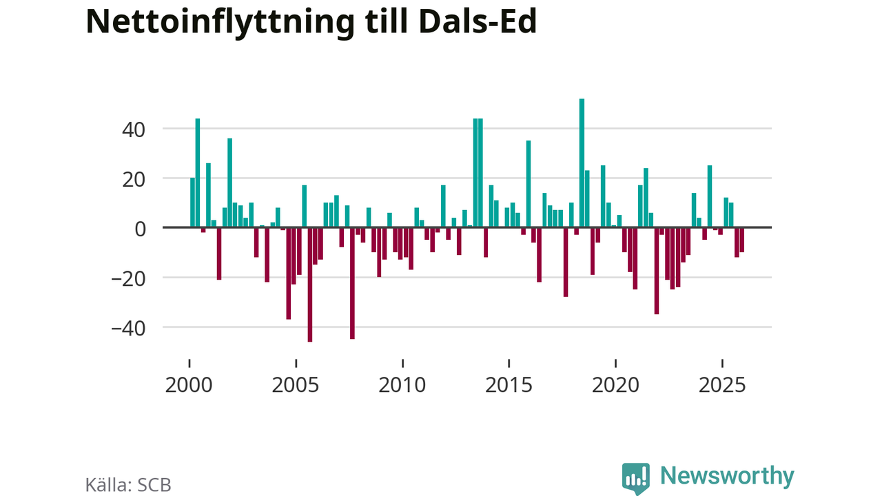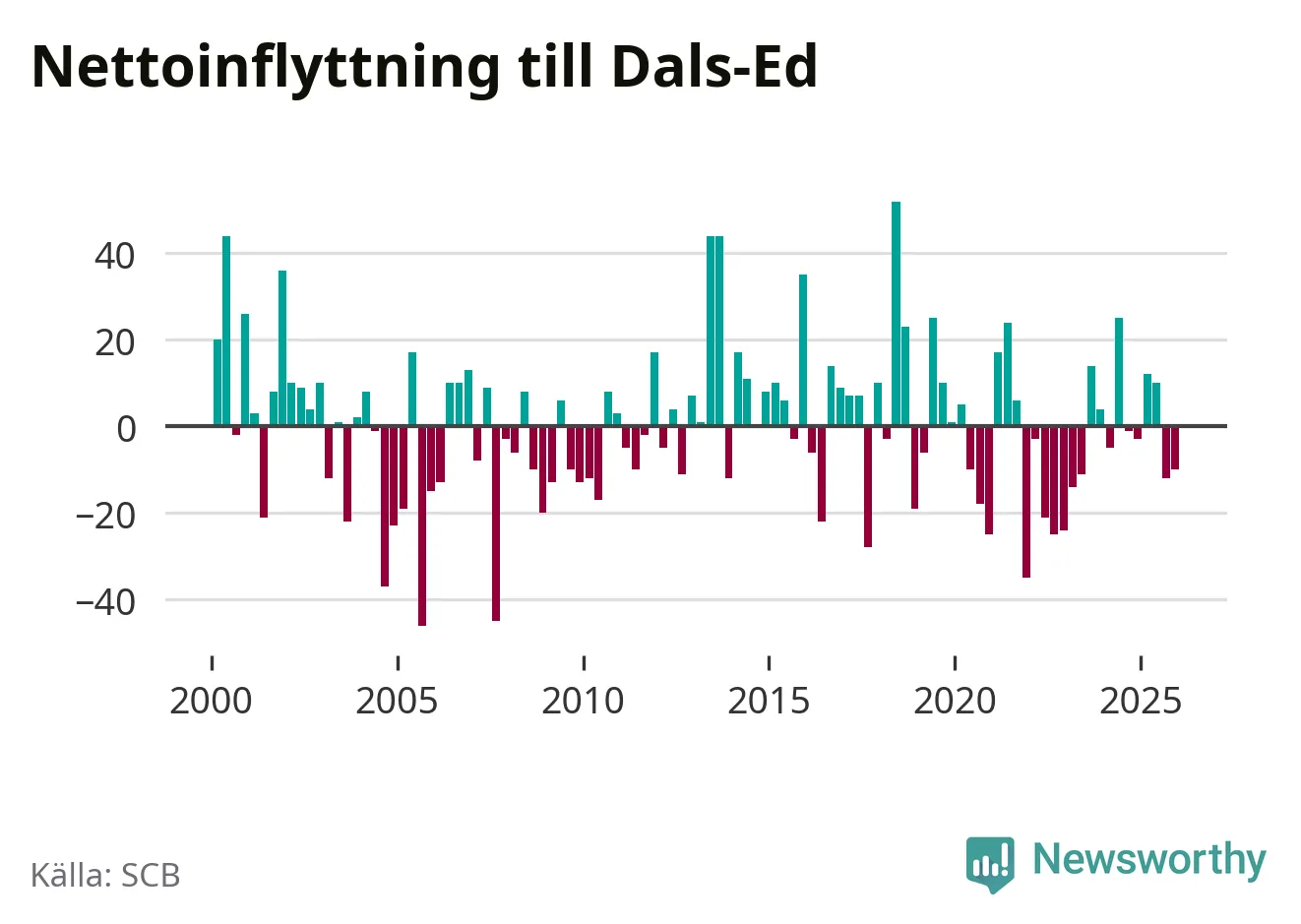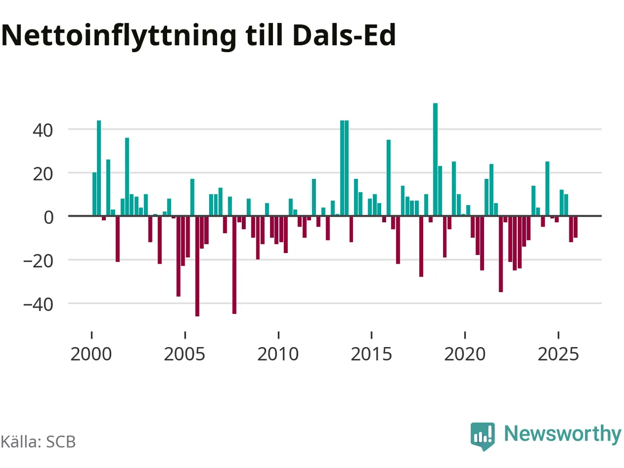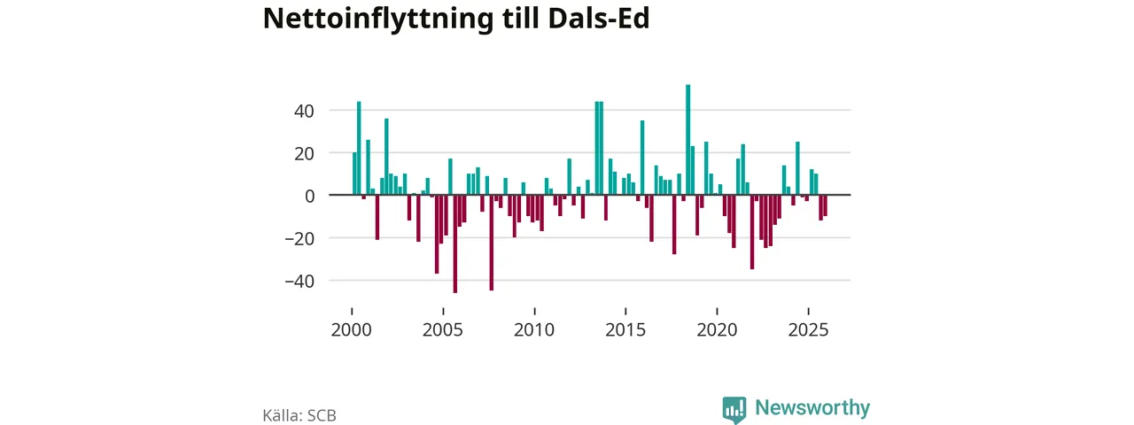 Antalet avlidna var större än antalet födda – och fler flyttade från än till Dals-Eds kommun. Befolkningen minskade under det fjärde kvartalet 2025. Det visar nya siffror från SCB.