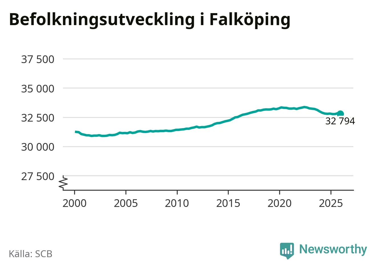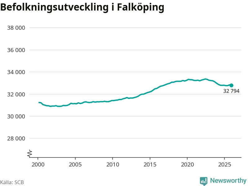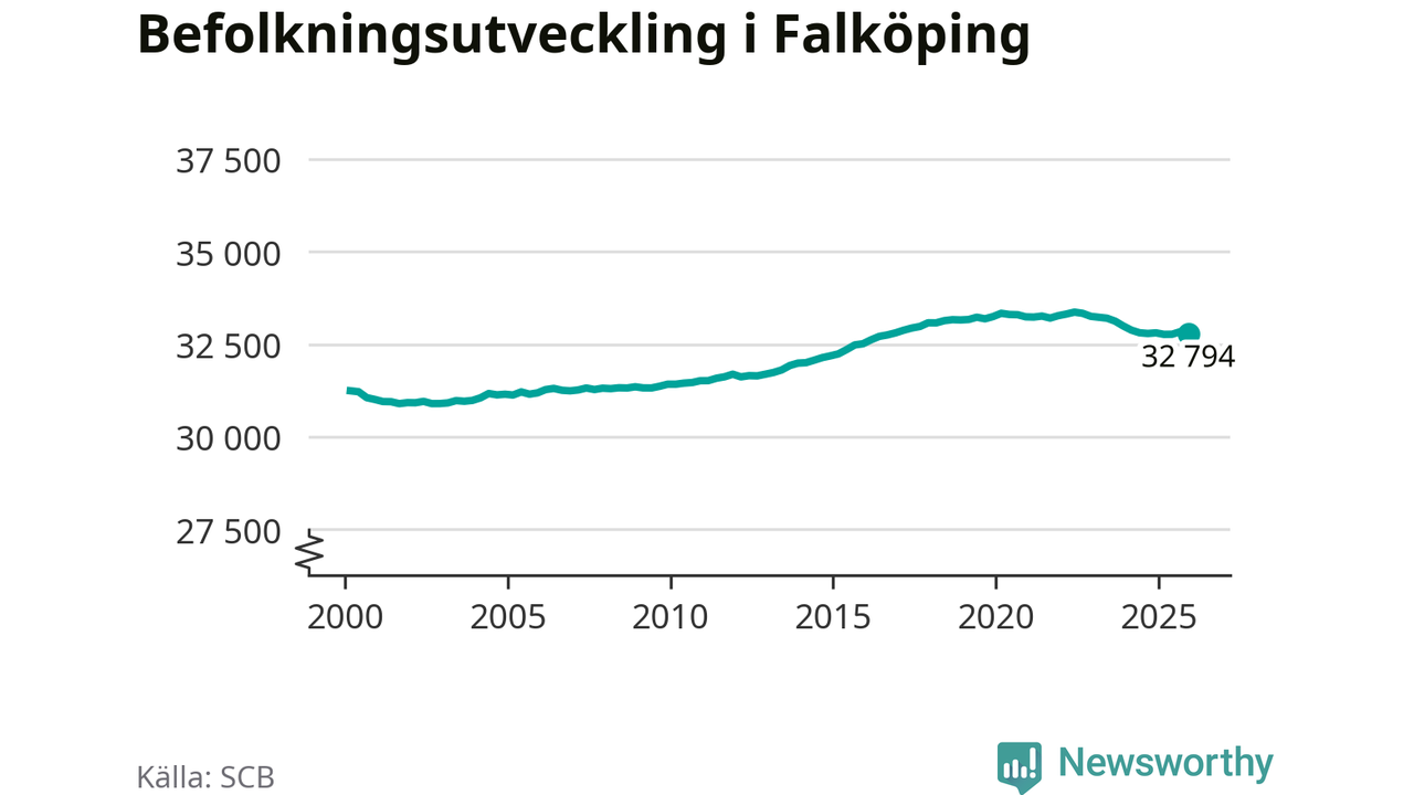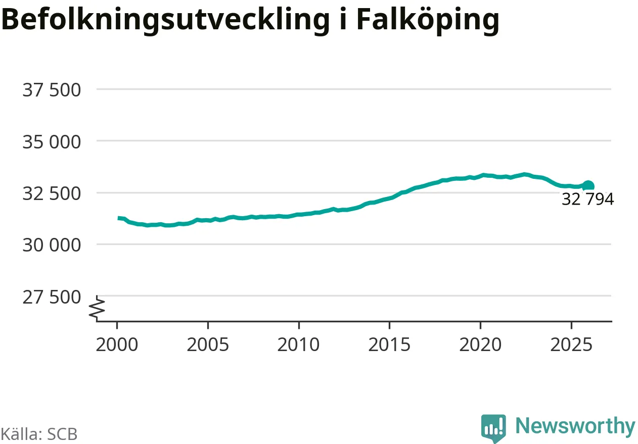Befolkningen minskade i Falköpings kommun under det fjärde kvartalet 2025. Den 31 december bodde enligt SCB:s senaste siffror 32 794 personer i kommunen, vilket är 44 färre än i slutet av tredje kvartalet.