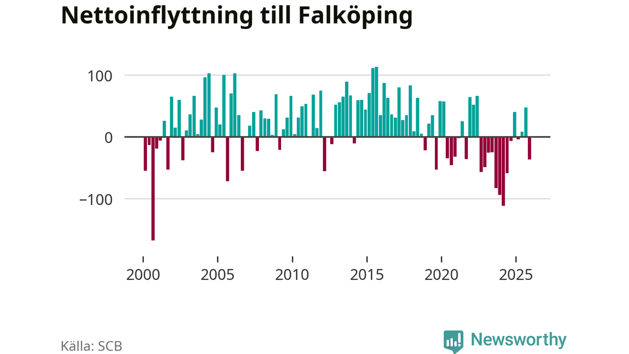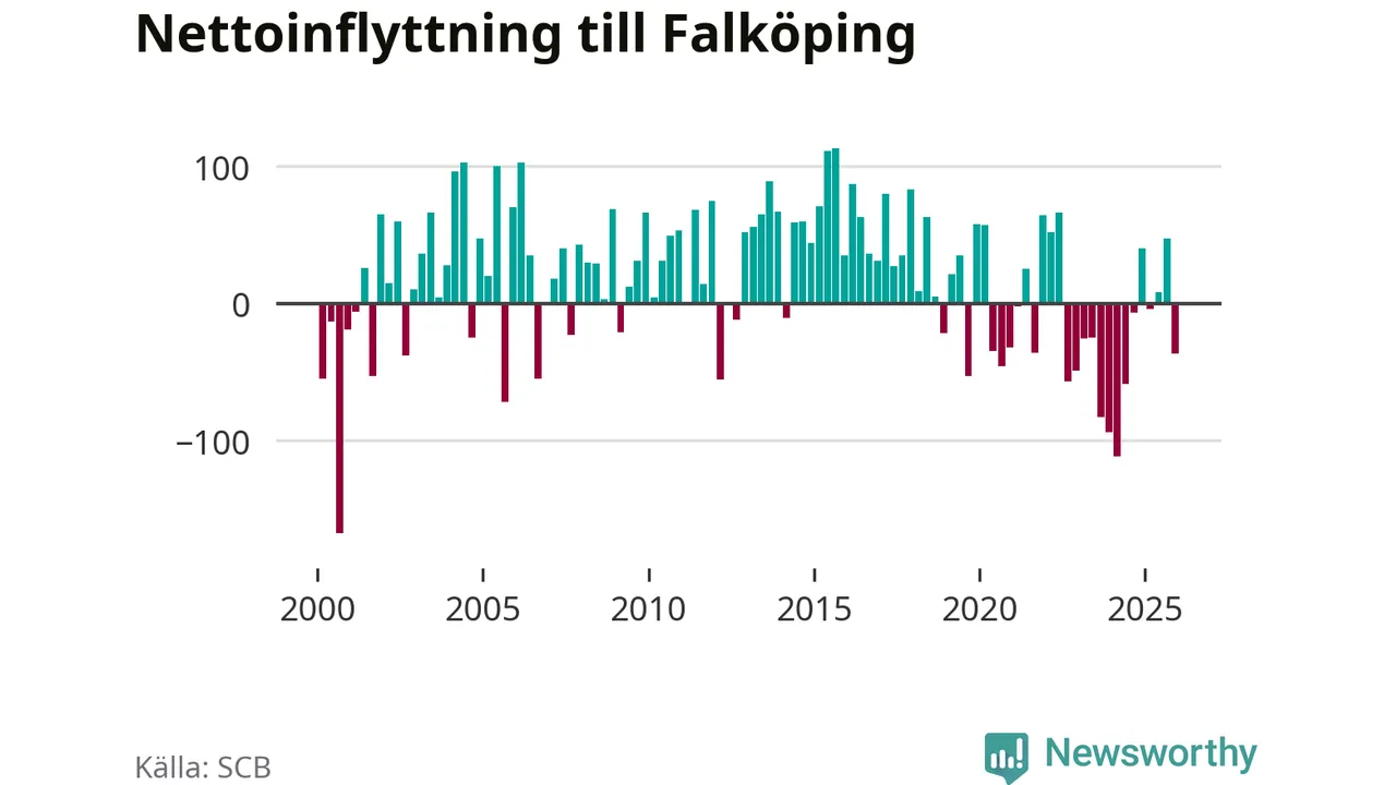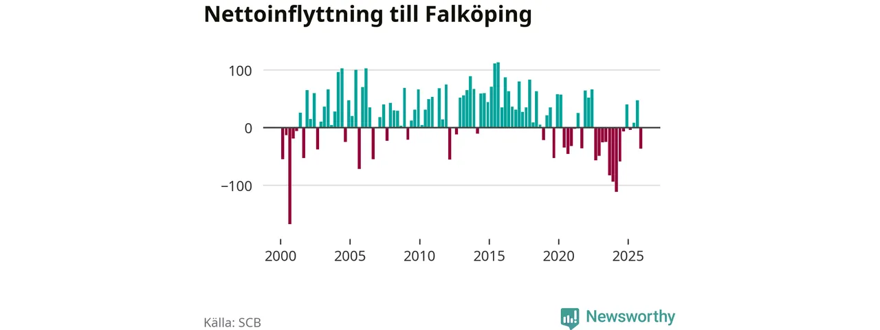Antalet avlidna var större än antalet födda – och fler flyttade från än till Falköpings kommun. Befolkningen minskade under det fjärde kvartalet 2025. Det visar nya siffror från SCB.