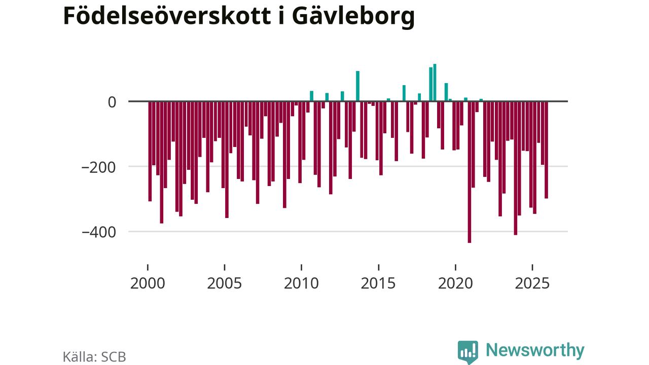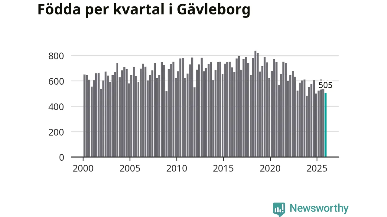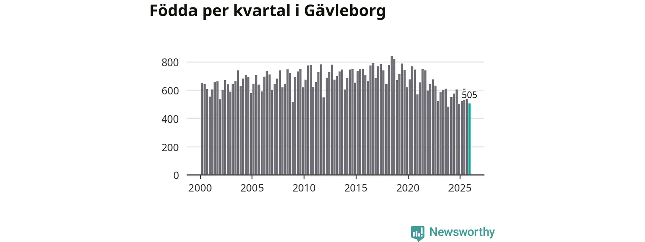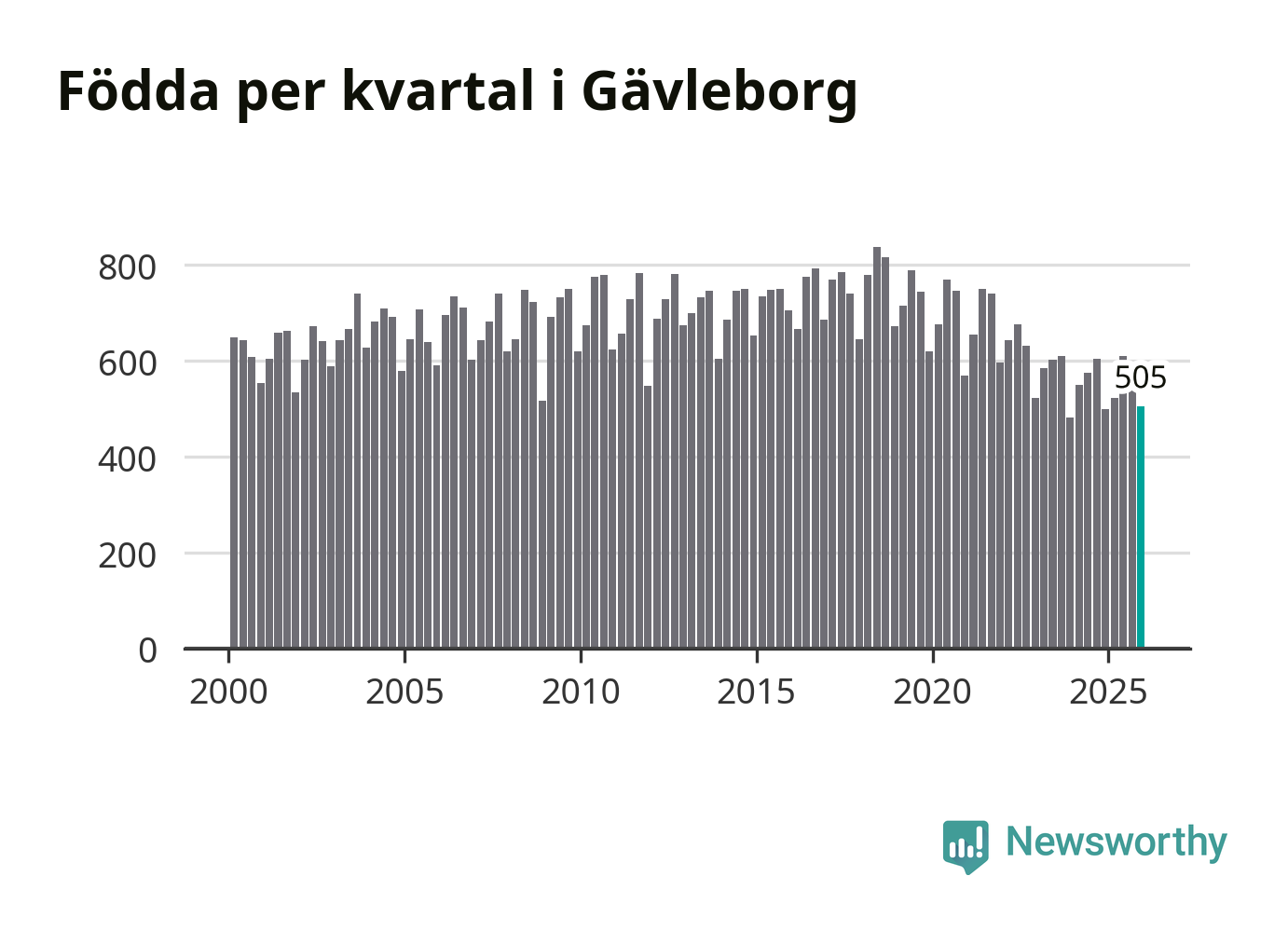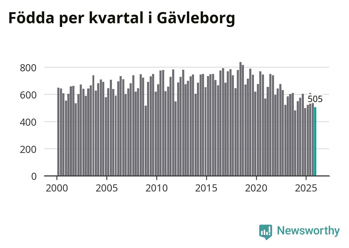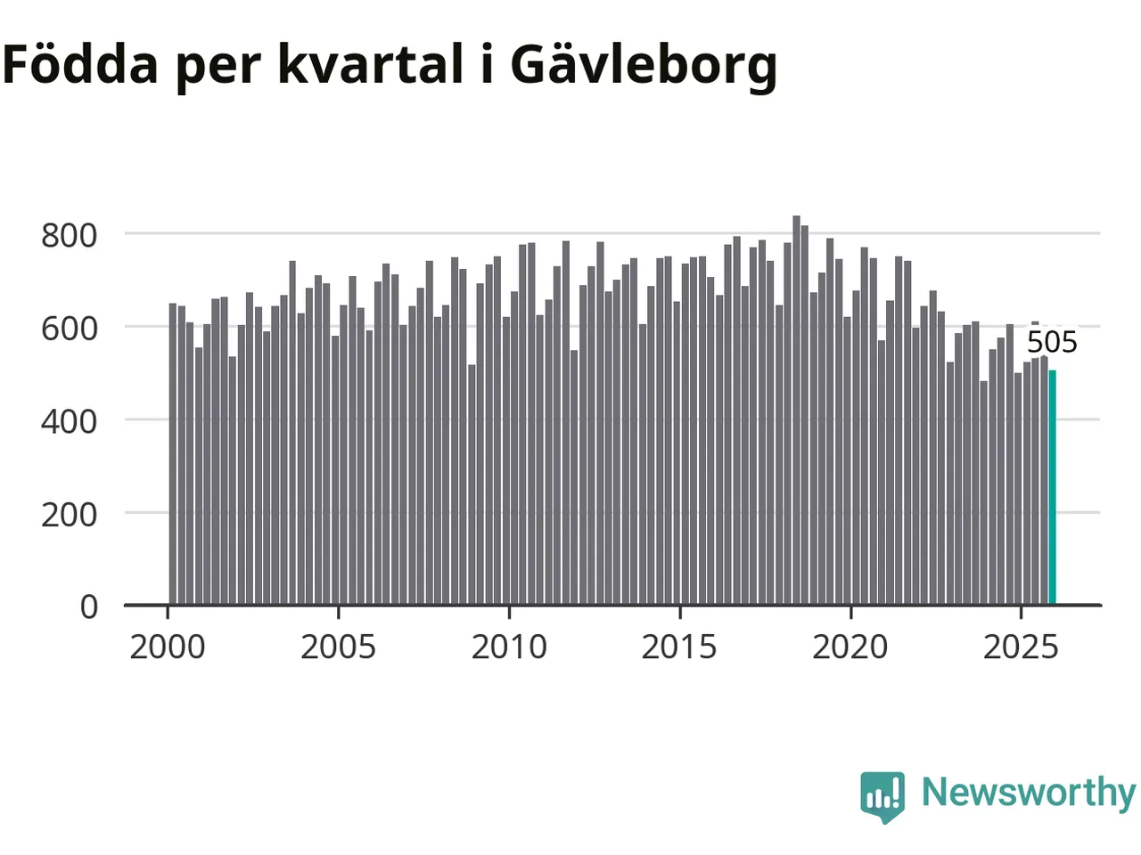 Enligt SCB:s siffror föddes 505 barn i Gävleborg under det senaste kvartalet. Samtidigt avled 805 personer. Gävleborg hade alltså ett negativt födelsenetto, vilket länet historiskt sett nästan alltid har haft.