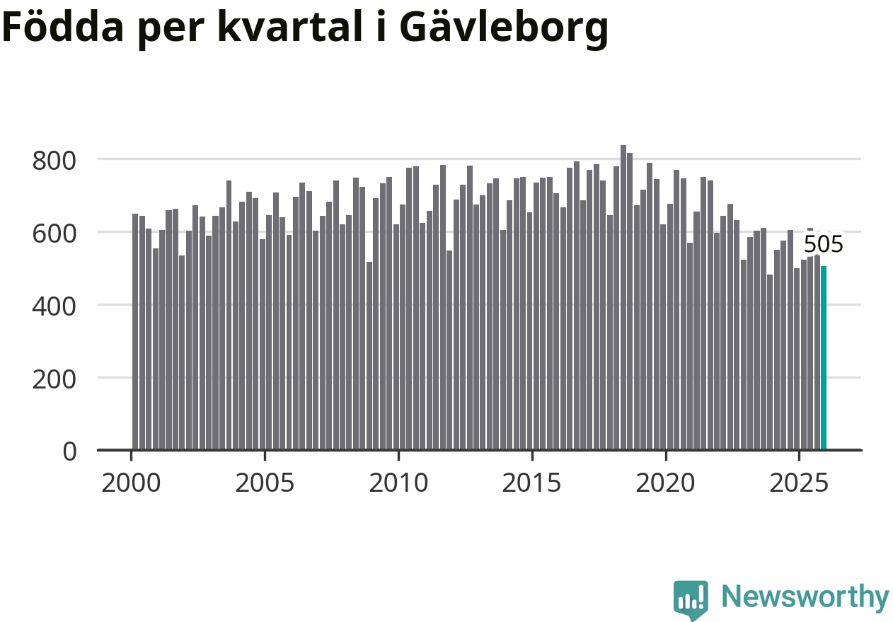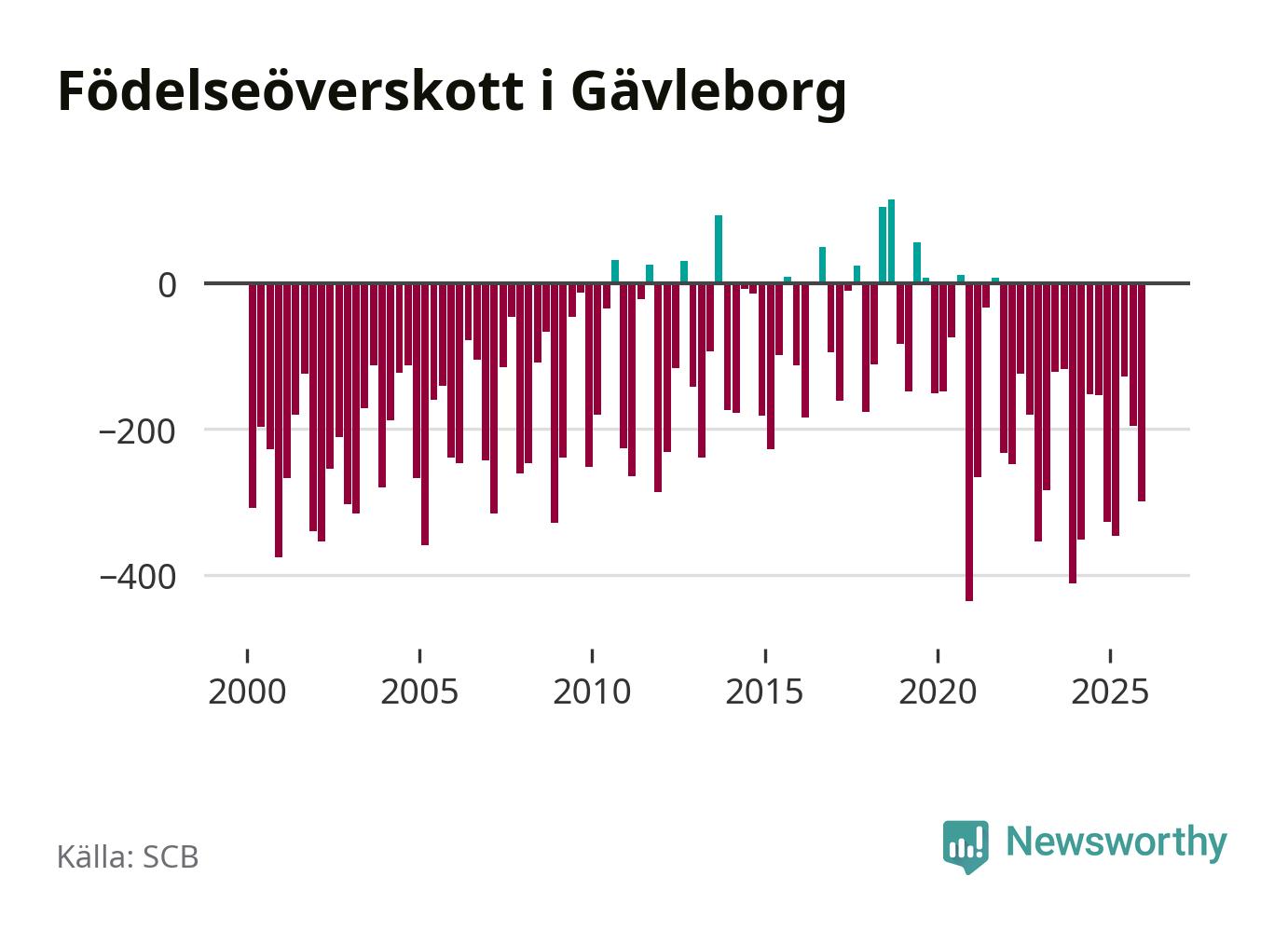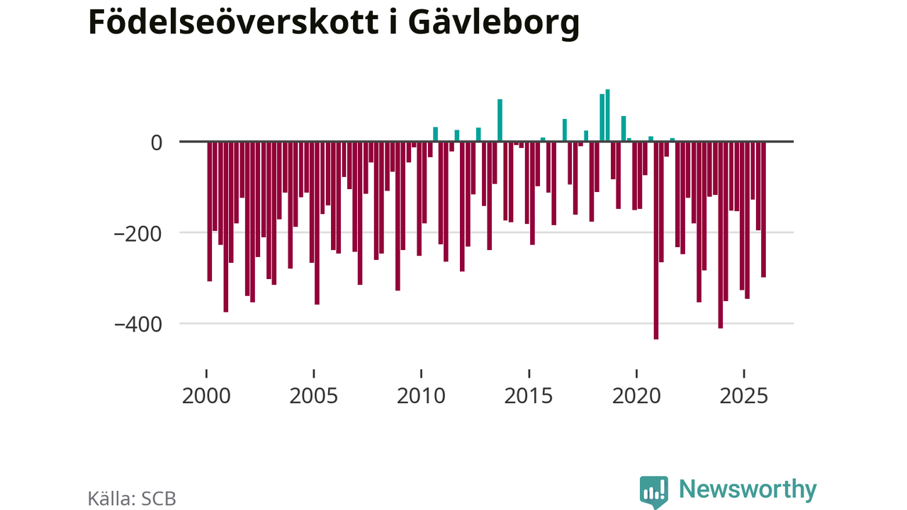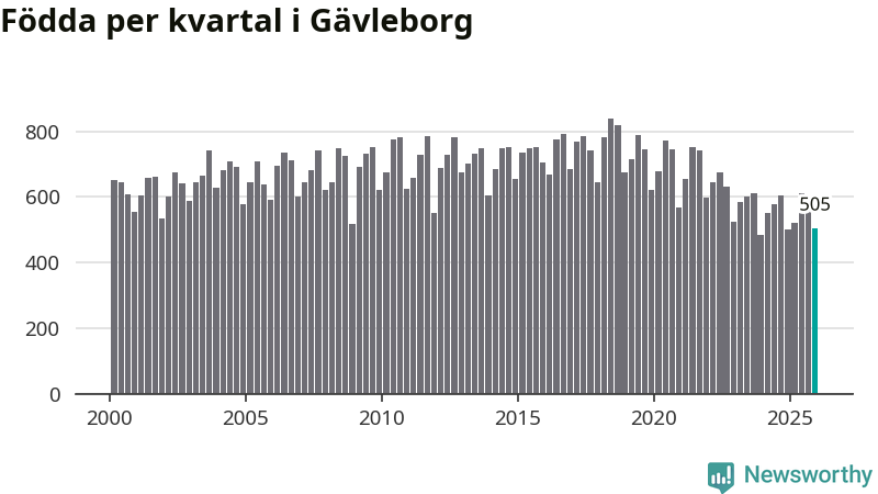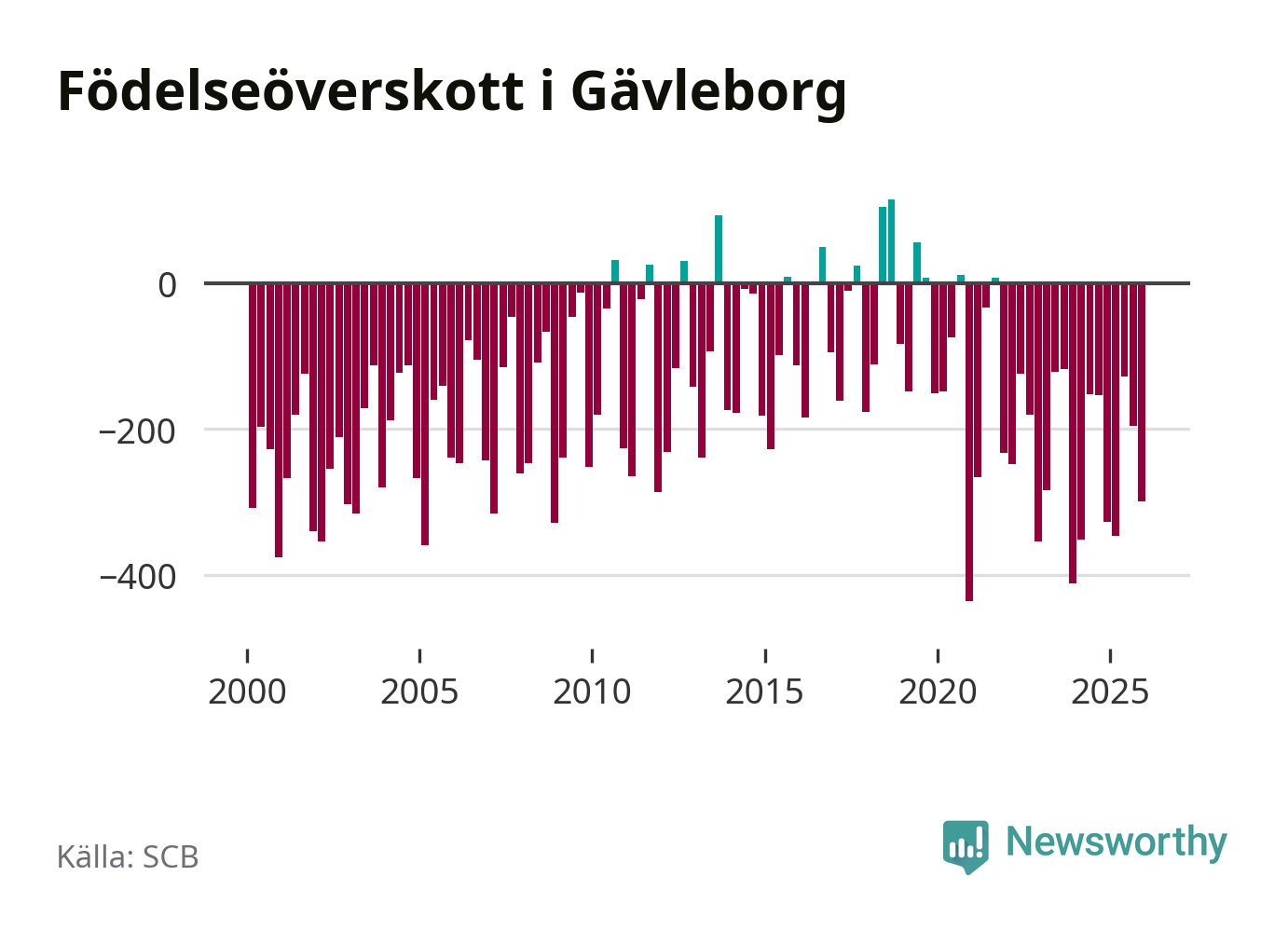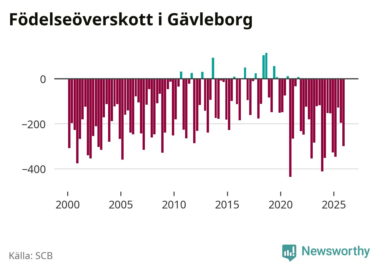 Enligt SCB:s siffror föddes 505 barn i Gävleborg under det senaste kvartalet. Samtidigt avled 805 personer. Gävleborg hade alltså ett negativt födelsenetto, vilket länet historiskt sett nästan alltid har haft.