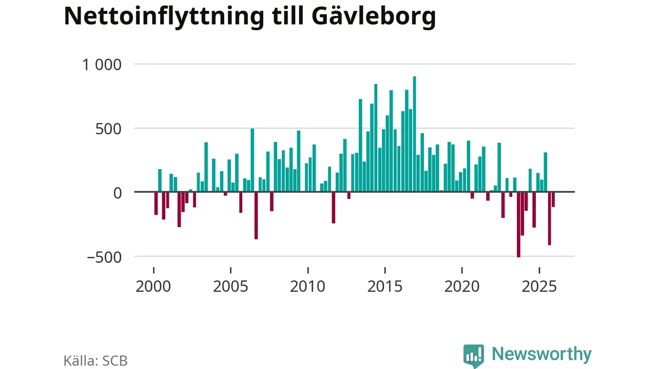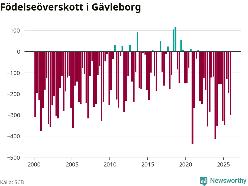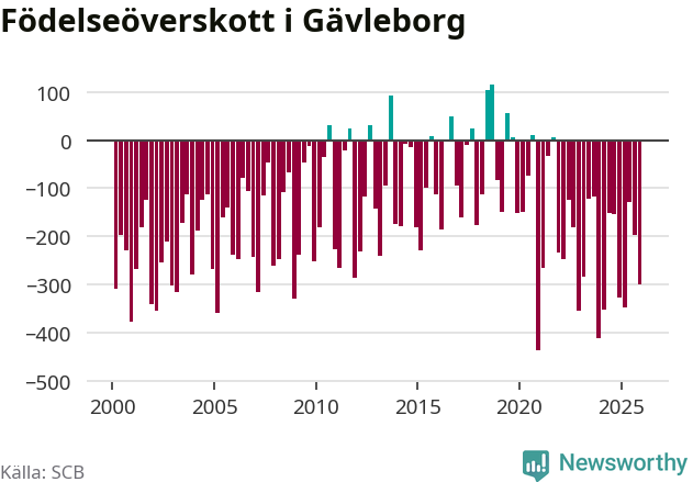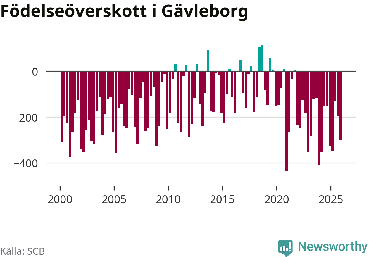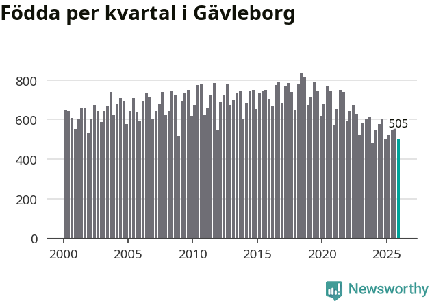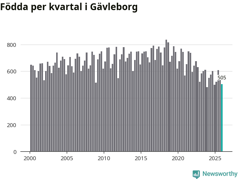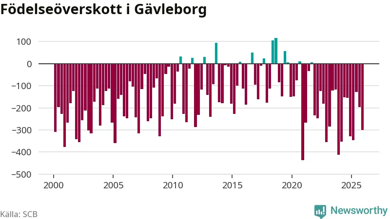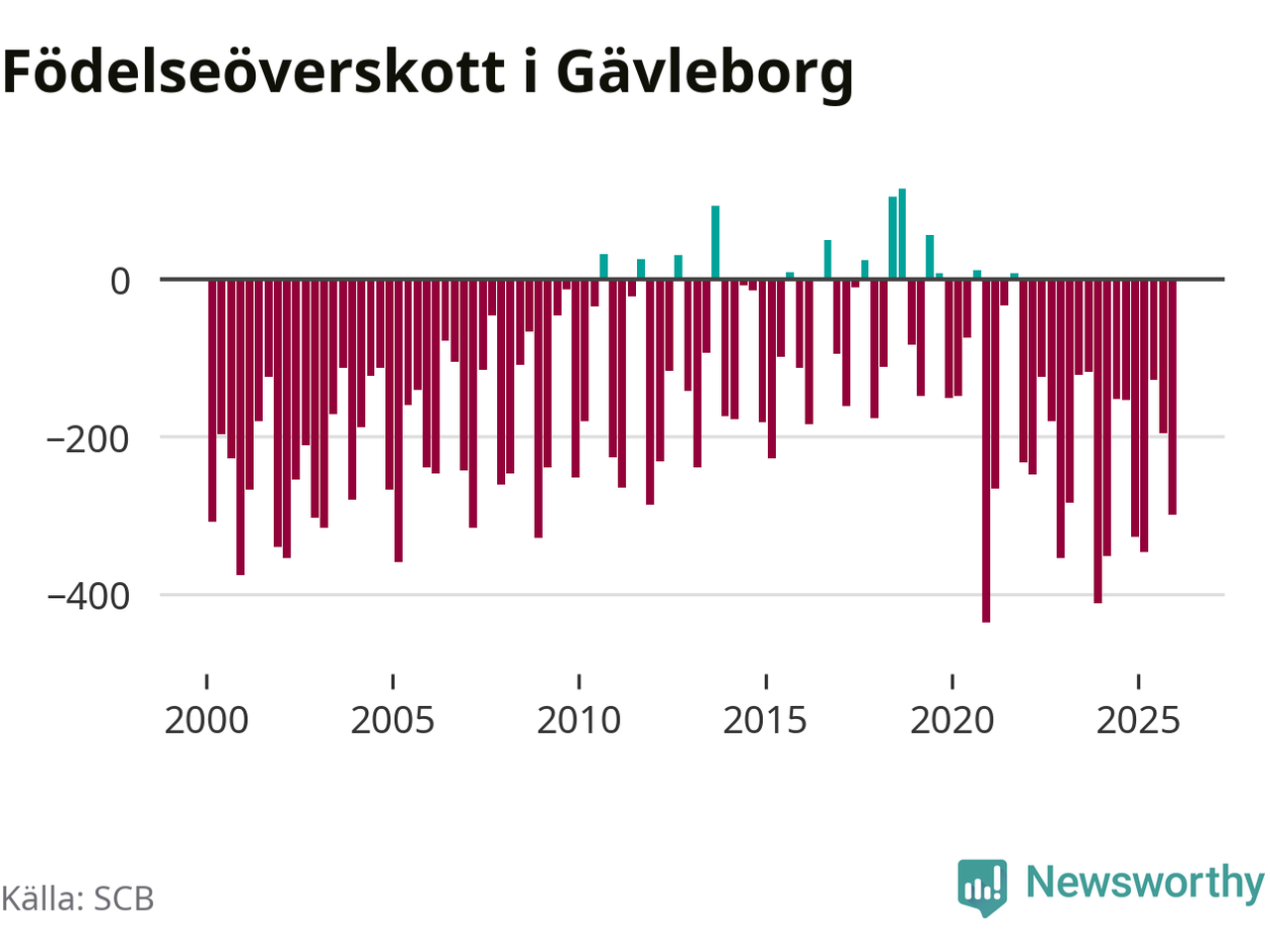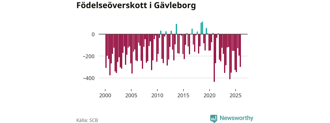 Enligt SCB:s siffror föddes 505 barn i Gävleborg under det senaste kvartalet. Samtidigt avled 805 personer. Gävleborg hade alltså ett negativt födelsenetto, vilket länet historiskt sett nästan alltid har haft.