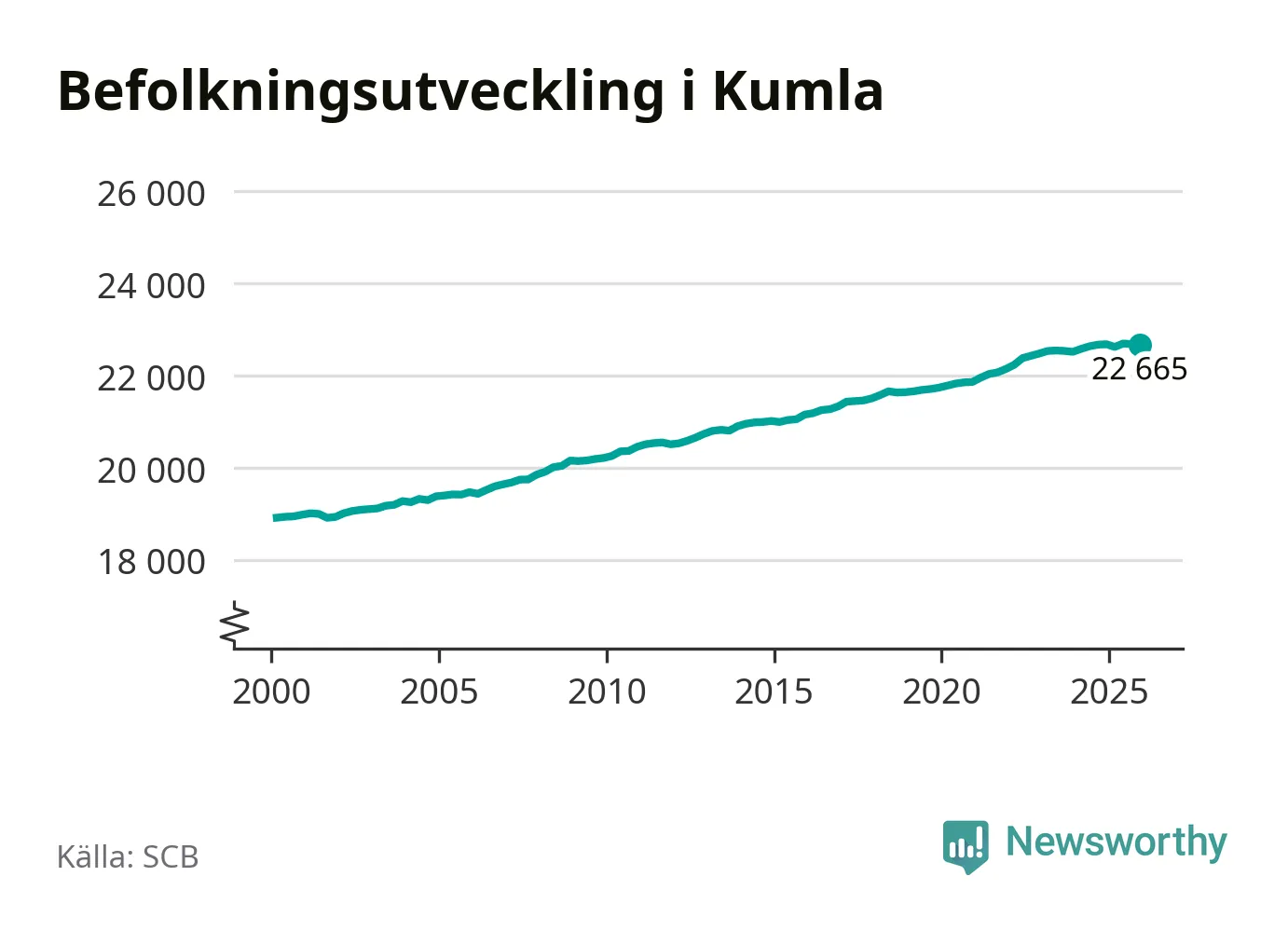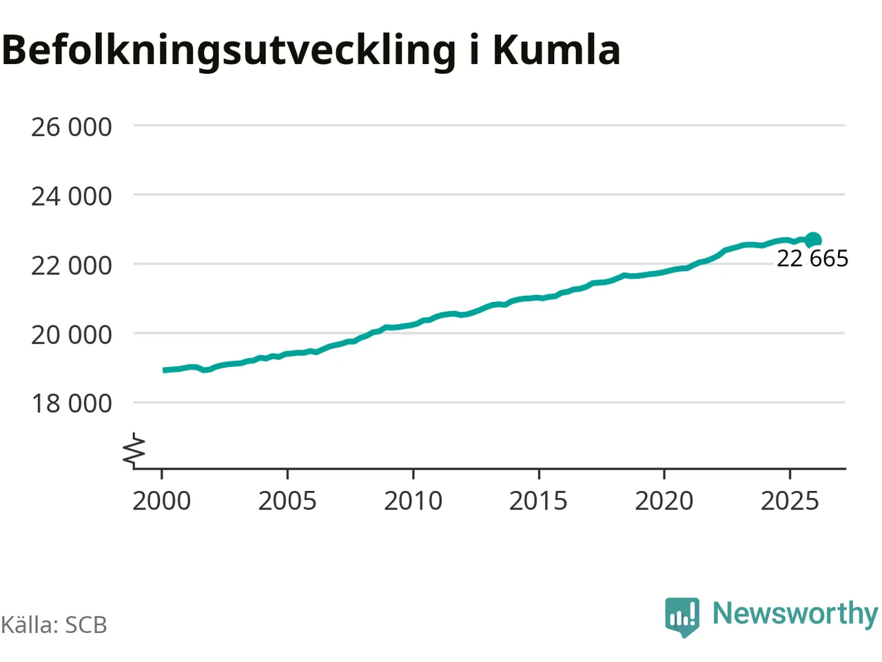 Den 31 december bodde enligt SCB:s senaste siffror 22 665 personer i kommunen, vilket är 19 färre än i slutet av tredje kvartalet.