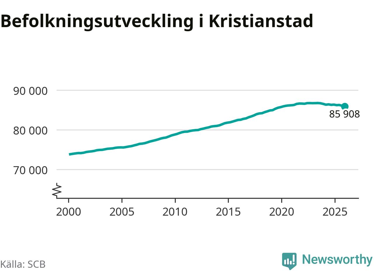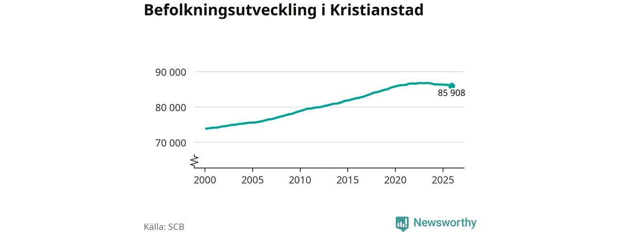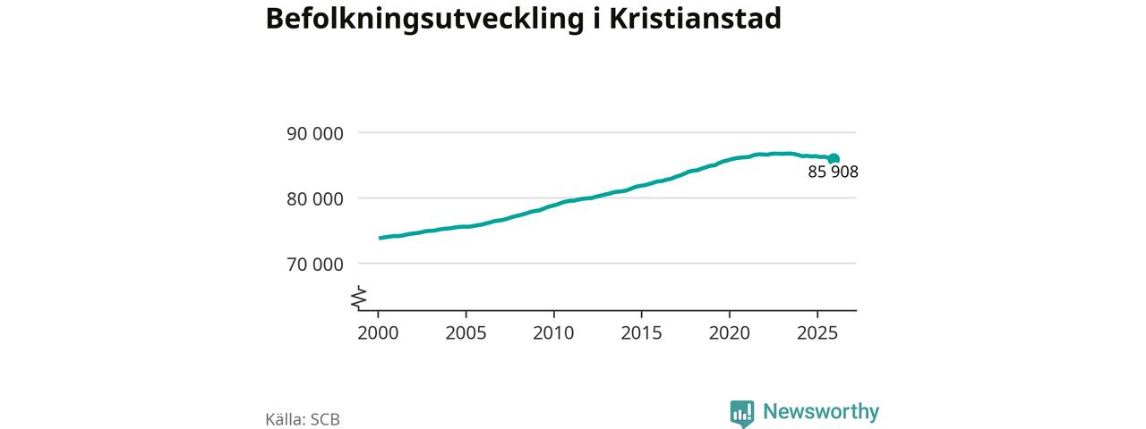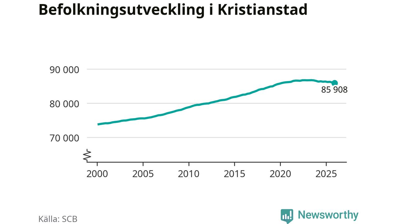 Befolkningen minskade i Kristianstads kommun under det fjärde kvartalet 2025. Den 31 december bodde enligt SCB:s senaste siffror 85 908 personer i kommunen, vilket är 203 färre än i slutet av tredje kvartalet.