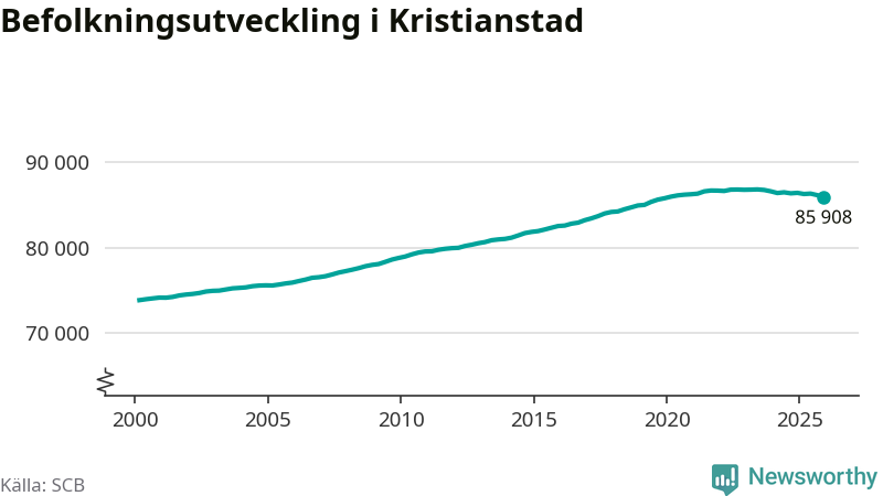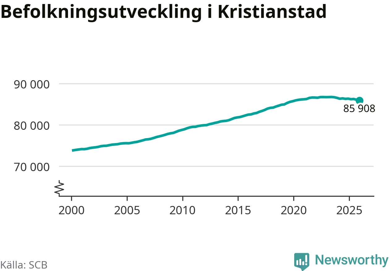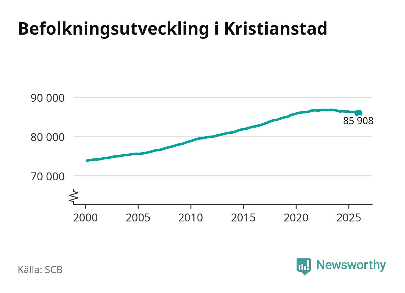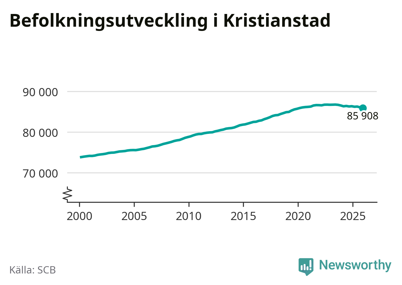 Befolkningen minskade i Kristianstads kommun under det fjärde kvartalet 2025. Den 31 december bodde enligt SCB:s senaste siffror 85 908 personer i kommunen, vilket är 203 färre än i slutet av tredje kvartalet.