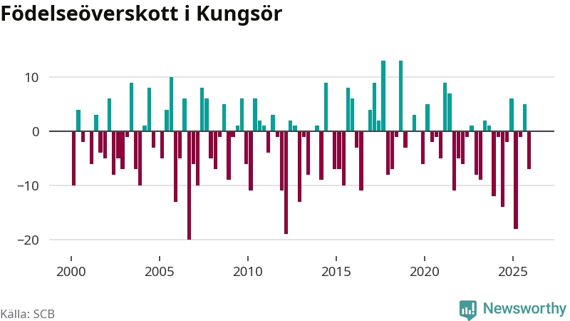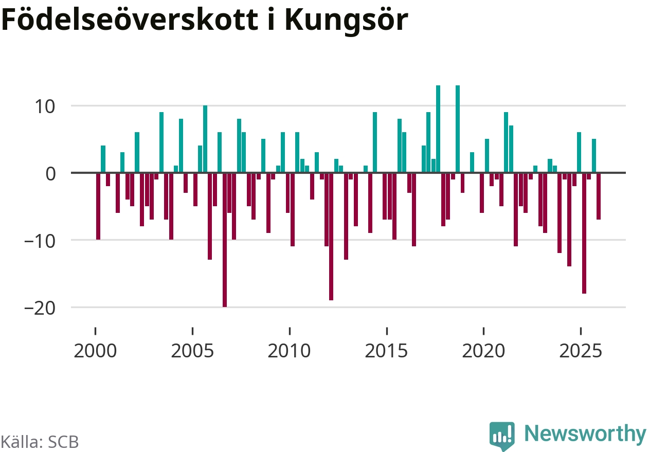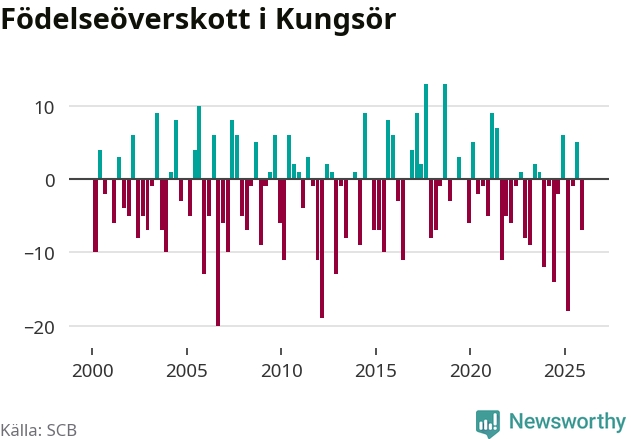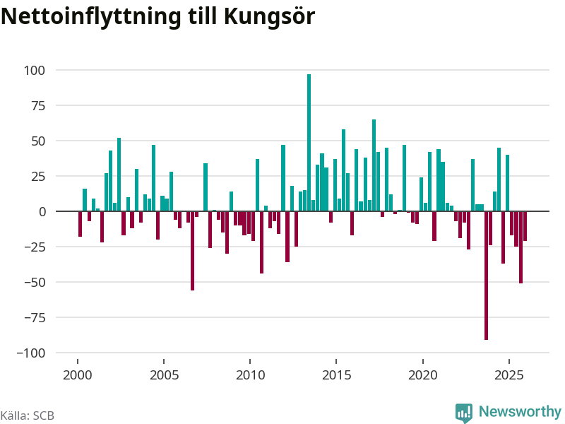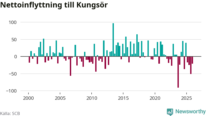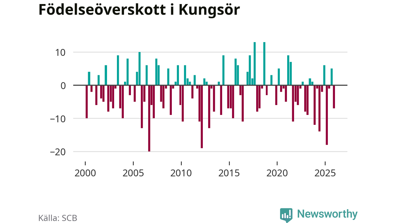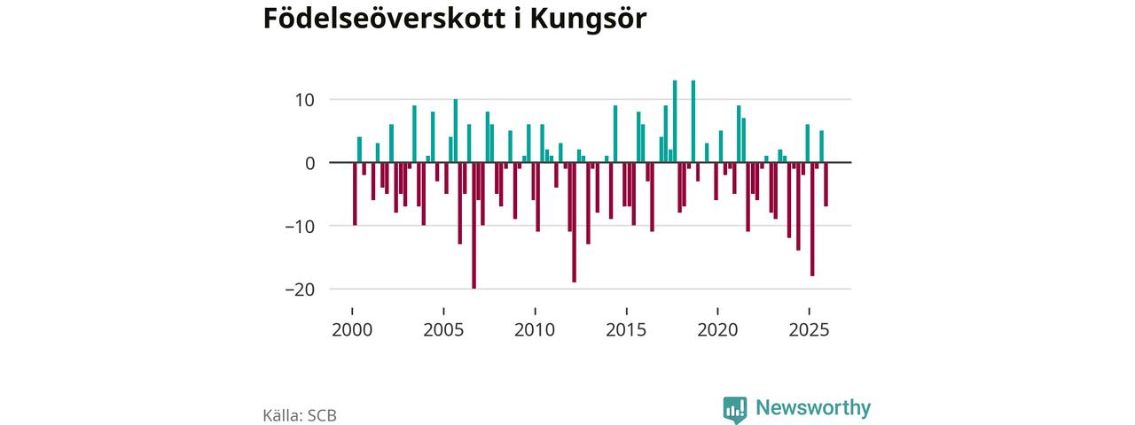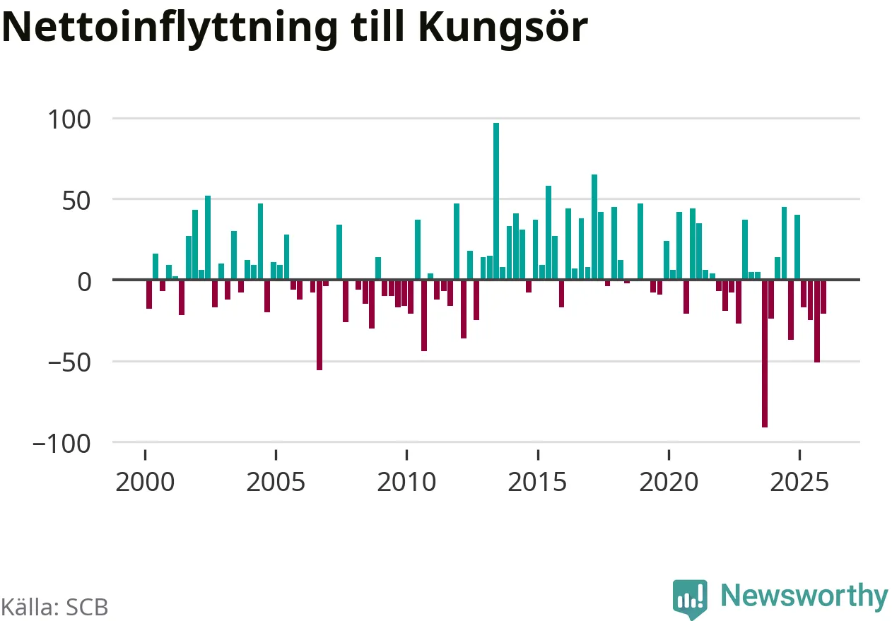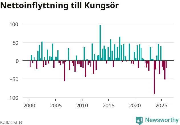 Enligt SCB:s siffror föddes 22 barn i Kungsör under det senaste kvartalet. Samtidigt avled relativt många – 29 personer. Kungsör hade alltså ett negativt födelsenetto. Historiskt sett har kommunen haft ungefär lika många kvartal med positivt flyttnetto som negativt.