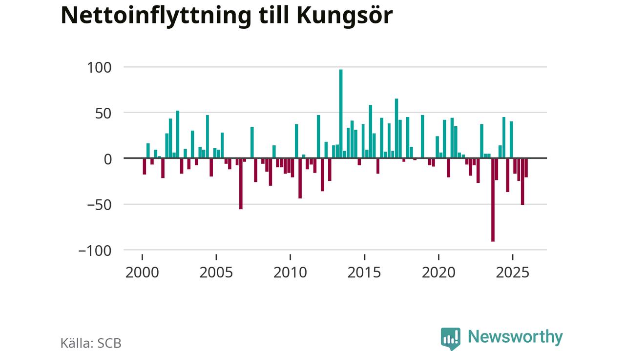 Antalet avlidna var större än antalet födda – och fler flyttade från än till Kungsörs kommun. Befolkningen minskade under det fjärde kvartalet 2025. Det visar nya siffror från SCB.