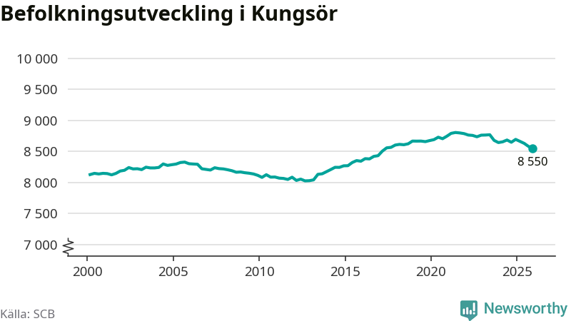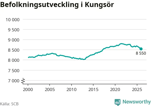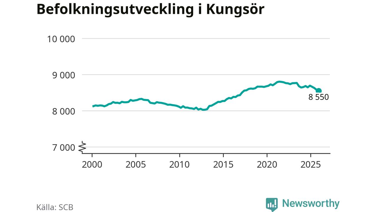 Befolkningen minskade i Kungsörs kommun under det fjärde kvartalet 2025. Den 31 december bodde enligt SCB:s senaste siffror 8 550 personer i kommunen, vilket är 31 färre än i slutet av tredje kvartalet. Minskningen är procentuellt sett en av de största i Västmanland.