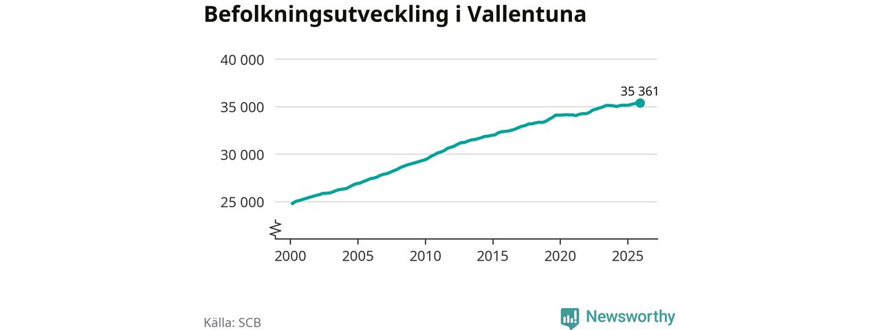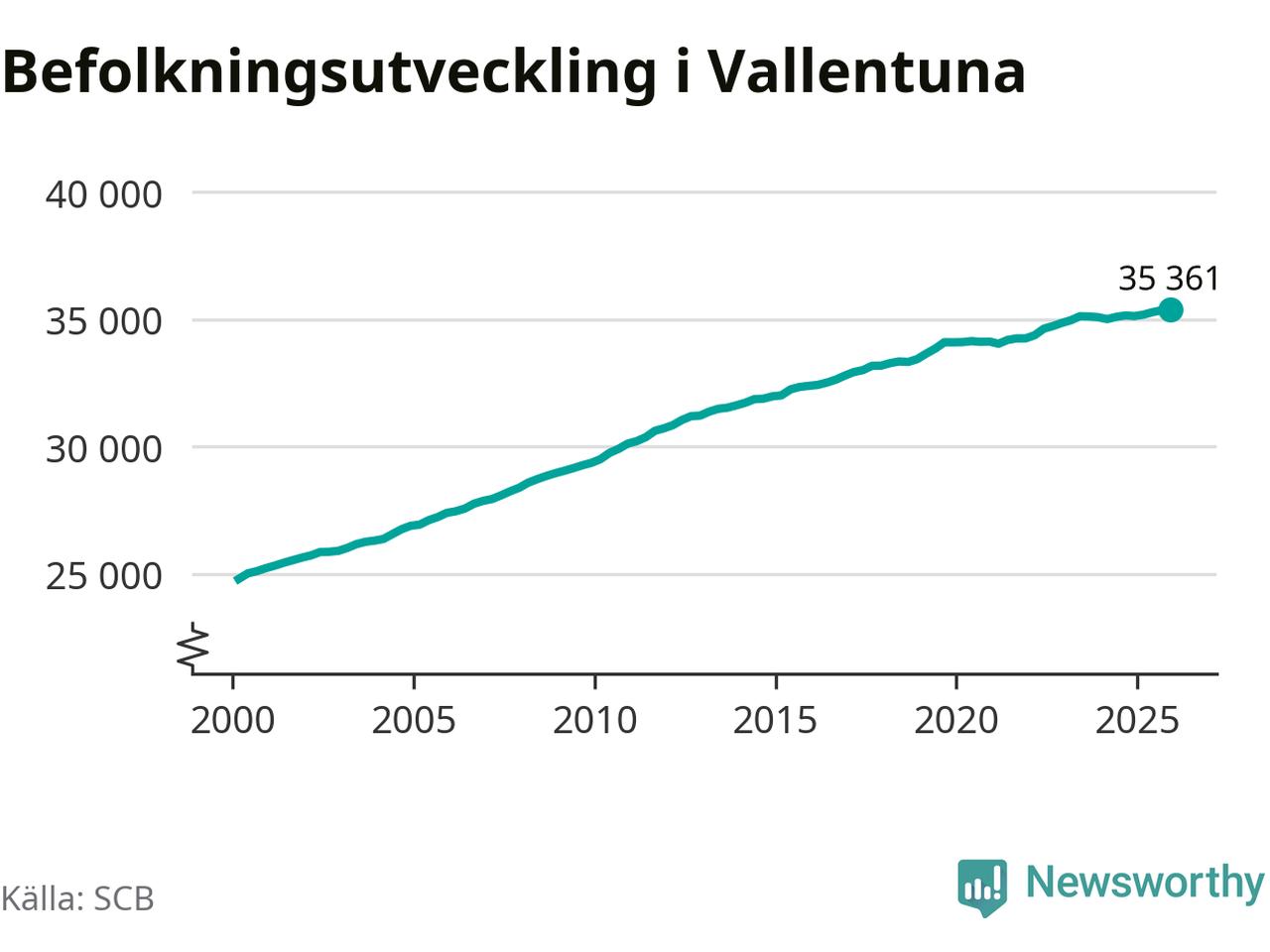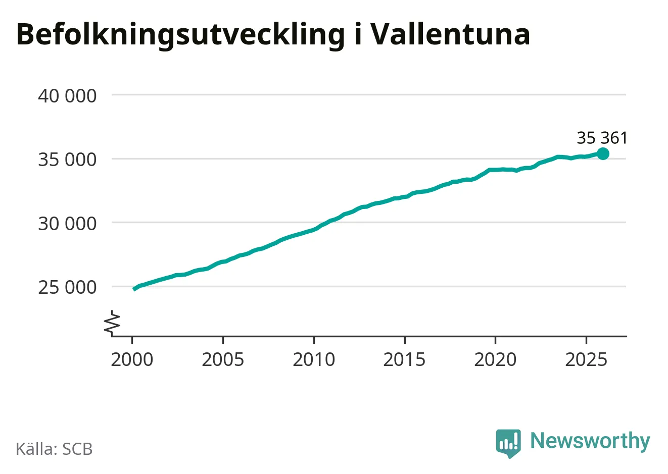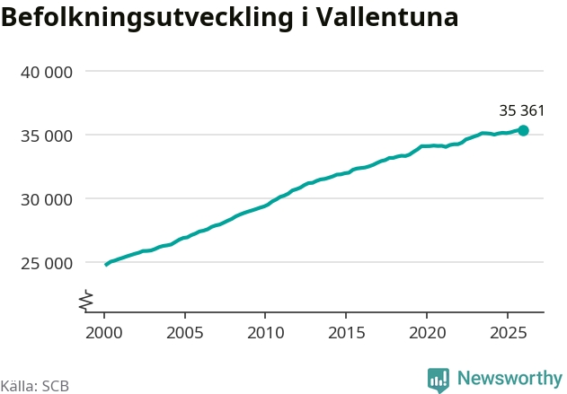 Befolkningen ökade i Vallentuna kommun under det fjärde kvartalet 2025. Den 31 december bodde enligt SCB:s senaste siffror 35 361 personer i kommunen, vilket är 14 fler än i slutet av tredje kvartalet.