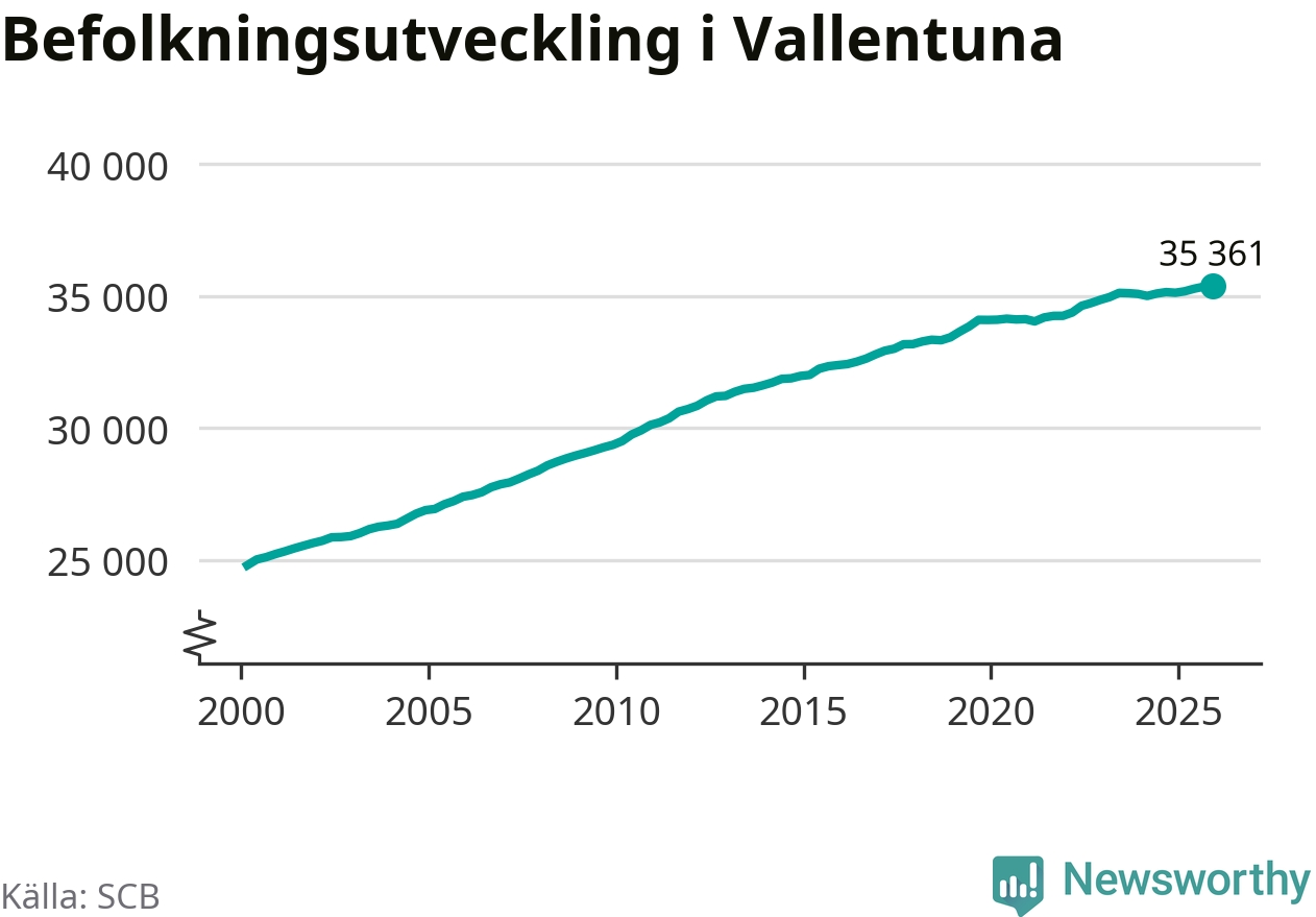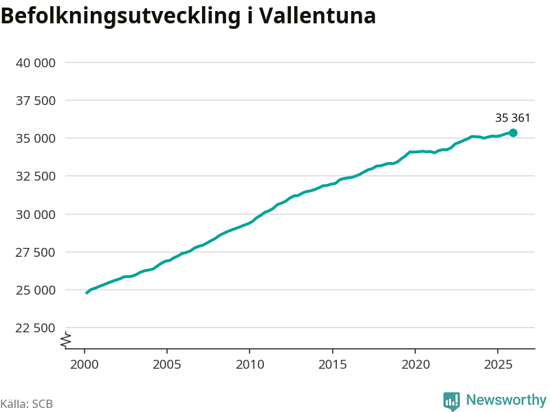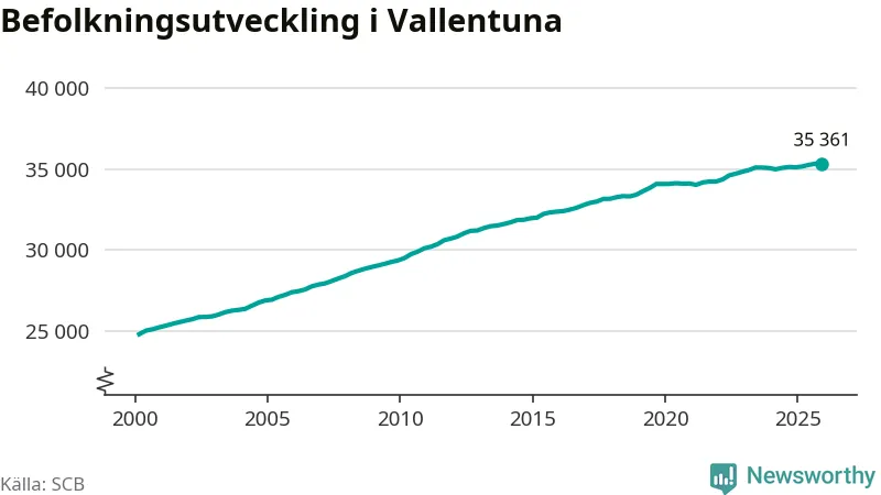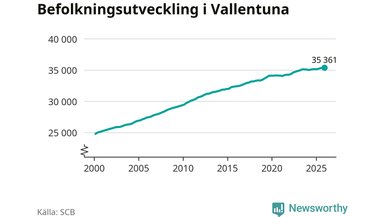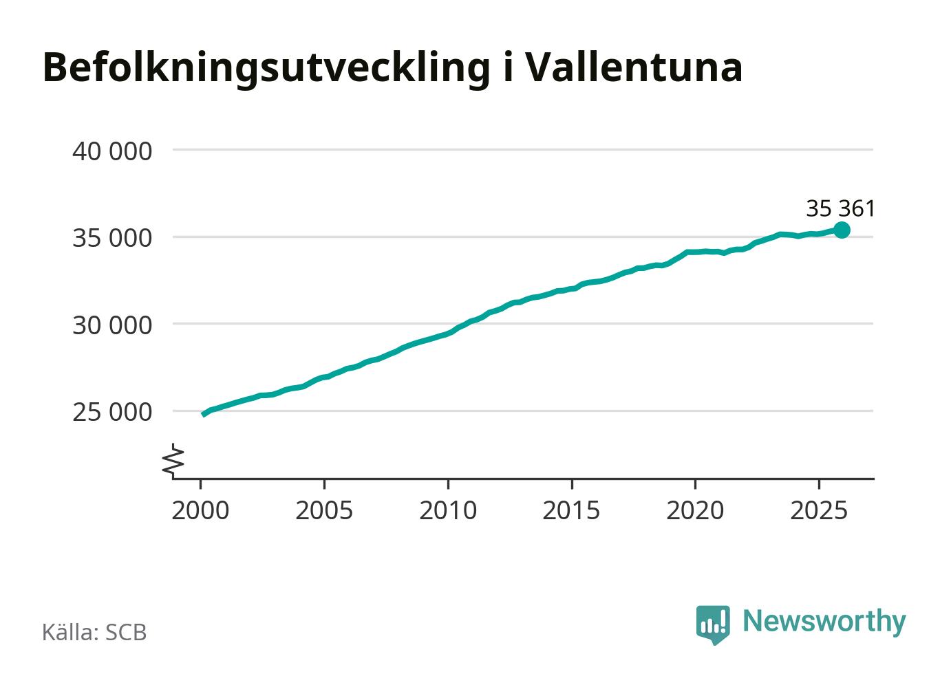 Befolkningen ökade i Vallentuna kommun under det fjärde kvartalet 2025. Den 31 december bodde enligt SCB:s senaste siffror 35 361 personer i kommunen, vilket är 14 fler än i slutet av tredje kvartalet.