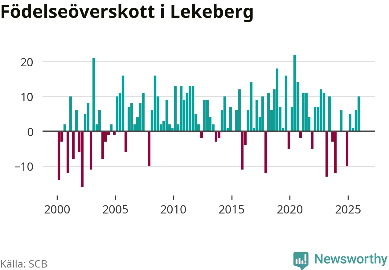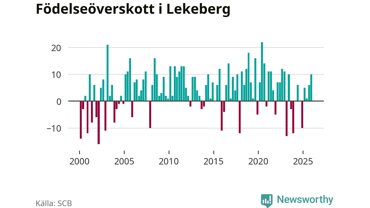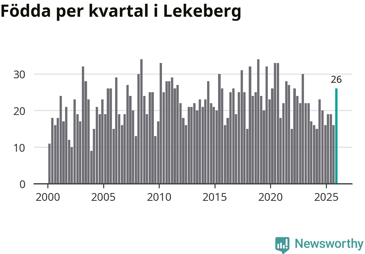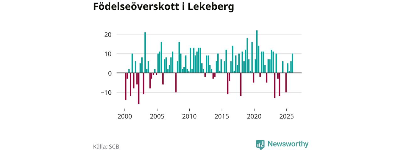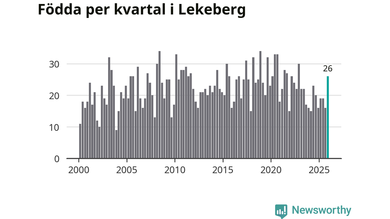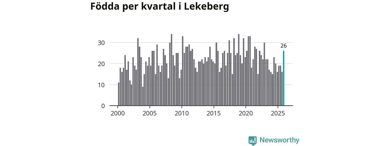 Enligt SCB:s siffror föddes 26 barn i Lekeberg under det senaste kvartalet. Samtidigt avled 16 personer. Lekeberg hade alltså ett positivt födelsenetto, vilket kommunen historiskt sett oftast har haft.
