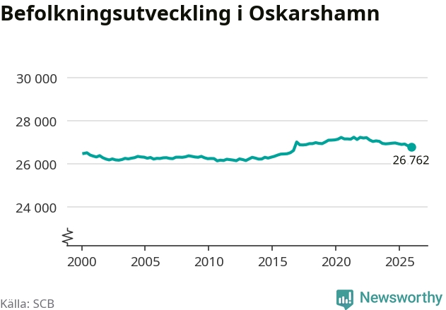 Befolkningen minskade i Oskarshamns kommun under det fjärde kvartalet 2025. Den 31 december bodde enligt SCB:s senaste siffror 26 762 personer i kommunen, vilket är 67 färre än i slutet av tredje kvartalet.