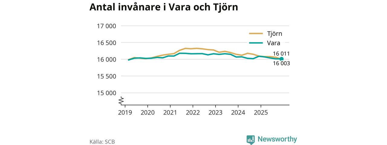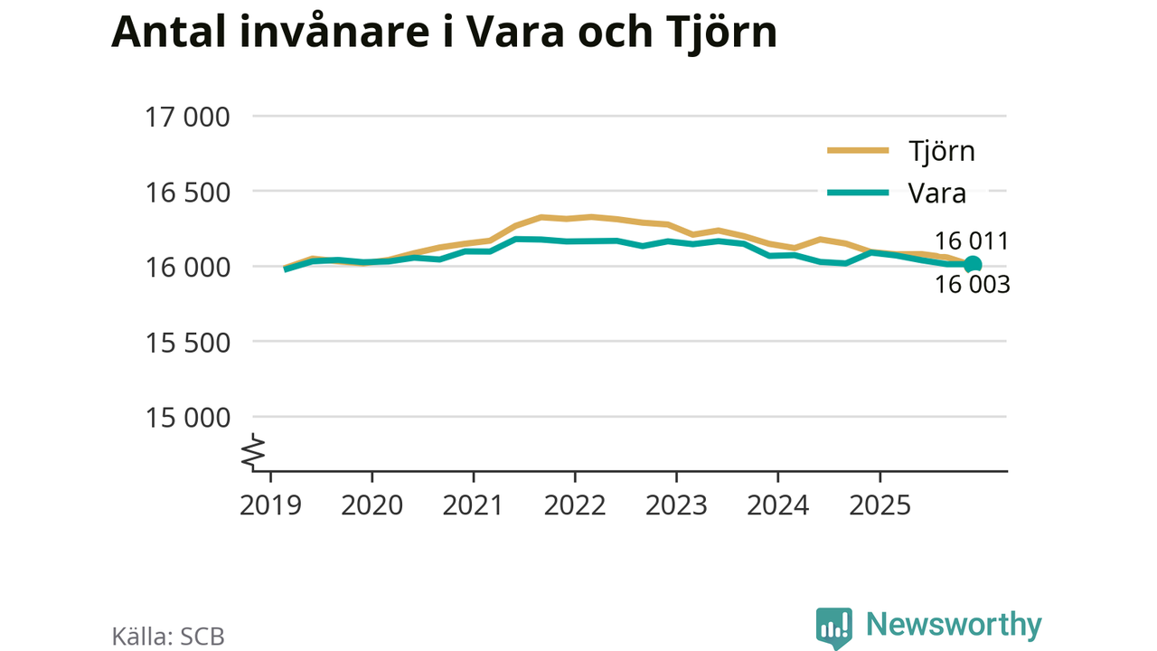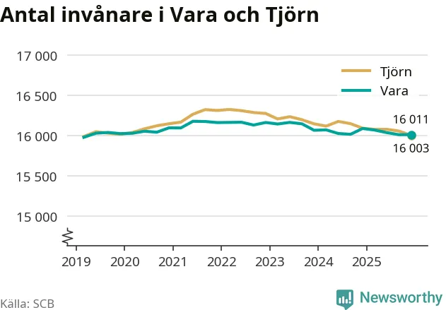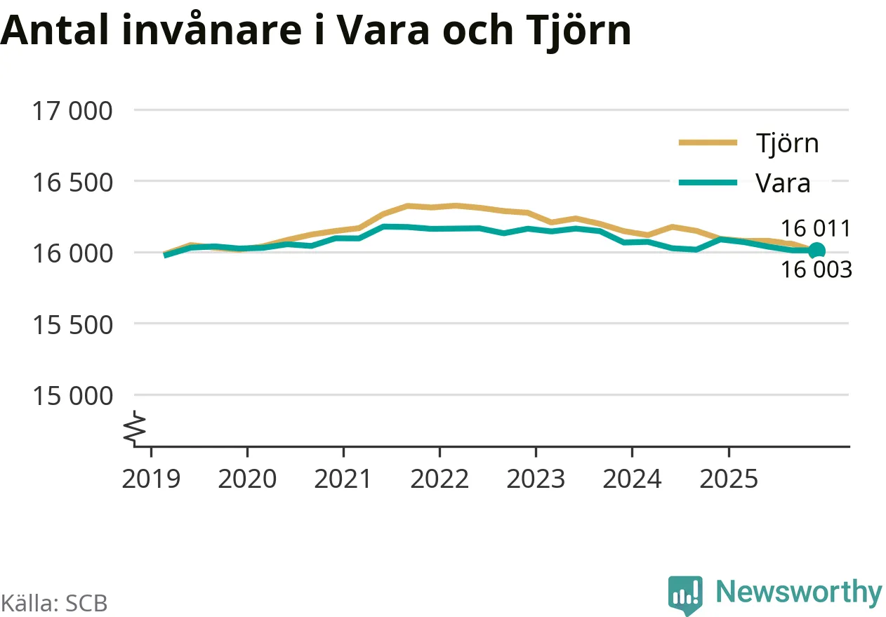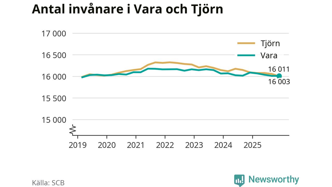 Befolkningen i Vara var relativt oförändrat under fjärde kvartalet 2025. Och nu bor här lika många som på Tjörn, visar SCB:s senaste befolkningsstatistik.