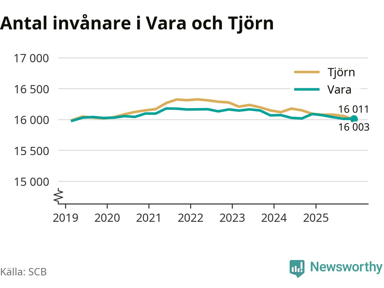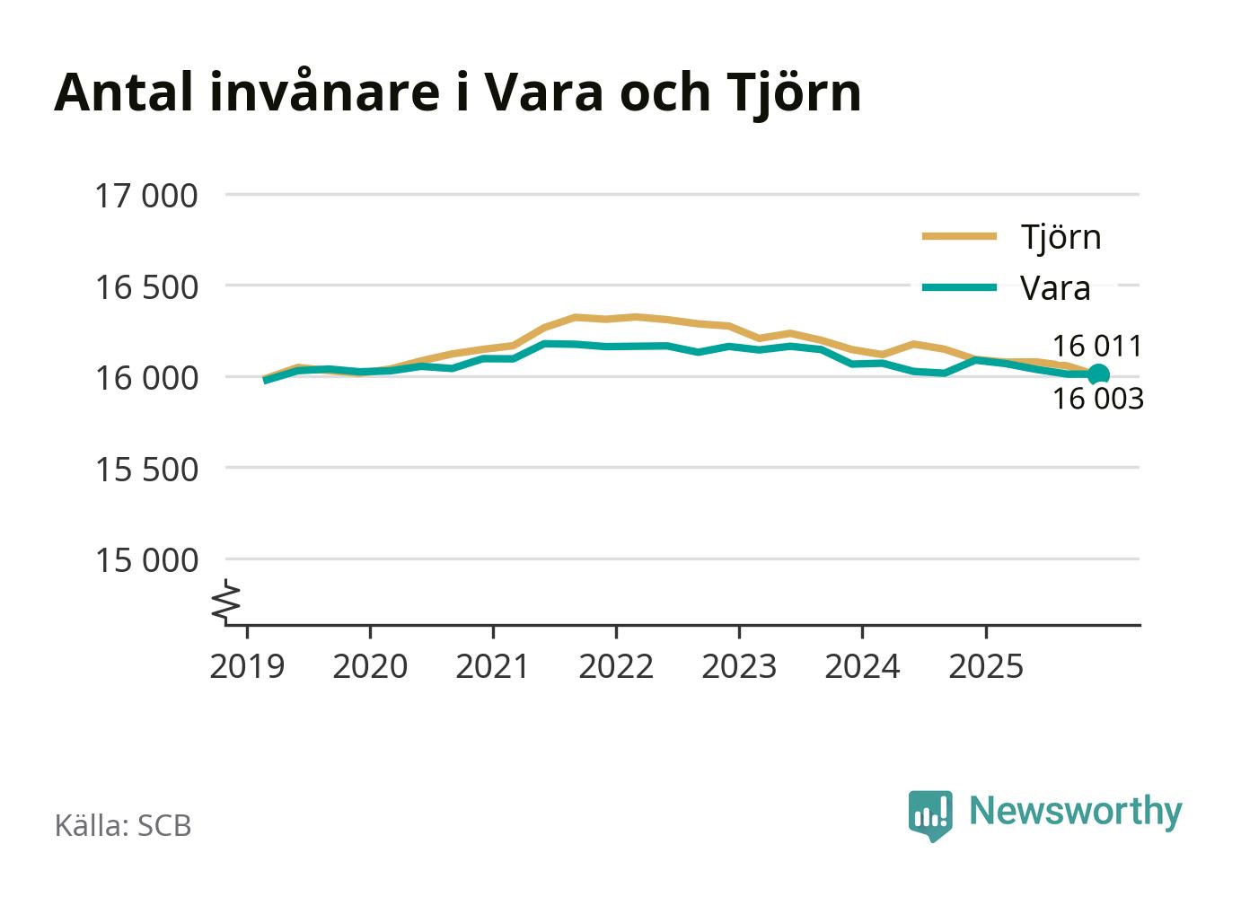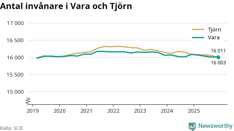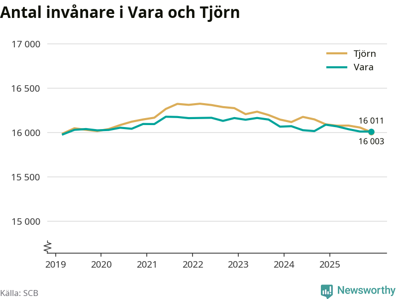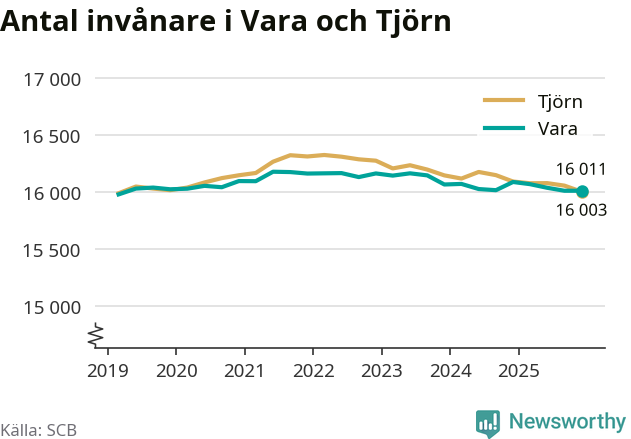 Befolkningen i Vara var relativt oförändrat under fjärde kvartalet 2025. Och nu bor här lika många som på Tjörn, visar SCB:s senaste befolkningsstatistik.