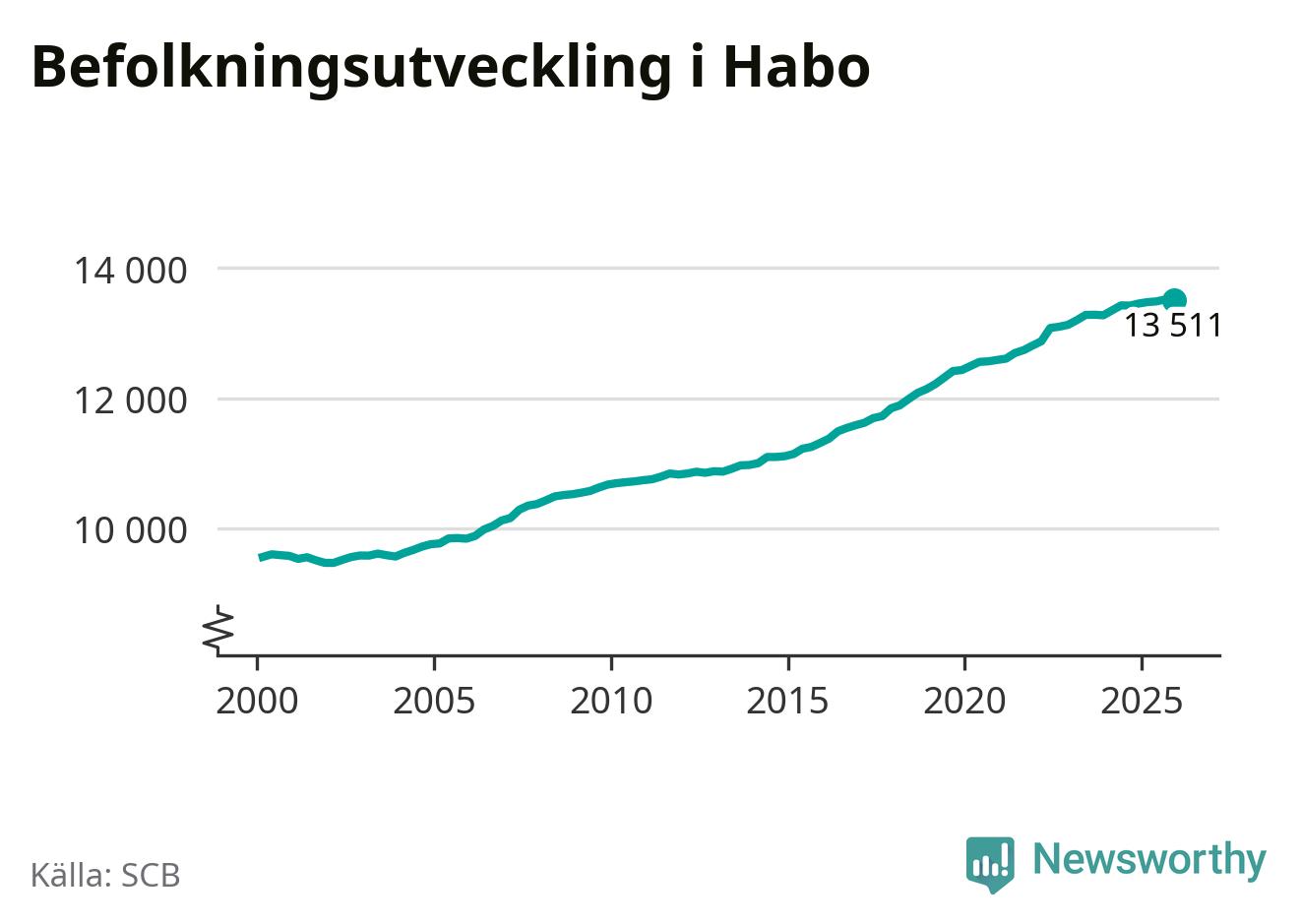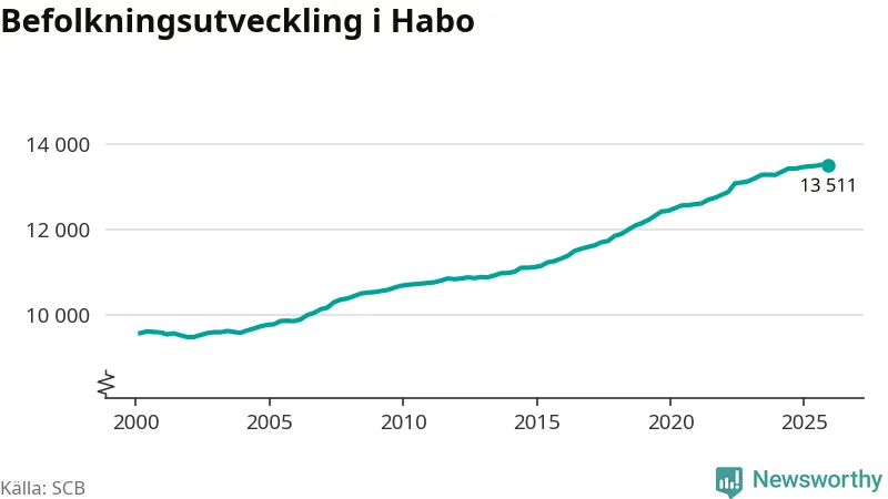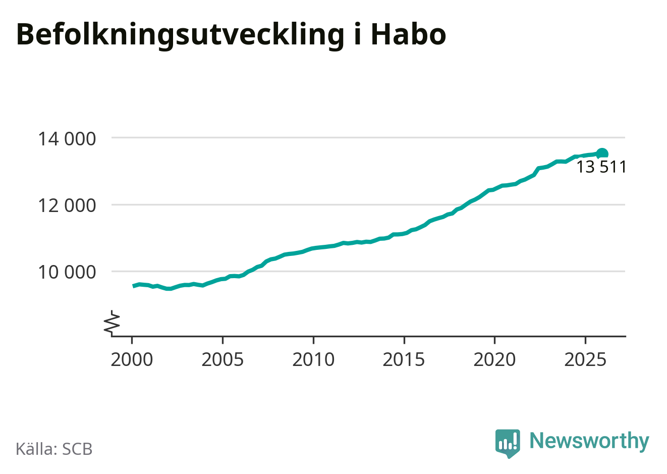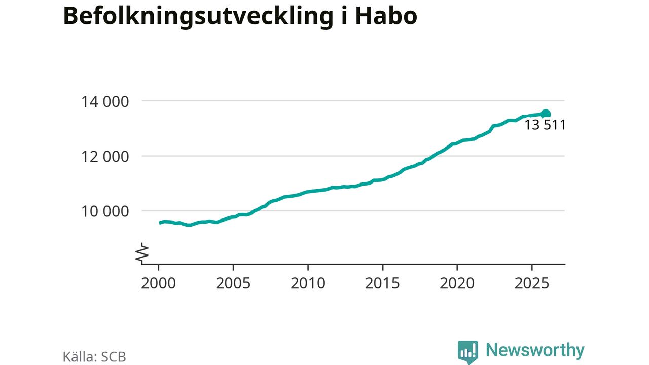 Jämfört med för ett år sedan har befolkningen i Habo ökat med knappt 60 personer. Sedan millennieskiftet har folkmängden ökat med runt 3 950 personer, eller 41 procent. Det är den största ökningen i Jönköpings län under den perioden.