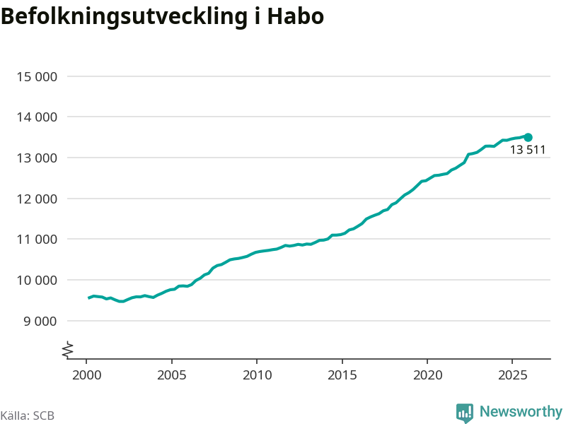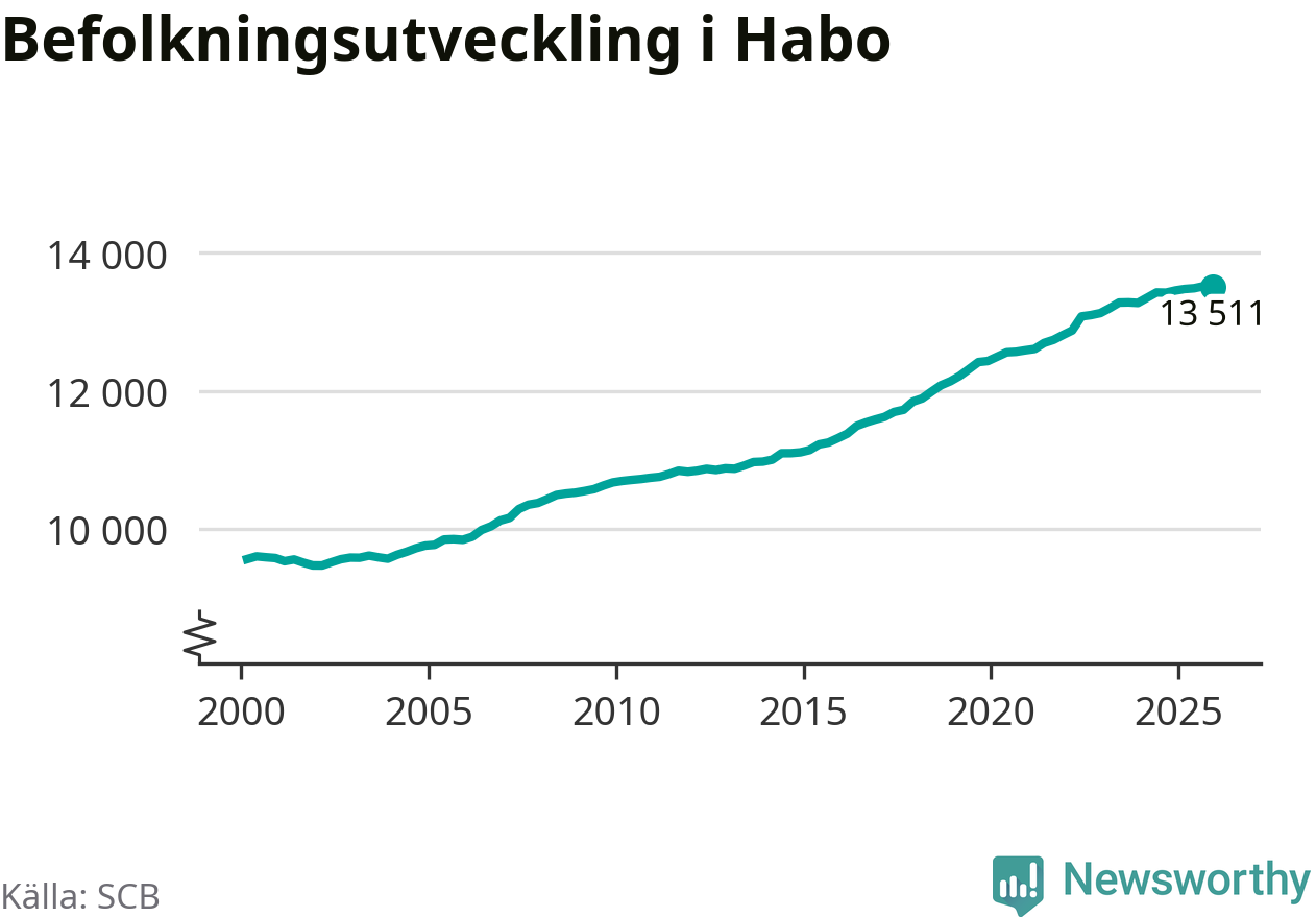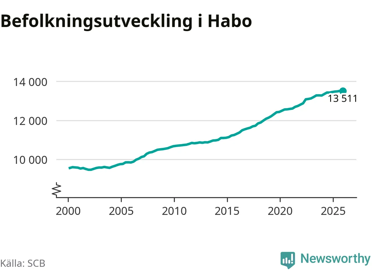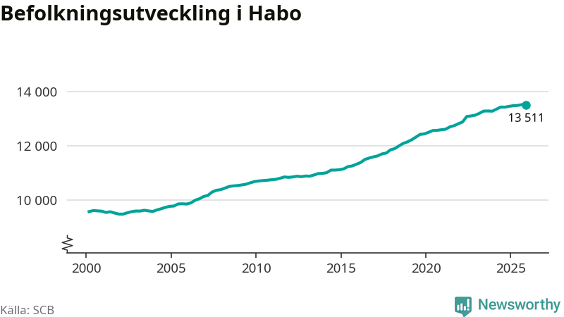 Jämfört med för ett år sedan har befolkningen i Habo ökat med knappt 60 personer. Sedan millennieskiftet har folkmängden ökat med runt 3 950 personer, eller 41 procent. Det är den största ökningen i Jönköpings län under den perioden.
