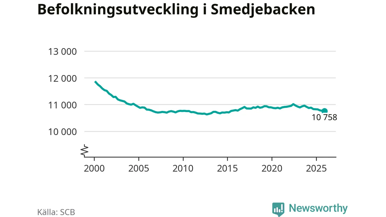 Befolkningen minskade i Smedjebackens kommun under det fjärde kvartalet 2025. Den 31 december bodde enligt SCB:s senaste siffror 10 758 personer i kommunen, vilket är tio färre än i slutet av tredje kvartalet.