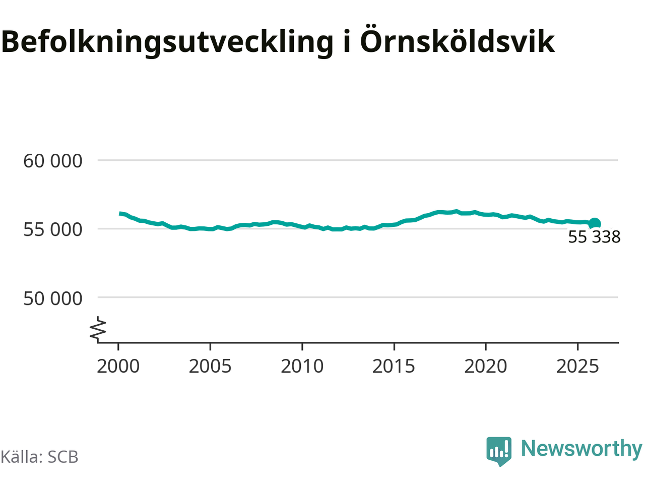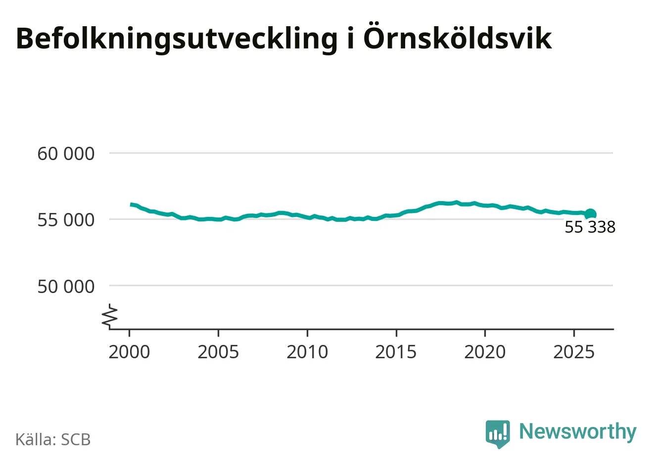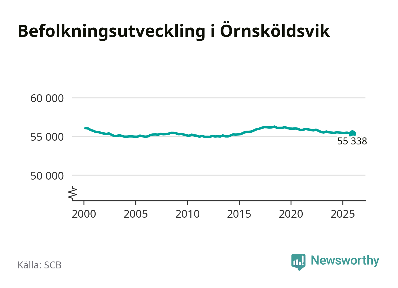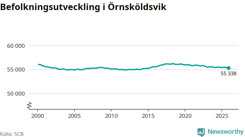 Den 31 december bodde enligt SCB:s senaste siffror 55 338 personer i kommunen, vilket är 60 färre än i slutet av tredje kvartalet.