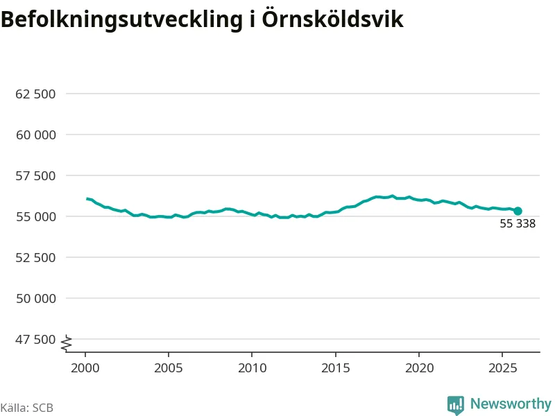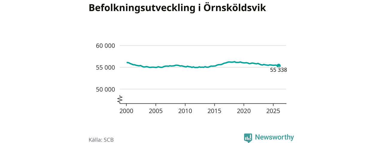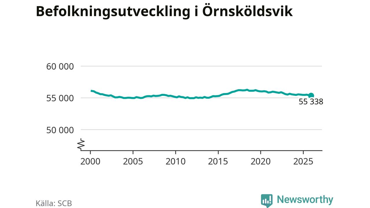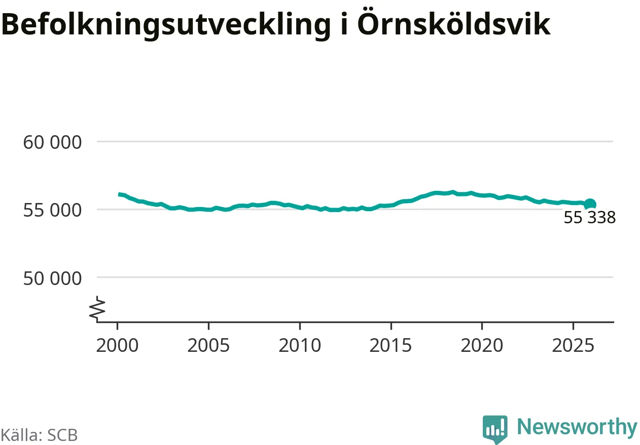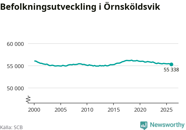 Jämfört med för ett år sedan har befolkningen i Örnsköldsvik minskat med knappt 110 personer. Sedan millennieskiftet har folkmängden minskat med runt 720 personer, eller en procent.