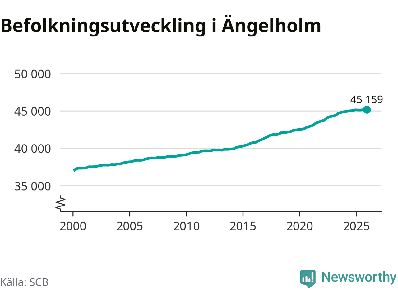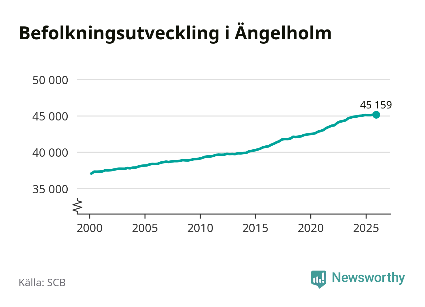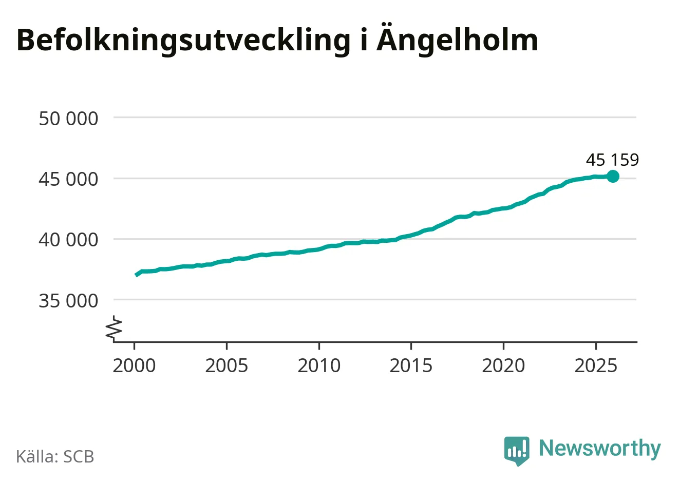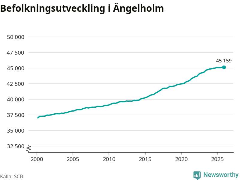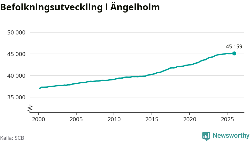 Befolkningen ökade i Ängelholms kommun under det fjärde kvartalet 2025. Den 31 december bodde enligt SCB:s senaste siffror 45 159 personer i kommunen, vilket är 13 fler än i slutet av tredje kvartalet.