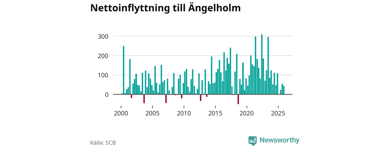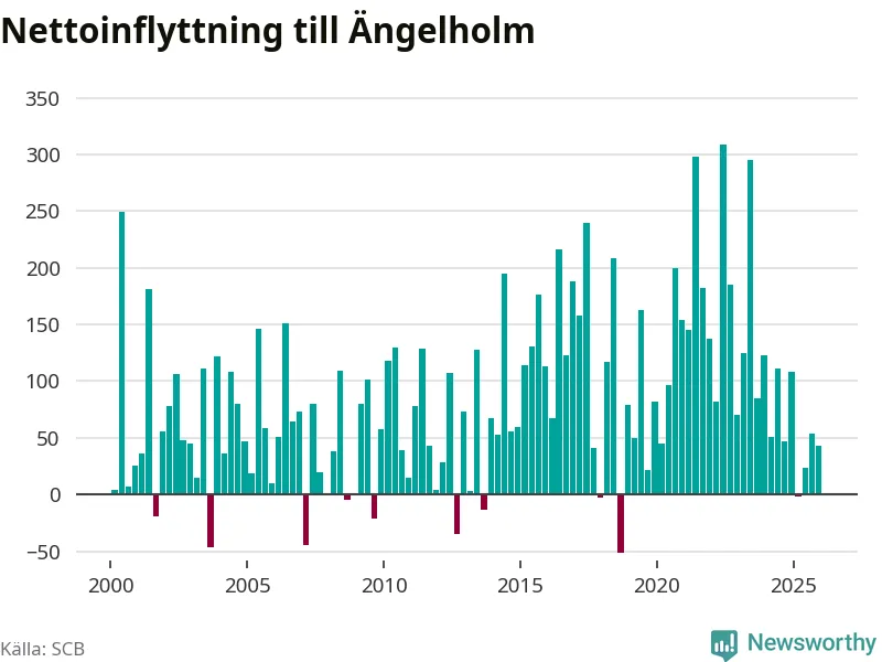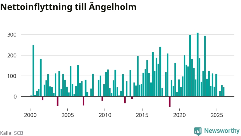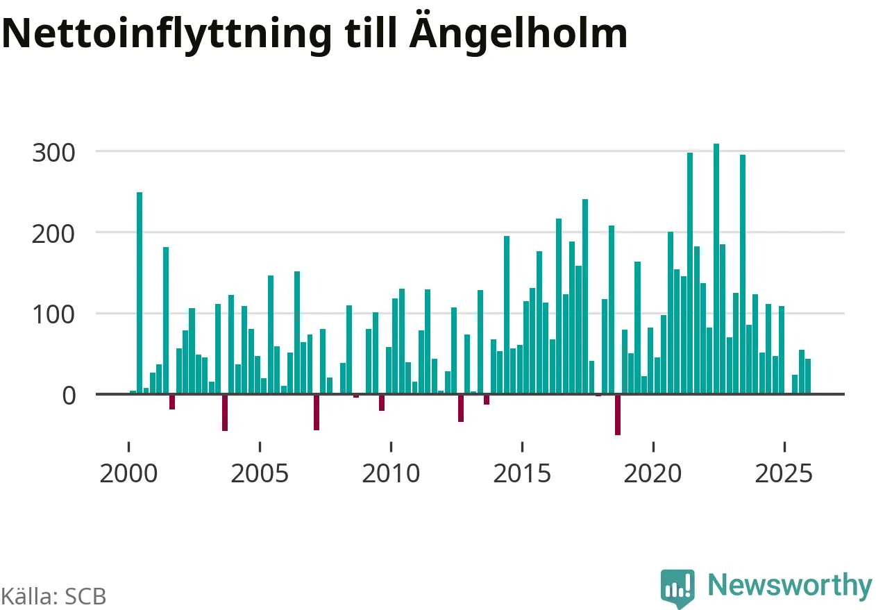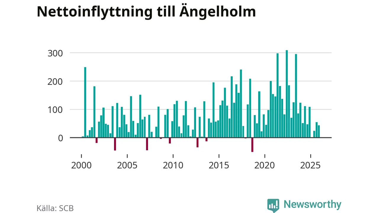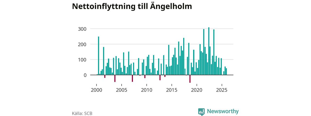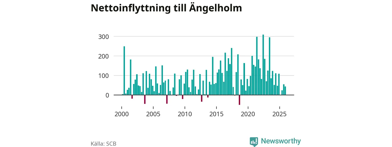 Under fjärde kvartalet 2025 flyttade 507 personer till kommunen medan 464 personer flyttade därifrån. Sedan seklets början har Ängelholm haft ett positivt flyttnetto under nästan alla kvartal, inklusive det senaste kvartalet.