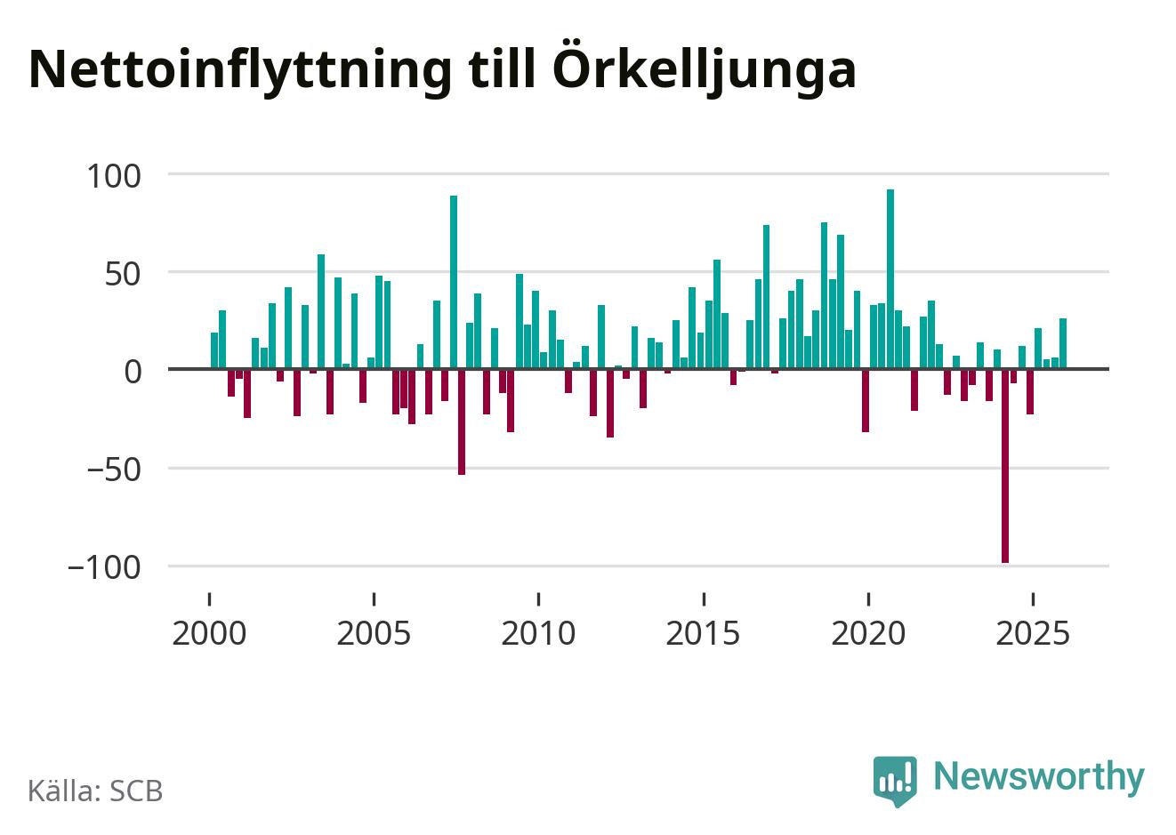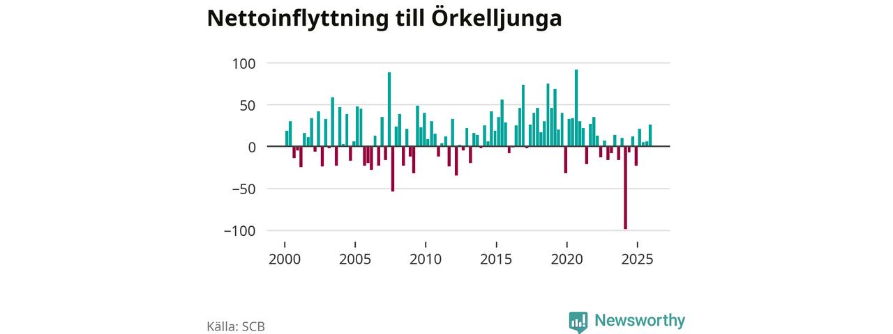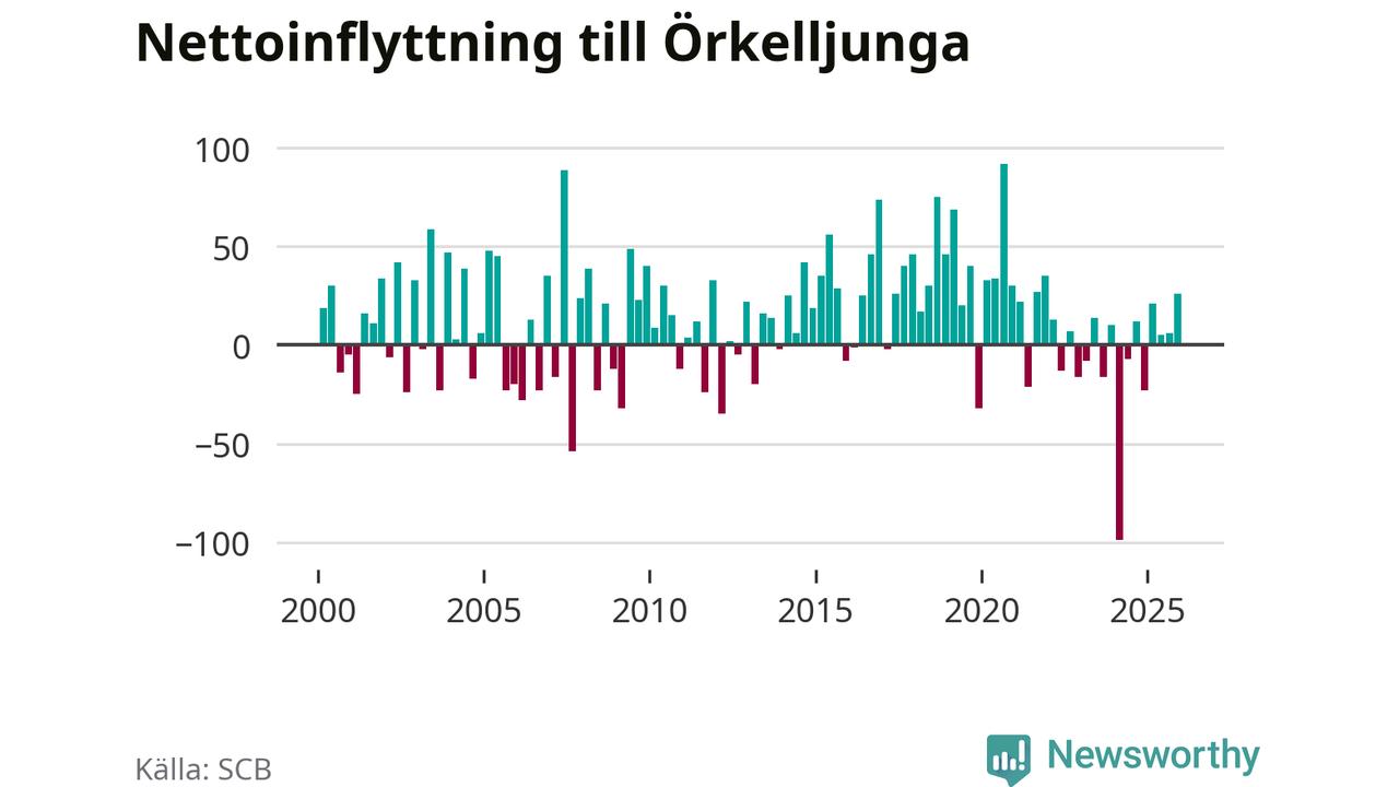 Under fjärde kvartalet 2025 flyttade 189 personer till kommunen medan 163 personer flyttade därifrån. Sedan seklets början har Örkelljunga oftast haft ett positivt flyttnetto, inklusive det senaste kvartalet.