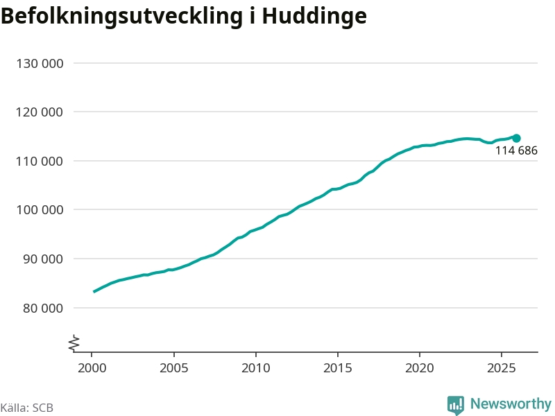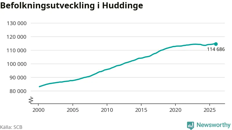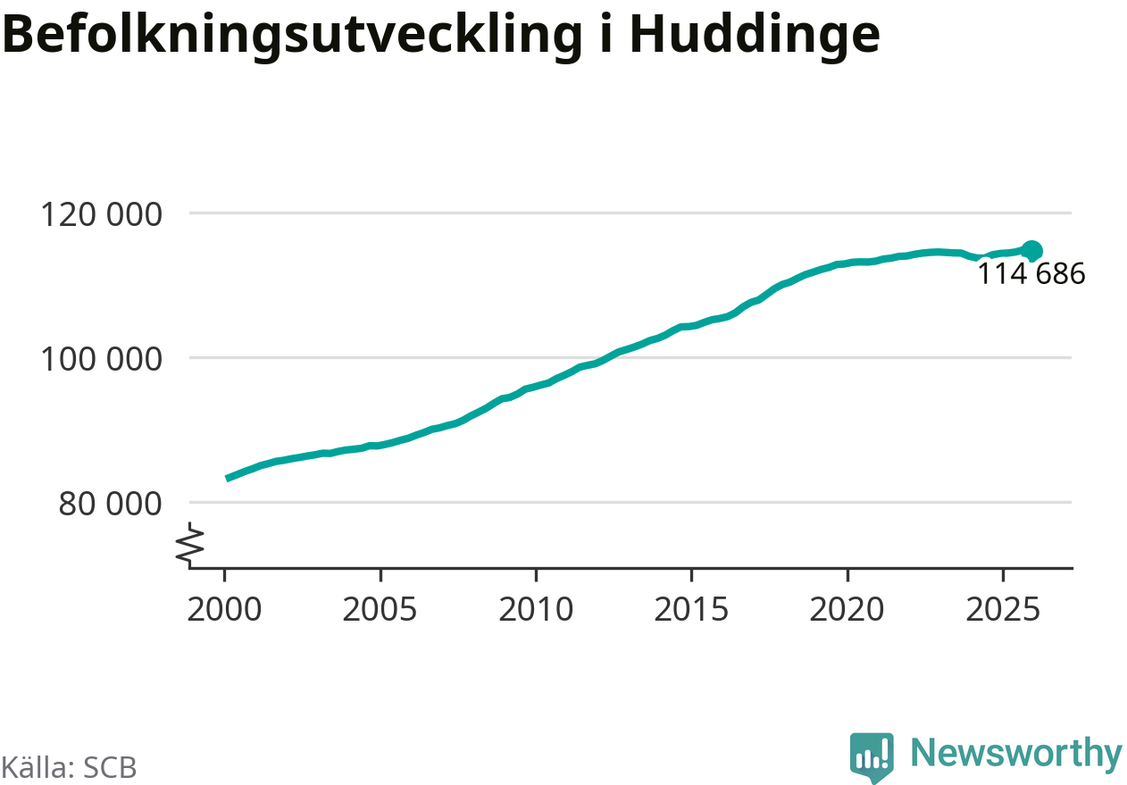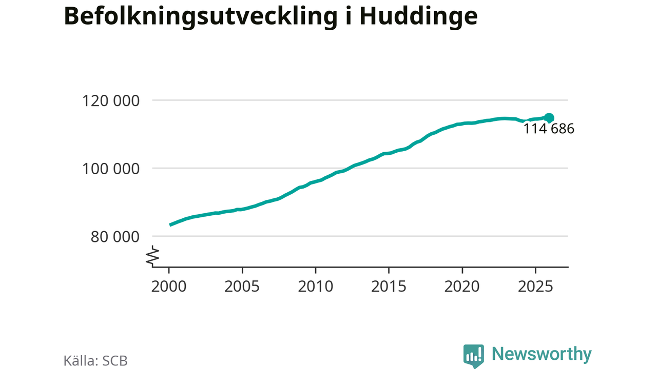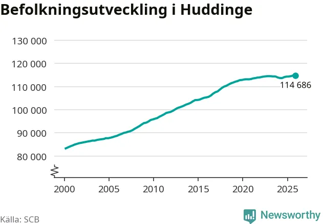 Befolkningen minskade i Huddinge kommun under det fjärde kvartalet 2025. Den 31 december bodde enligt SCB:s senaste siffror 114 686 personer i kommunen, vilket är 133 färre än i slutet av tredje kvartalet.
