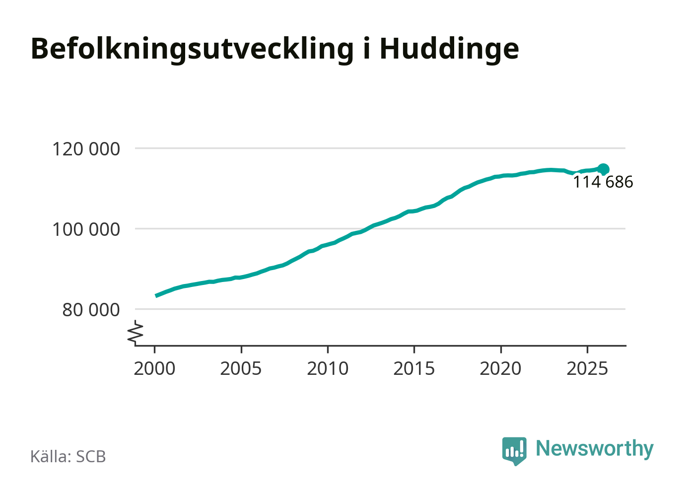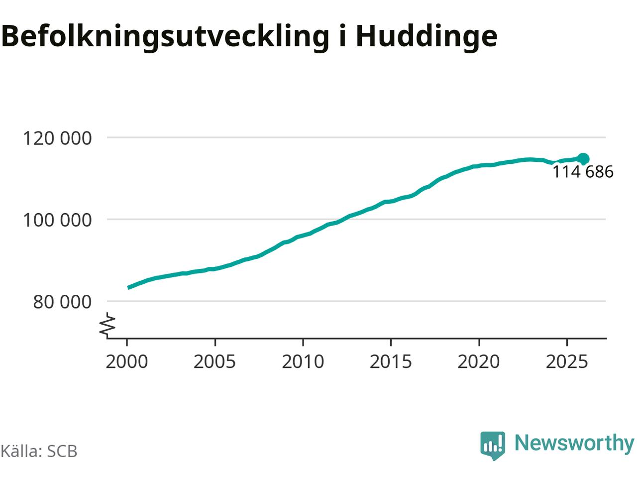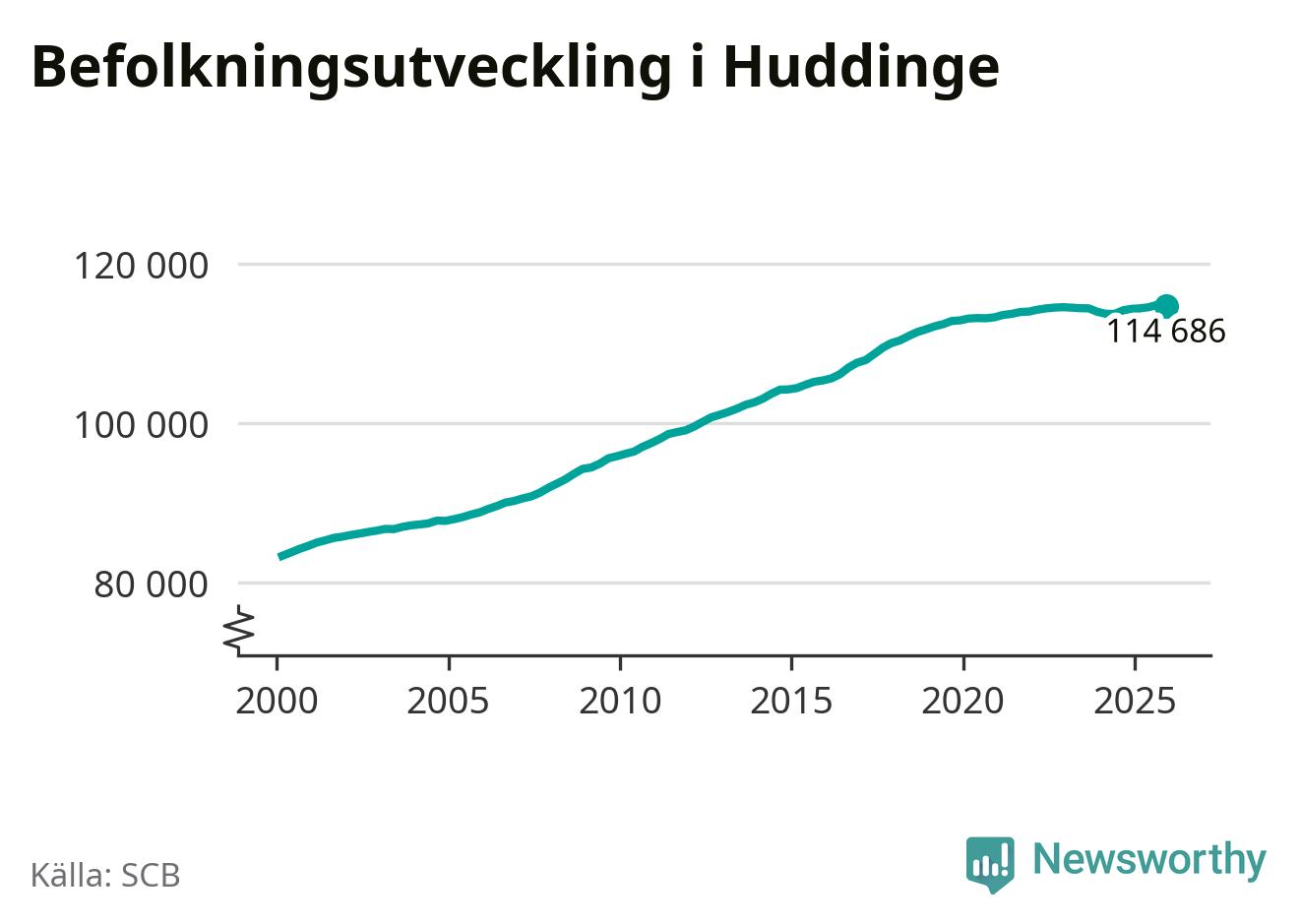 Befolkningen minskade i Huddinge kommun under det fjärde kvartalet 2025. Den 31 december bodde enligt SCB:s senaste siffror 114 686 personer i kommunen, vilket är 133 färre än i slutet av tredje kvartalet.