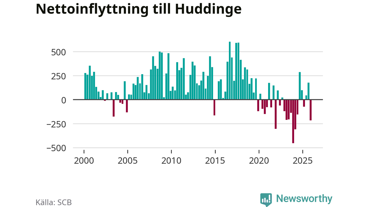 Antalet födda var större än antalet avlidna – men fler flyttade från än till Huddinge kommun. Befolkningen minskade under det fjärde kvartalet 2025. Det visar nya siffror från SCB.