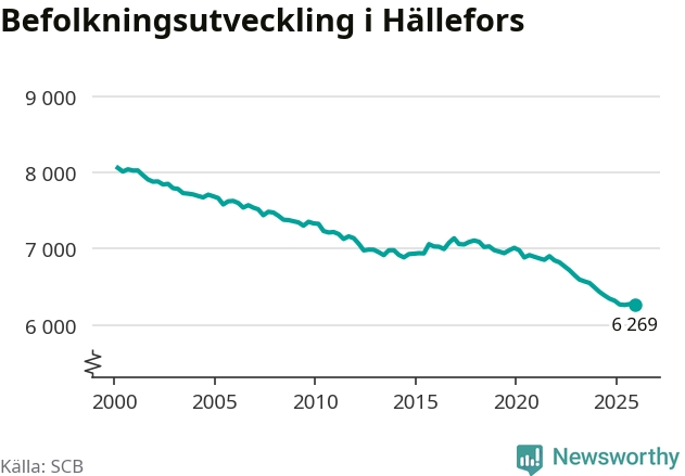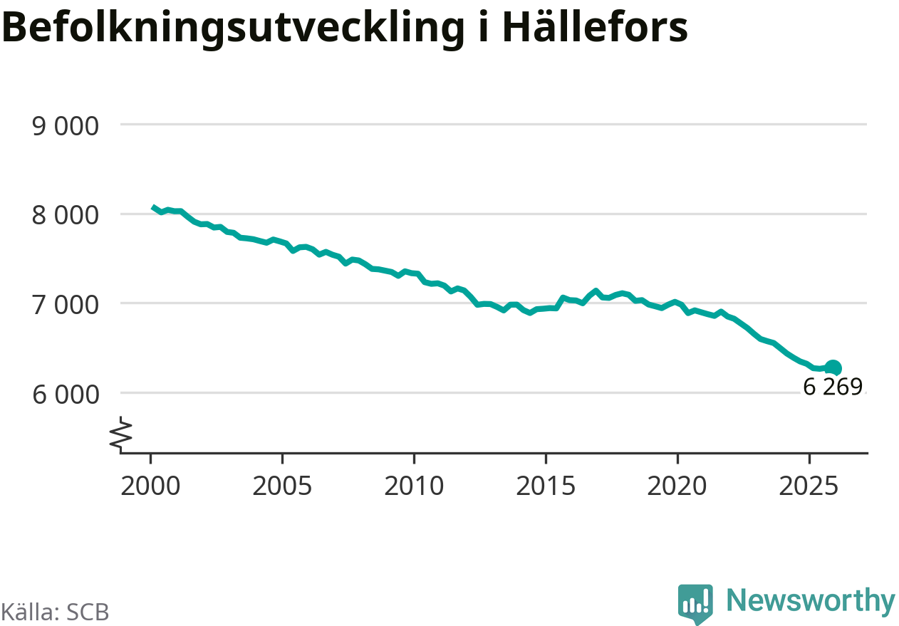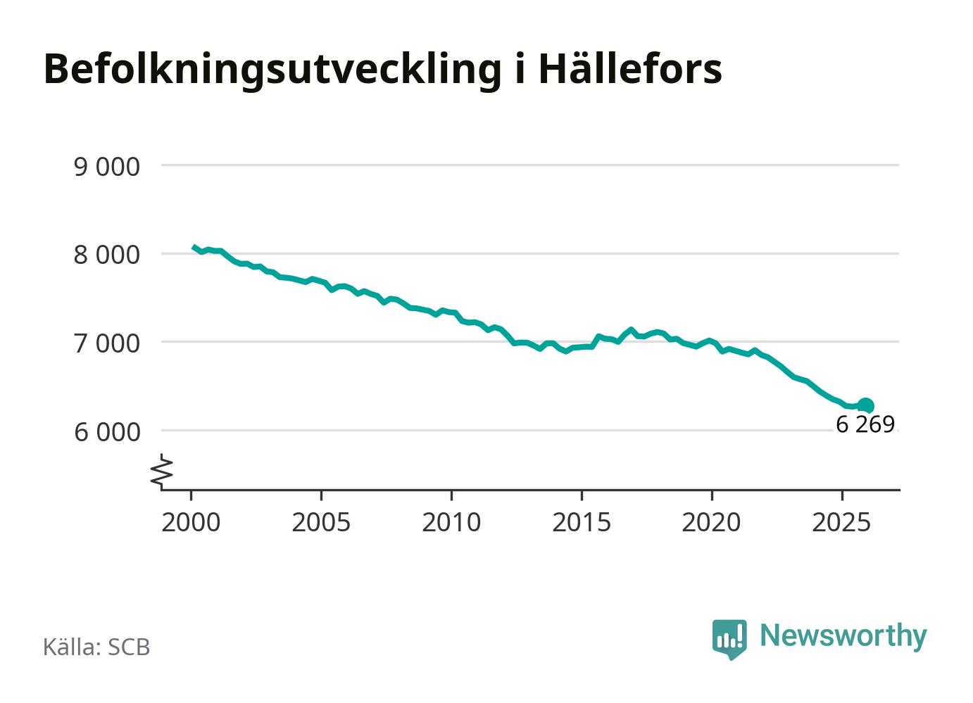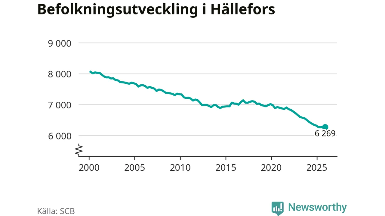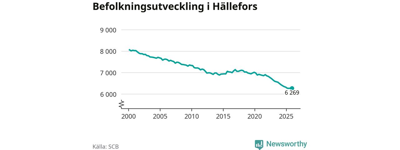 Befolkningen minskade i Hällefors kommun under det fjärde kvartalet 2025. Den 31 december bodde enligt SCB:s senaste siffror 6 269 personer i kommunen, vilket är åtta färre än i slutet av tredje kvartalet.