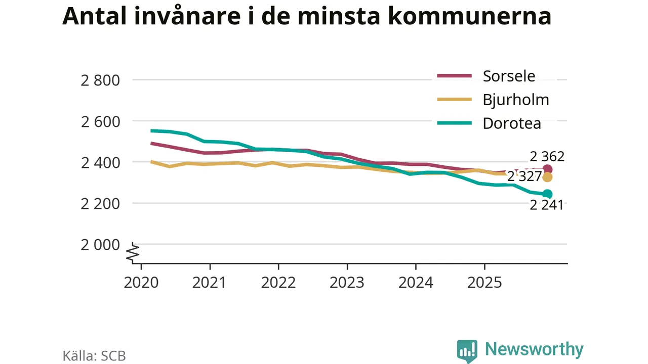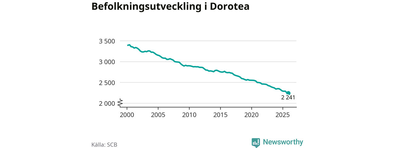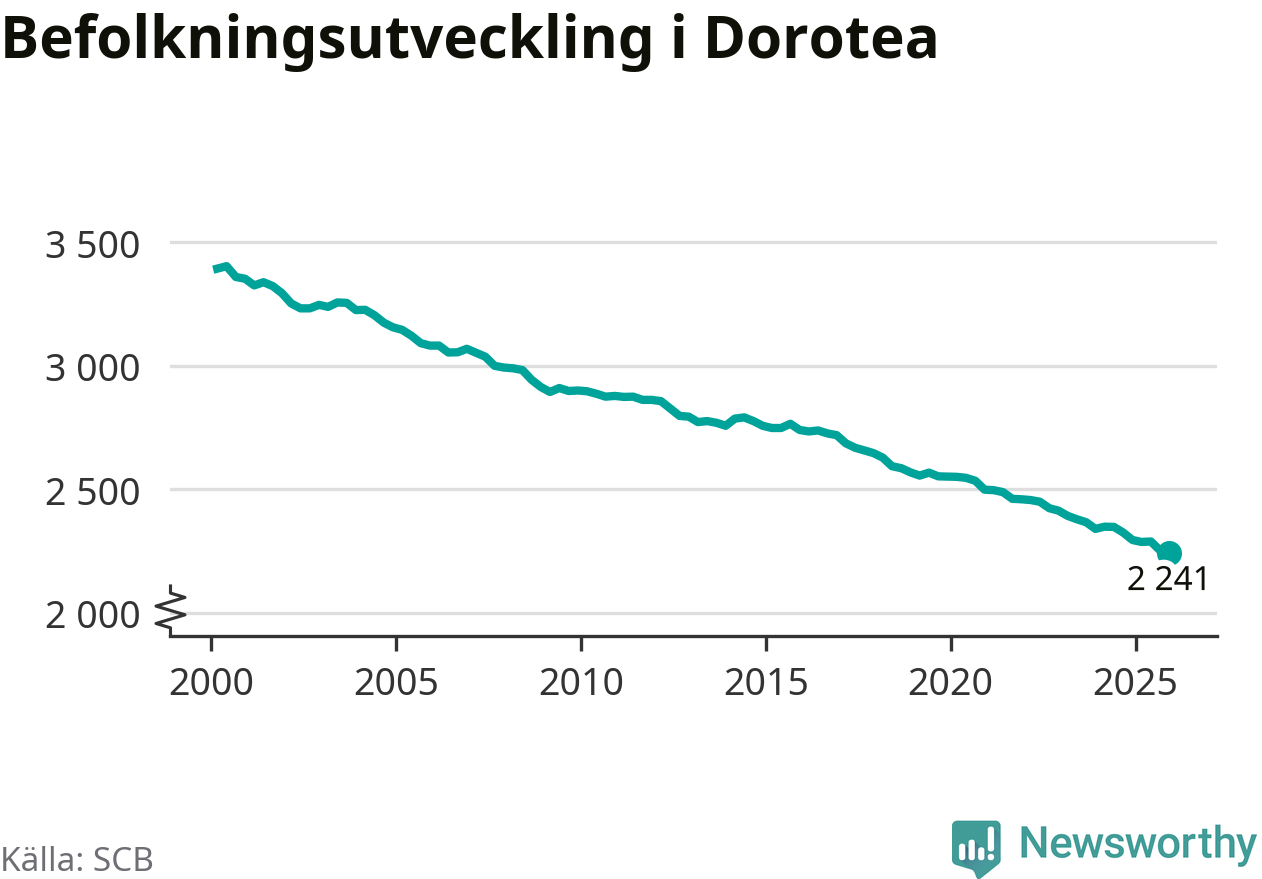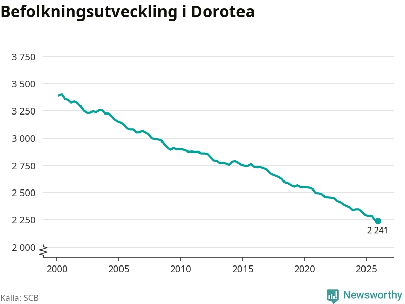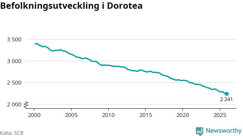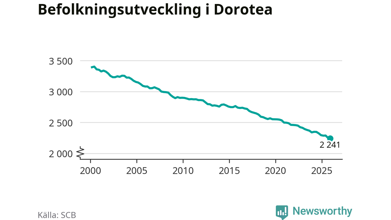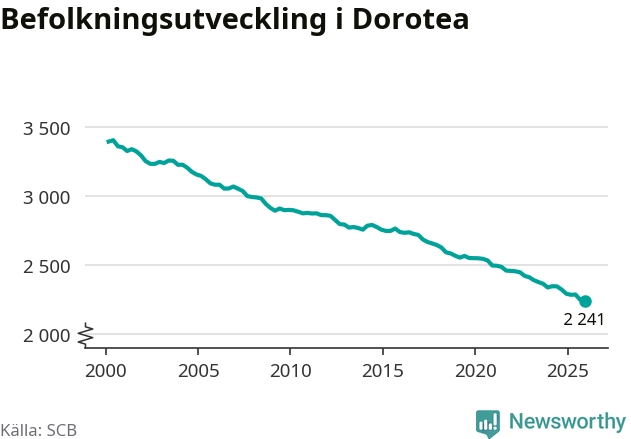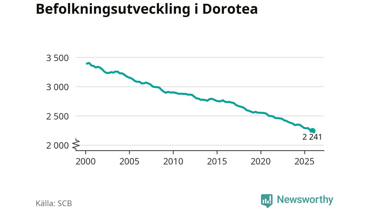 Befolkningen minskade i Dorotea kommun under det fjärde kvartalet 2025. Den 31 december bodde enligt SCB:s senaste siffror 2 241 personer i kommunen, vilket är tio färre än i slutet av tredje kvartalet.