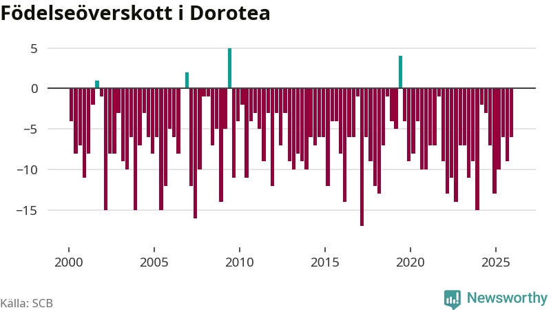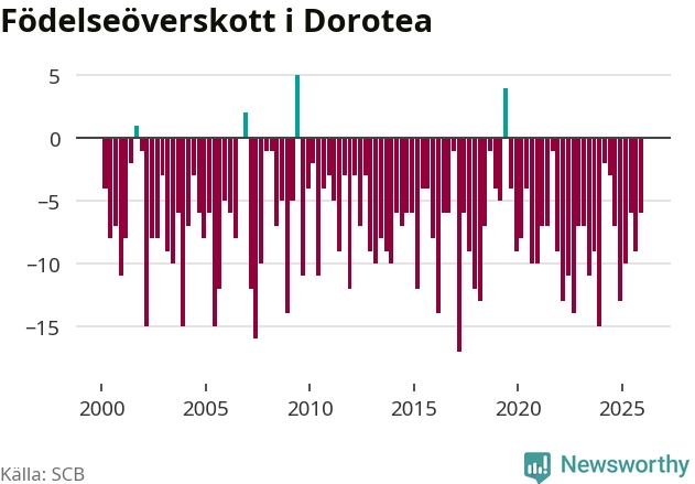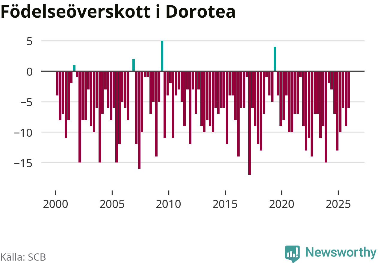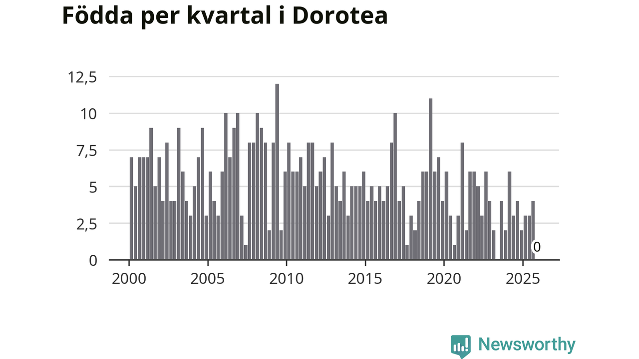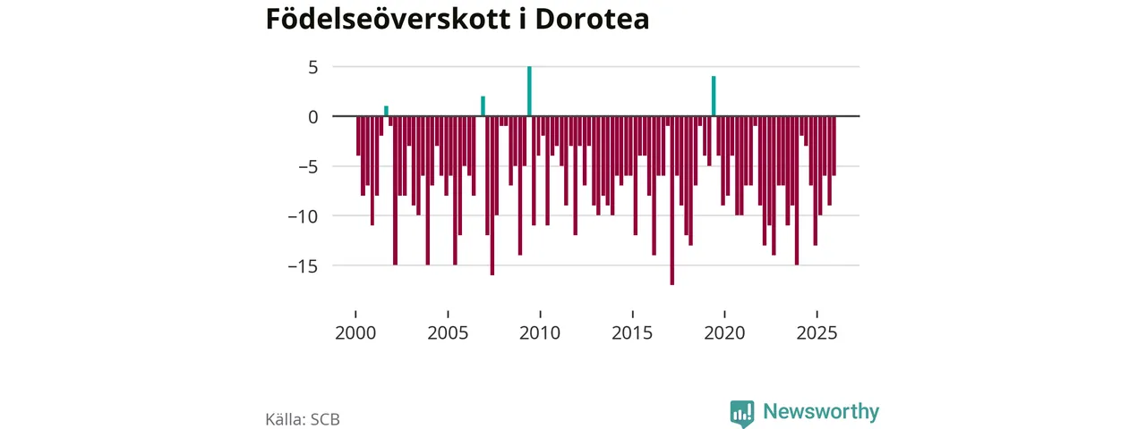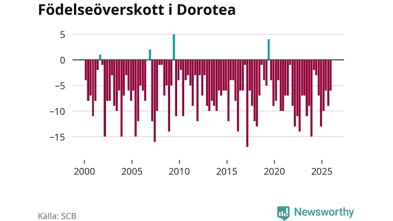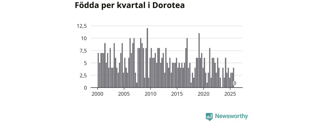 Inget, eller möjligtvis något enstaka, barn föddes i Dorotea kommun under fjärde kvartalet 2025. Alldeles oavsett är det en av de lägsta sifforna hittills det här seklet. Det visar SCB:s senaste befolkningsstatistik.