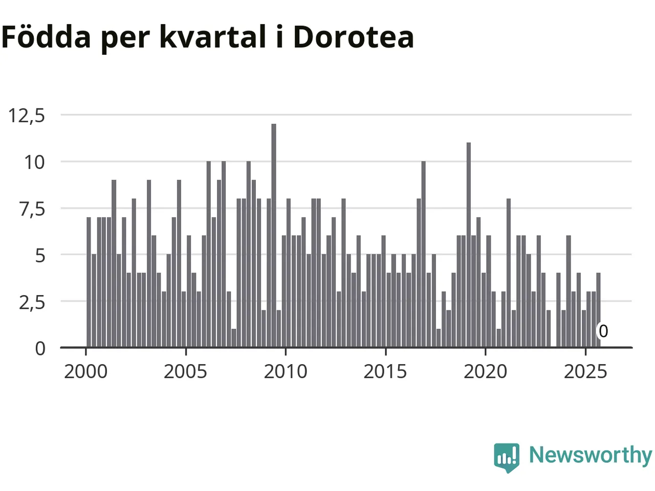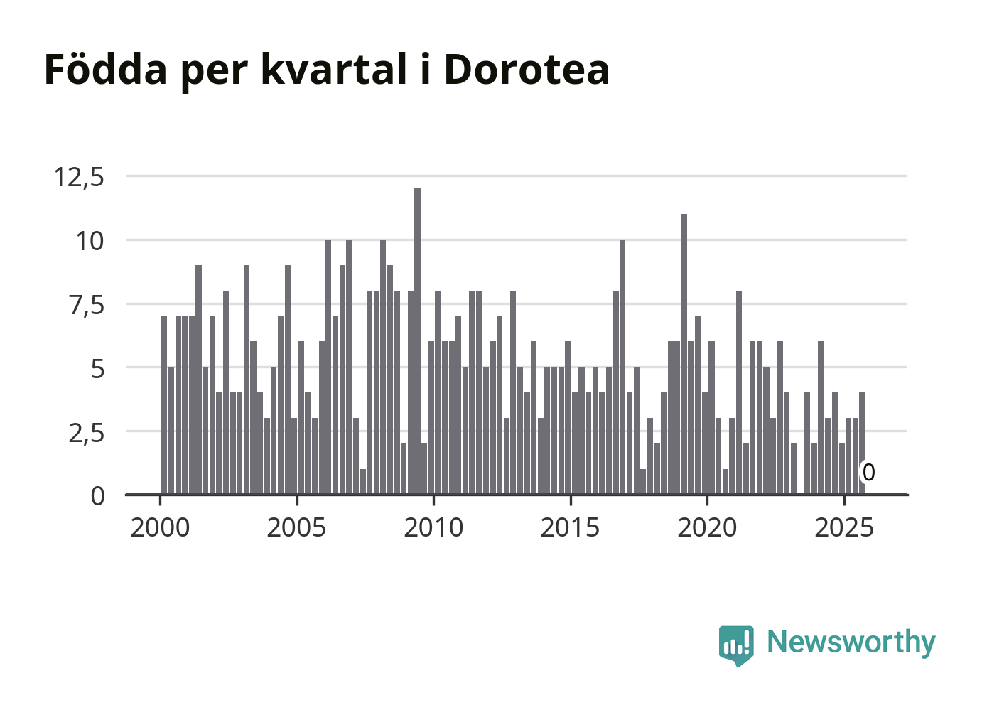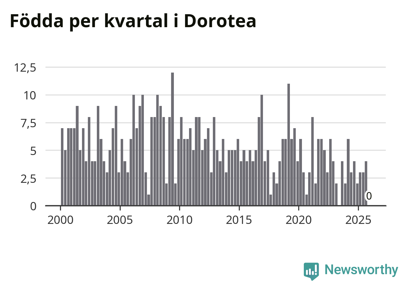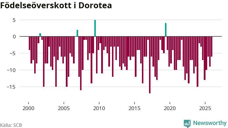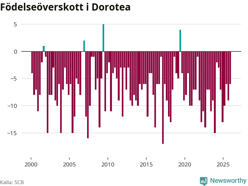 Inget, eller möjligtvis något enstaka, barn föddes i Dorotea kommun under fjärde kvartalet 2025. Alldeles oavsett är det en av de lägsta sifforna hittills det här seklet. Det visar SCB:s senaste befolkningsstatistik.