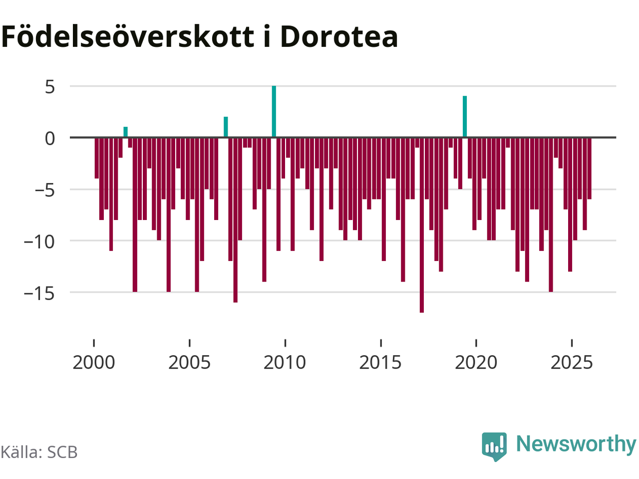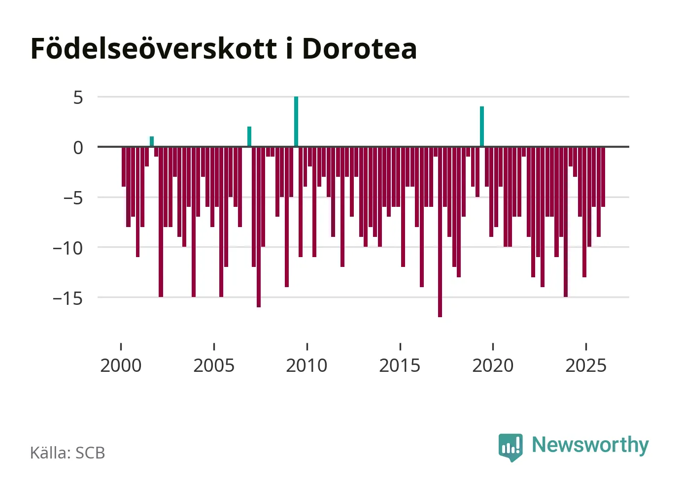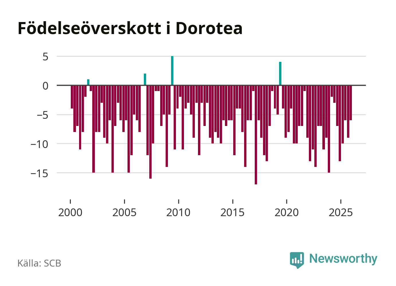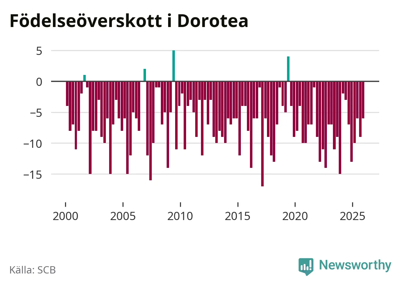 Inget, eller möjligtvis något enstaka, barn föddes i Dorotea kommun under fjärde kvartalet 2025. Alldeles oavsett är det en av de lägsta sifforna hittills det här seklet. Det visar SCB:s senaste befolkningsstatistik.