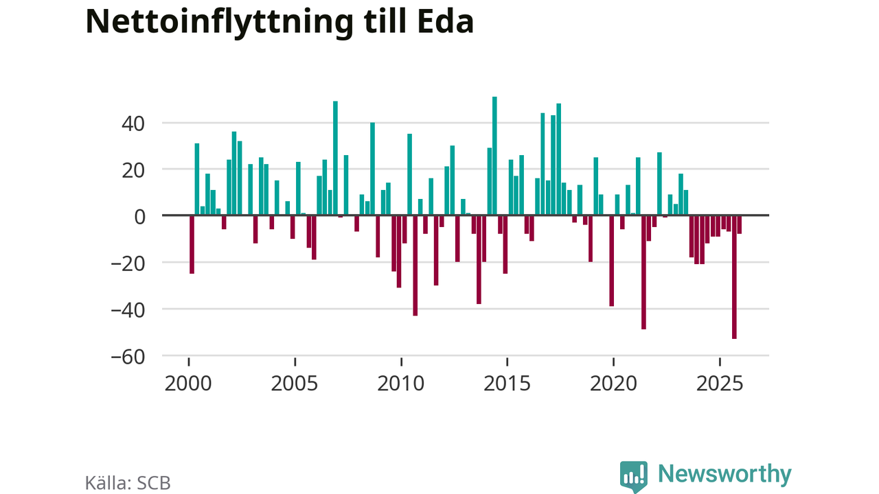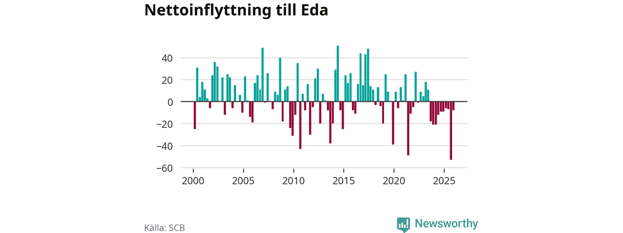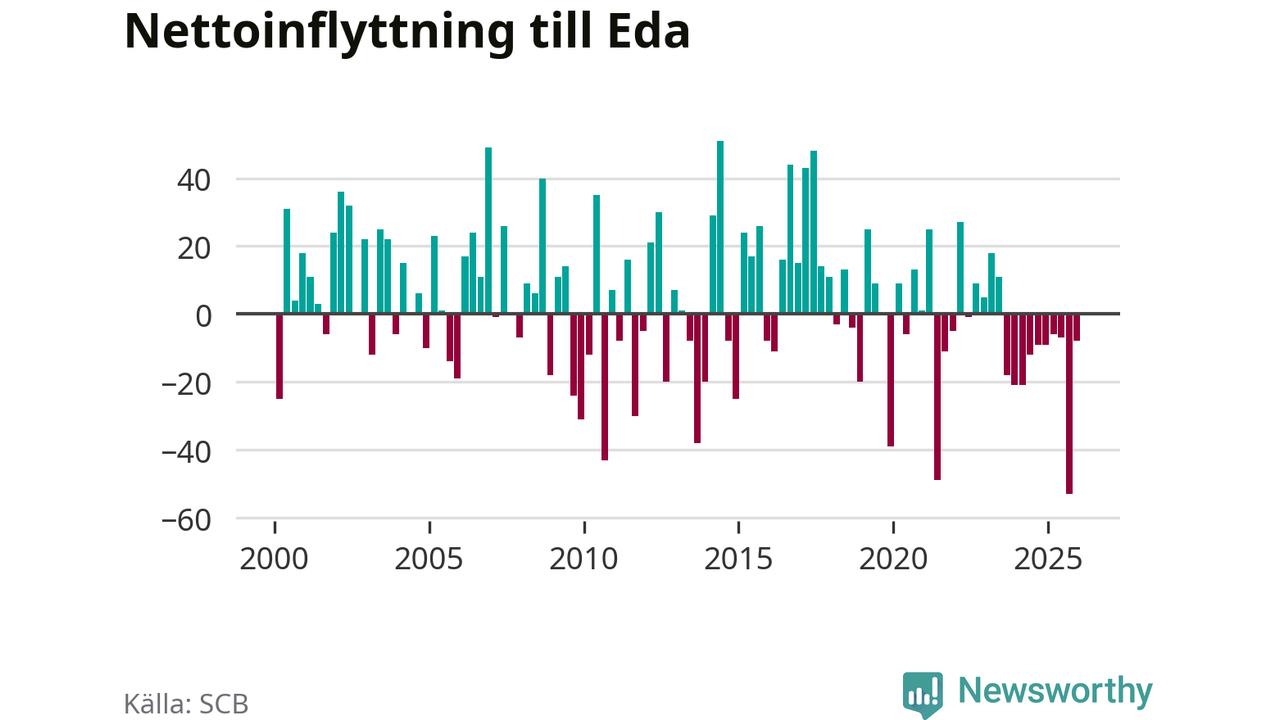 Antalet avlidna var större än antalet födda – och fler flyttade från än till Eda kommun. Befolkningen minskade under det fjärde kvartalet 2025. Det visar nya siffror från SCB.