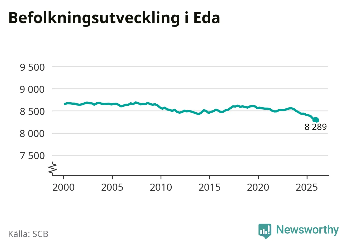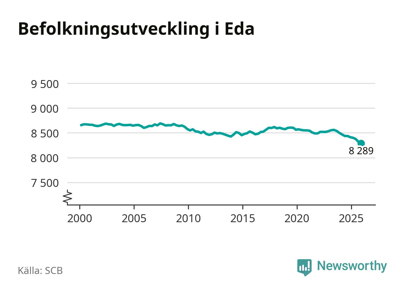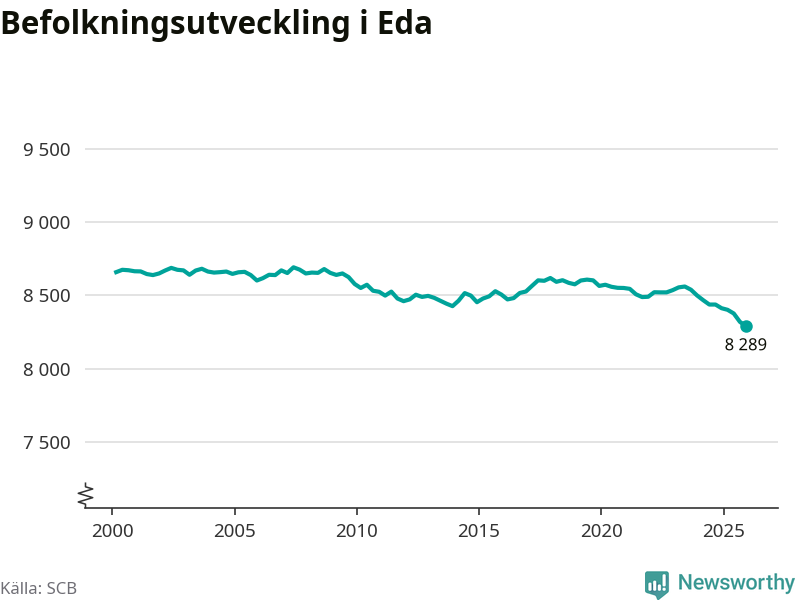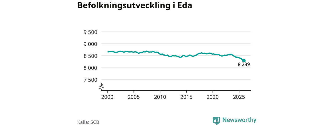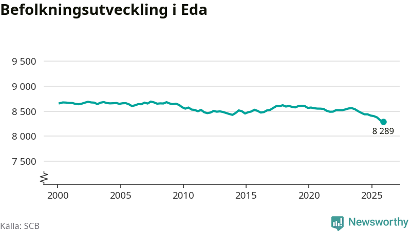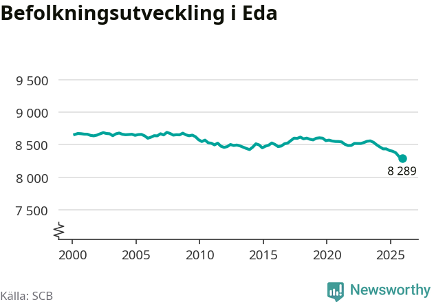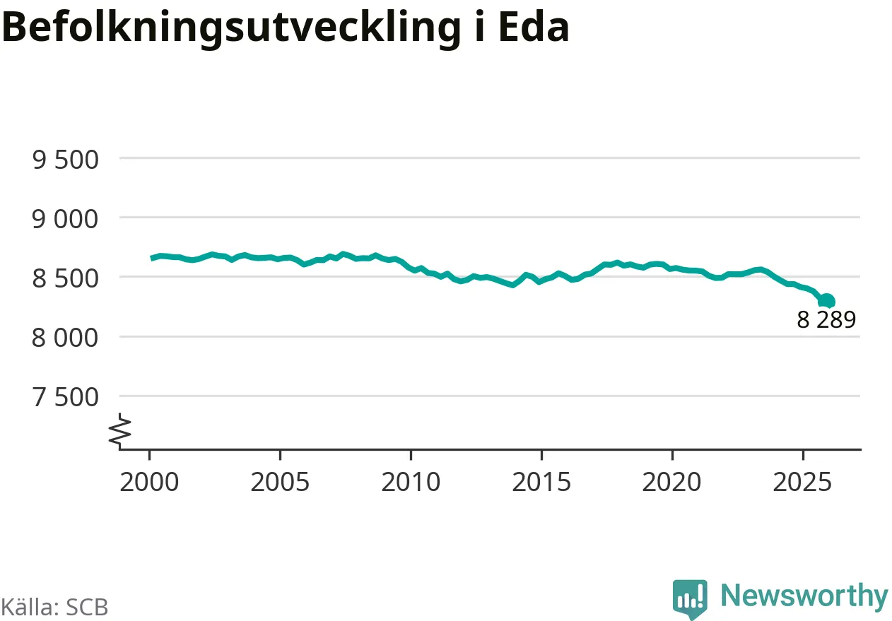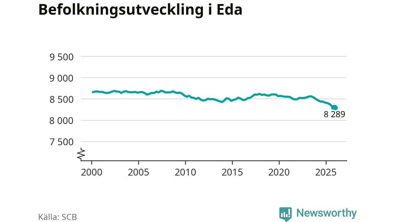 Befolkningen minskade i Eda kommun under det fjärde kvartalet 2025. Den 31 december bodde enligt SCB:s senaste siffror 8 289 personer i kommunen, vilket är 30 färre än i slutet av tredje kvartalet.