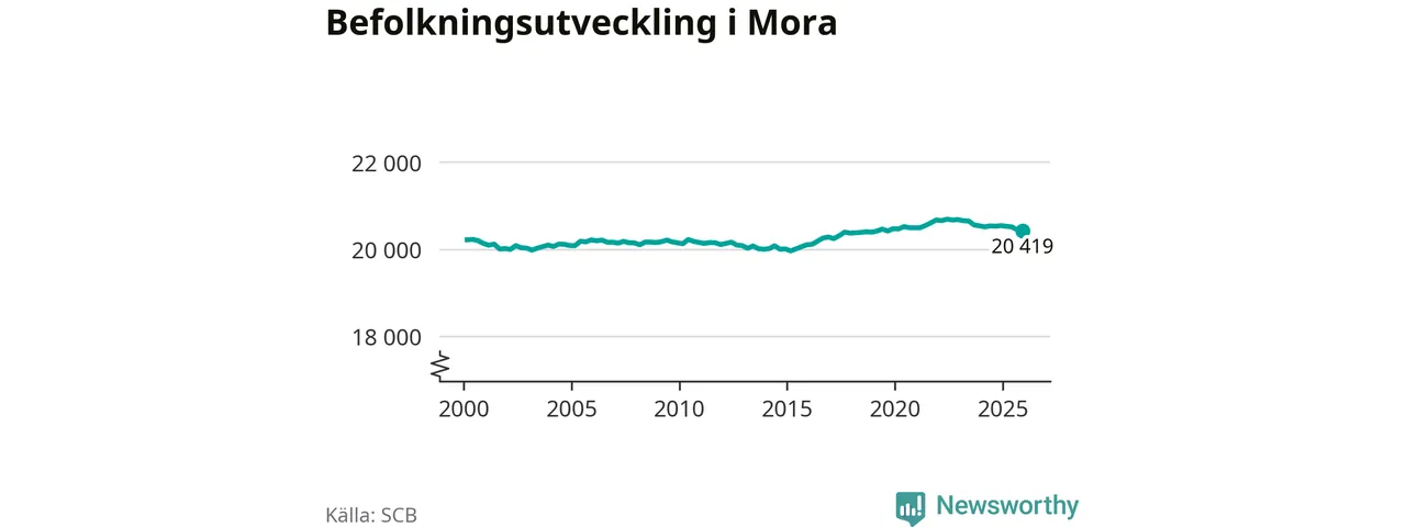 Befolkningen minskade i Mora kommun under det fjärde kvartalet 2025. Den 31 december bodde enligt SCB:s senaste siffror 20 419 personer i kommunen, vilket är 27 färre än i slutet av tredje kvartalet.