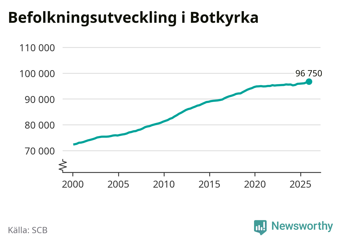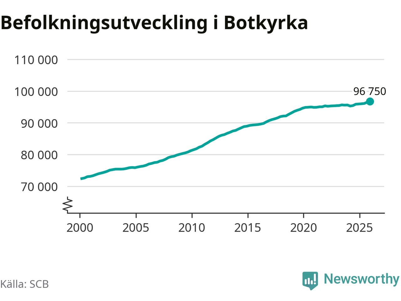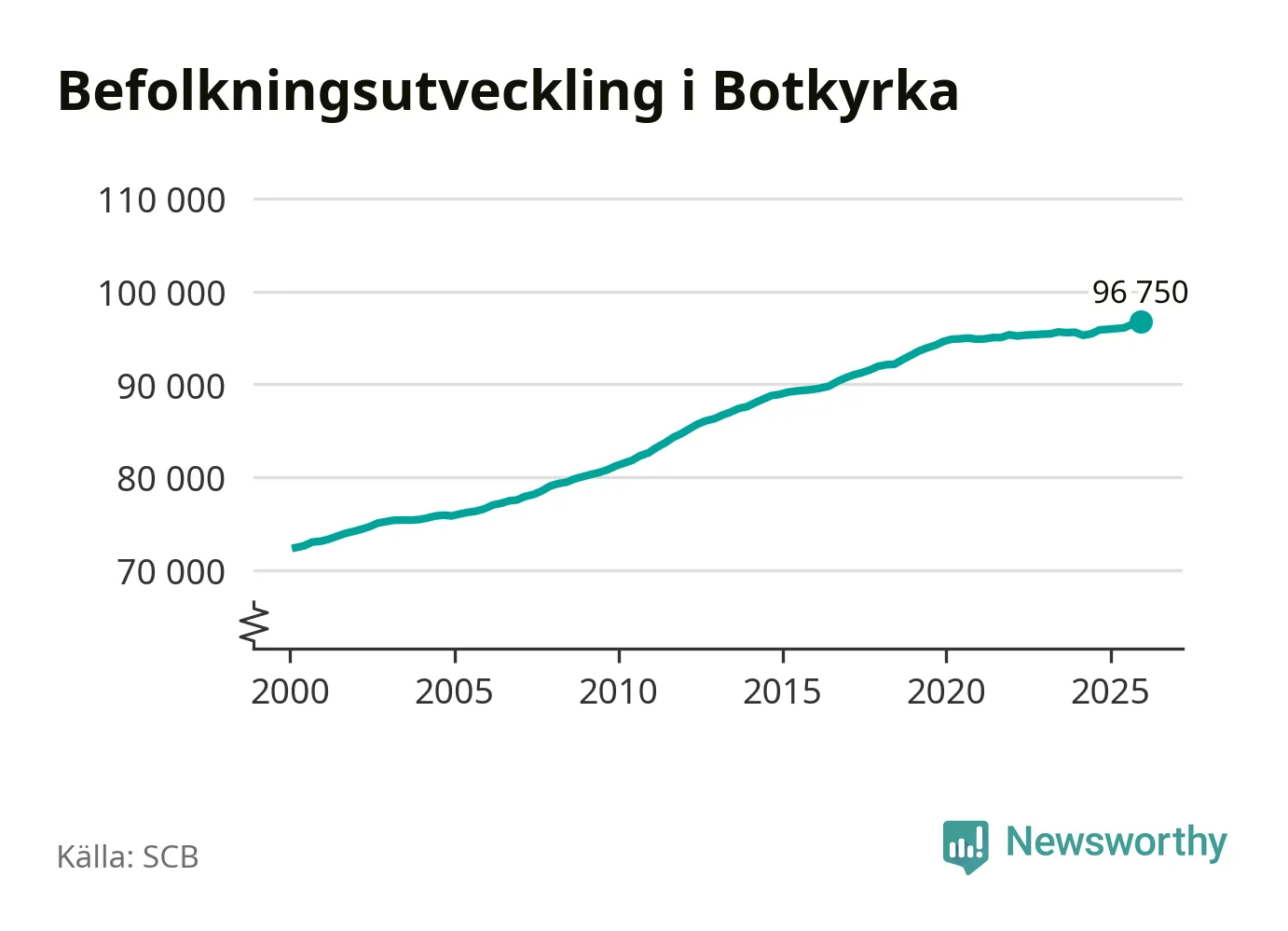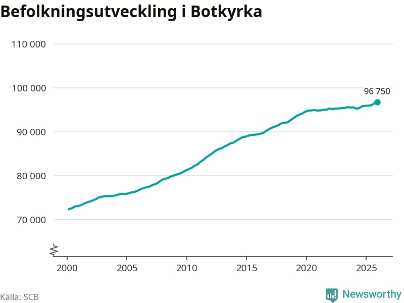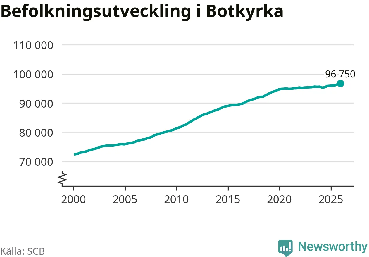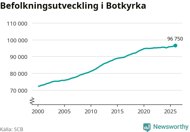 Befolkningen ökade i Botkyrka kommun under det fjärde kvartalet 2025. Den 31 december bodde enligt SCB:s senaste siffror 96 750 personer i kommunen, vilket är 300 fler än i slutet av tredje kvartalet. Folkökningen är procentuellt sett en av de största i Stockholms län.