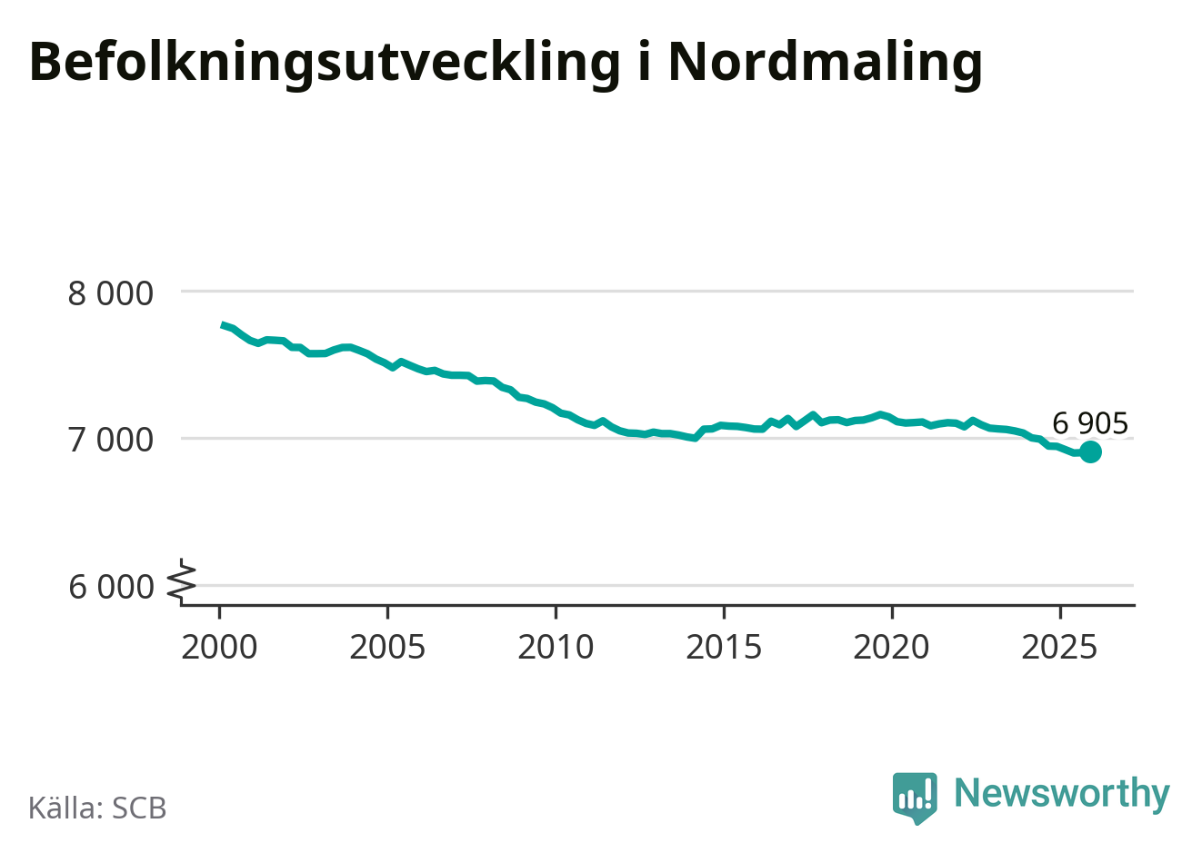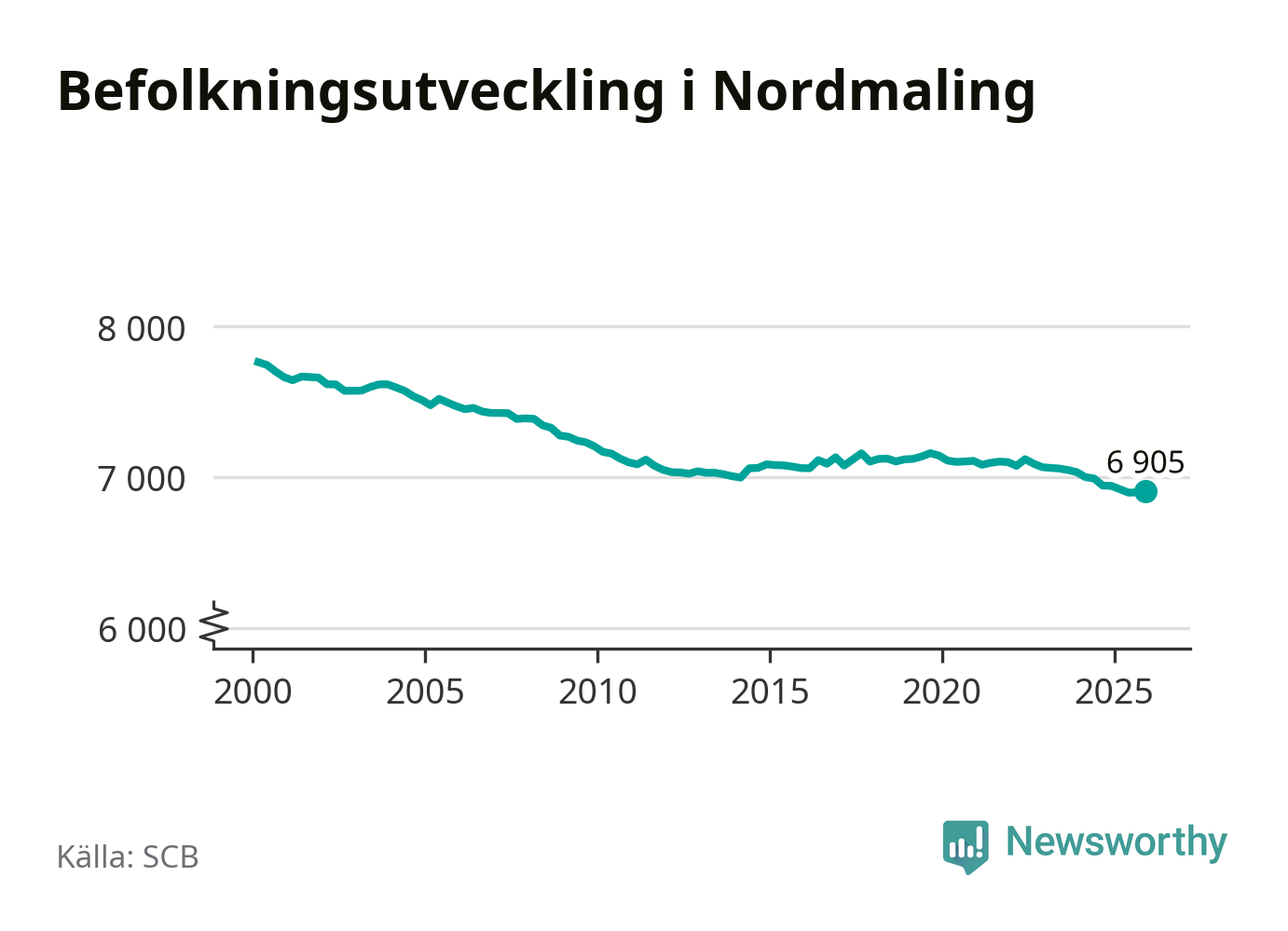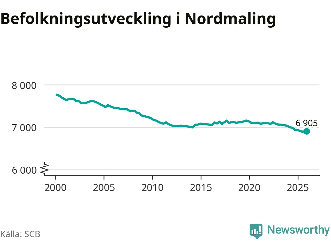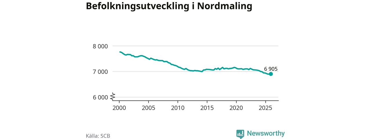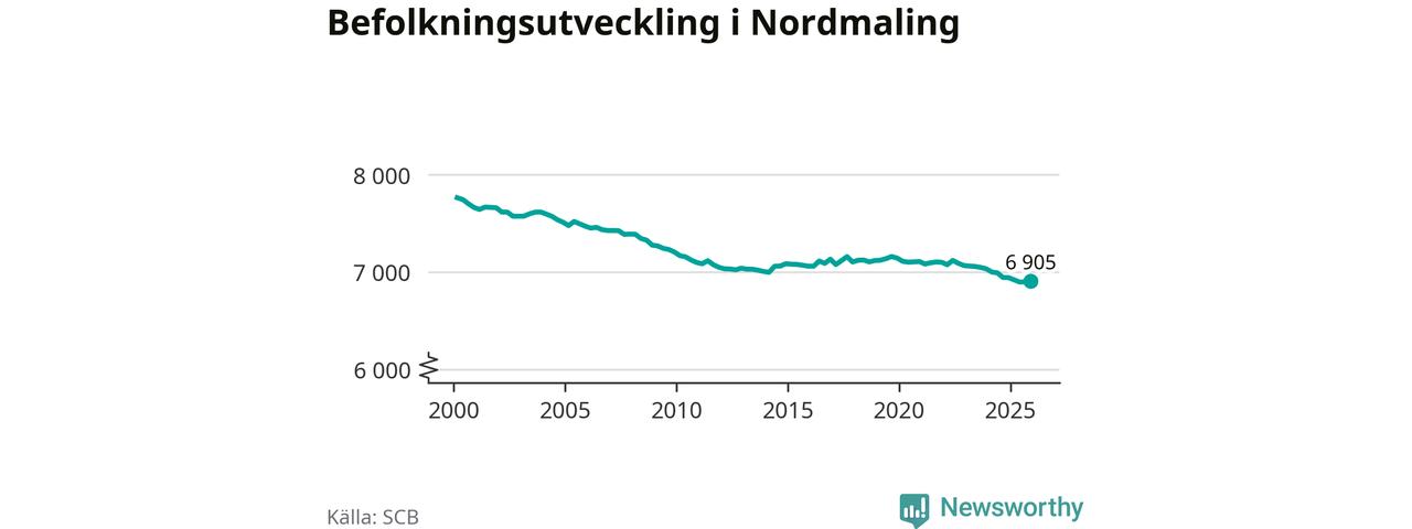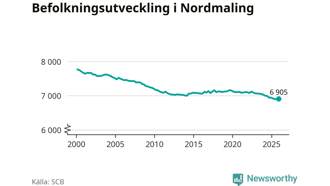 Den 31 december bodde 6 905 personer i Nordmalings kommun, enligt SCB:s senaste siffror. Det är något fler än i slutet av tredje kvartalet, men skillnaden är så liten att den lika gärna kan bero på den lilla justering som SCB gör av siffrorna för att skydda enskilda individers identitet.