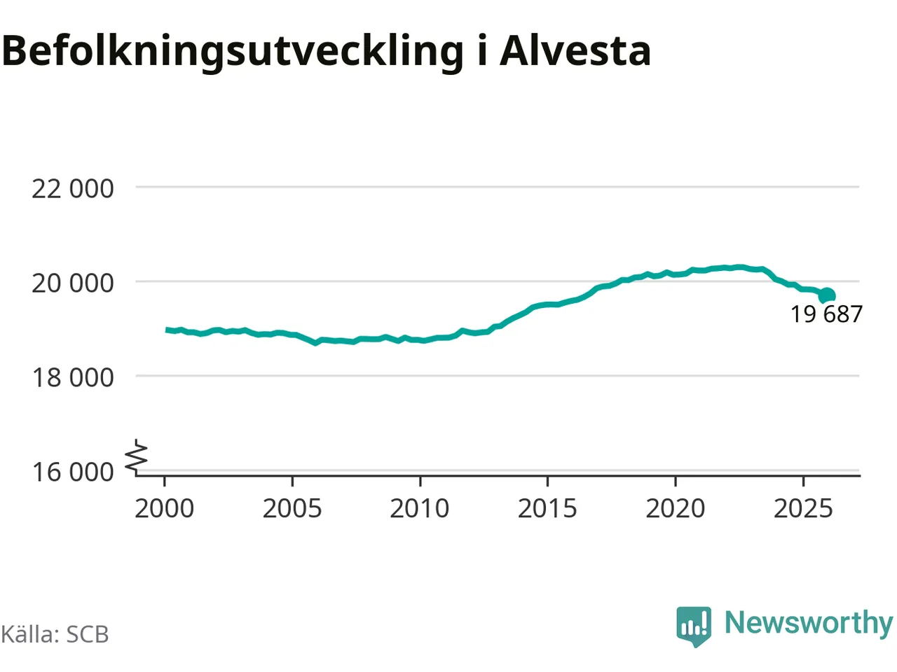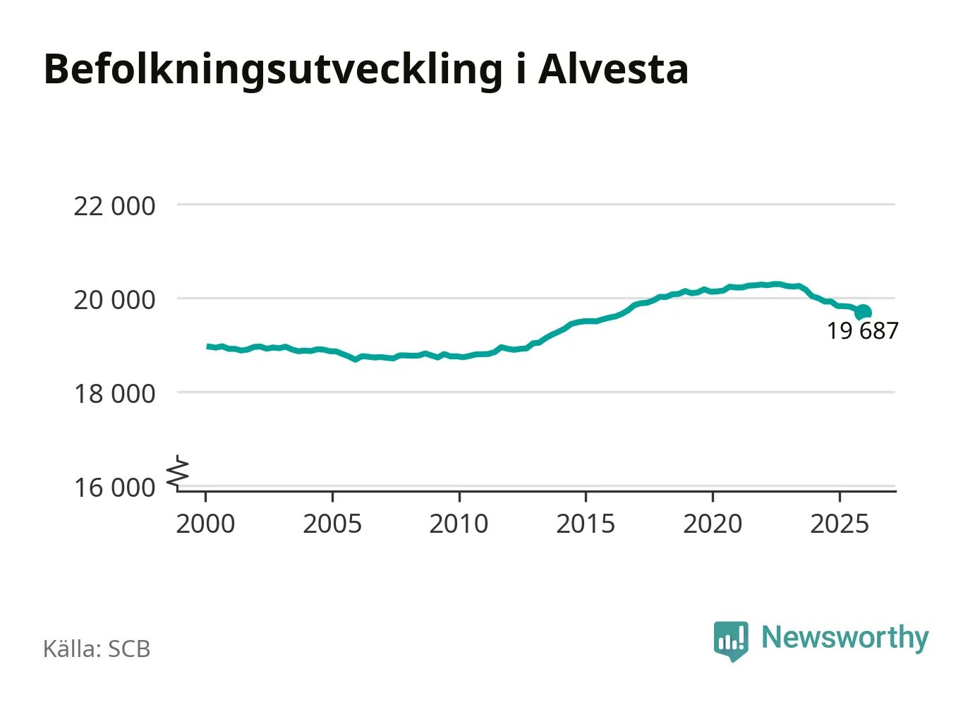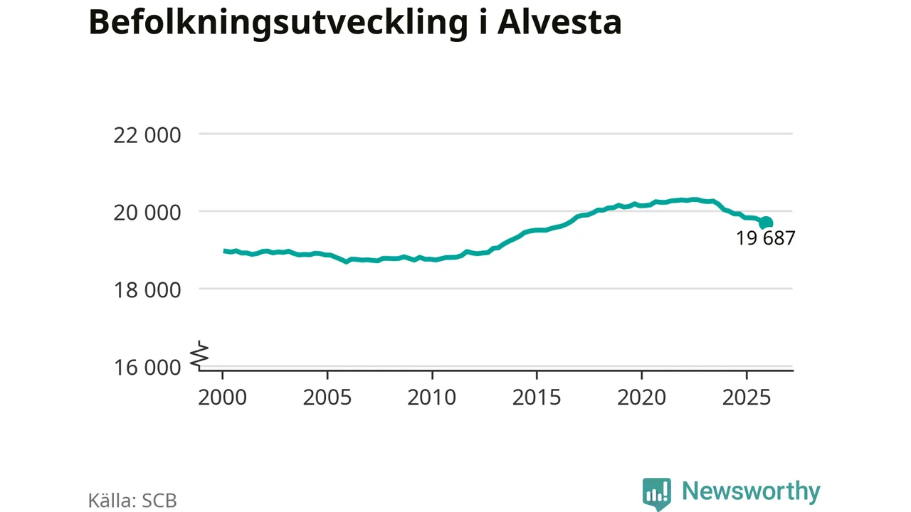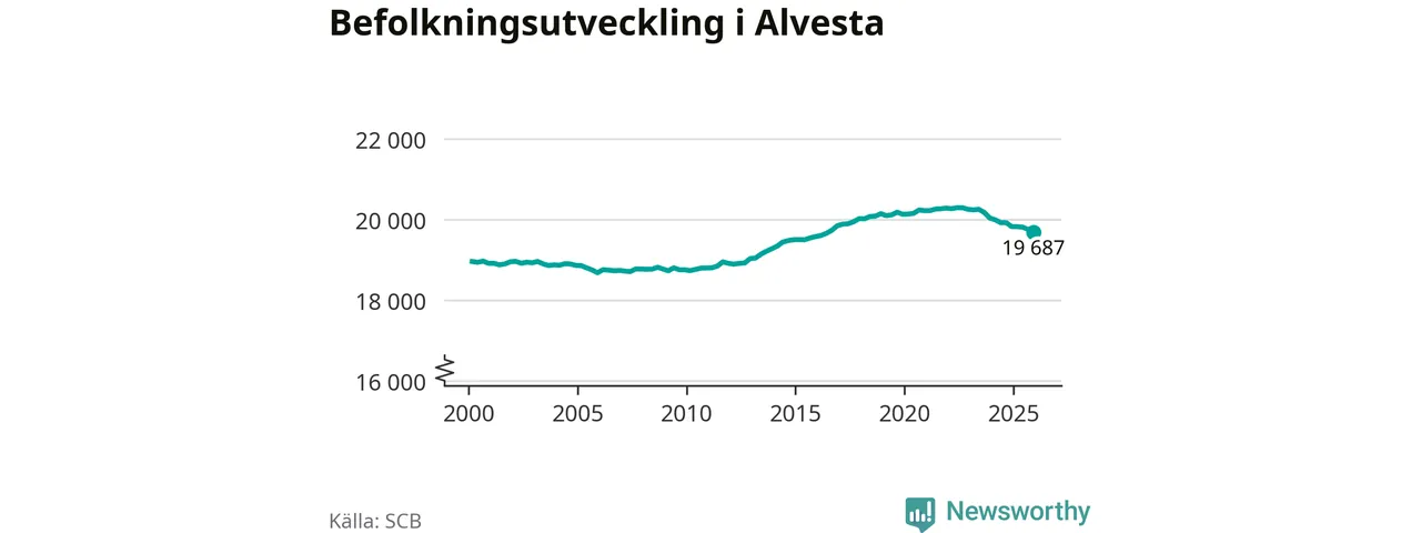 Befolkningen minskade i Alvesta kommun under det fjärde kvartalet 2025. Den 31 december bodde enligt SCB:s senaste siffror 19 687 personer i kommunen, vilket är 73 färre än i slutet av tredje kvartalet.