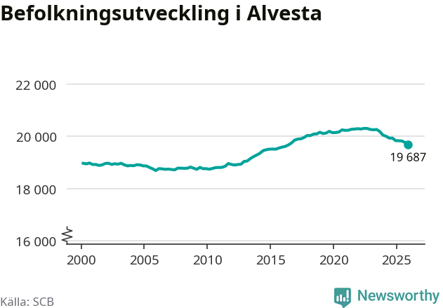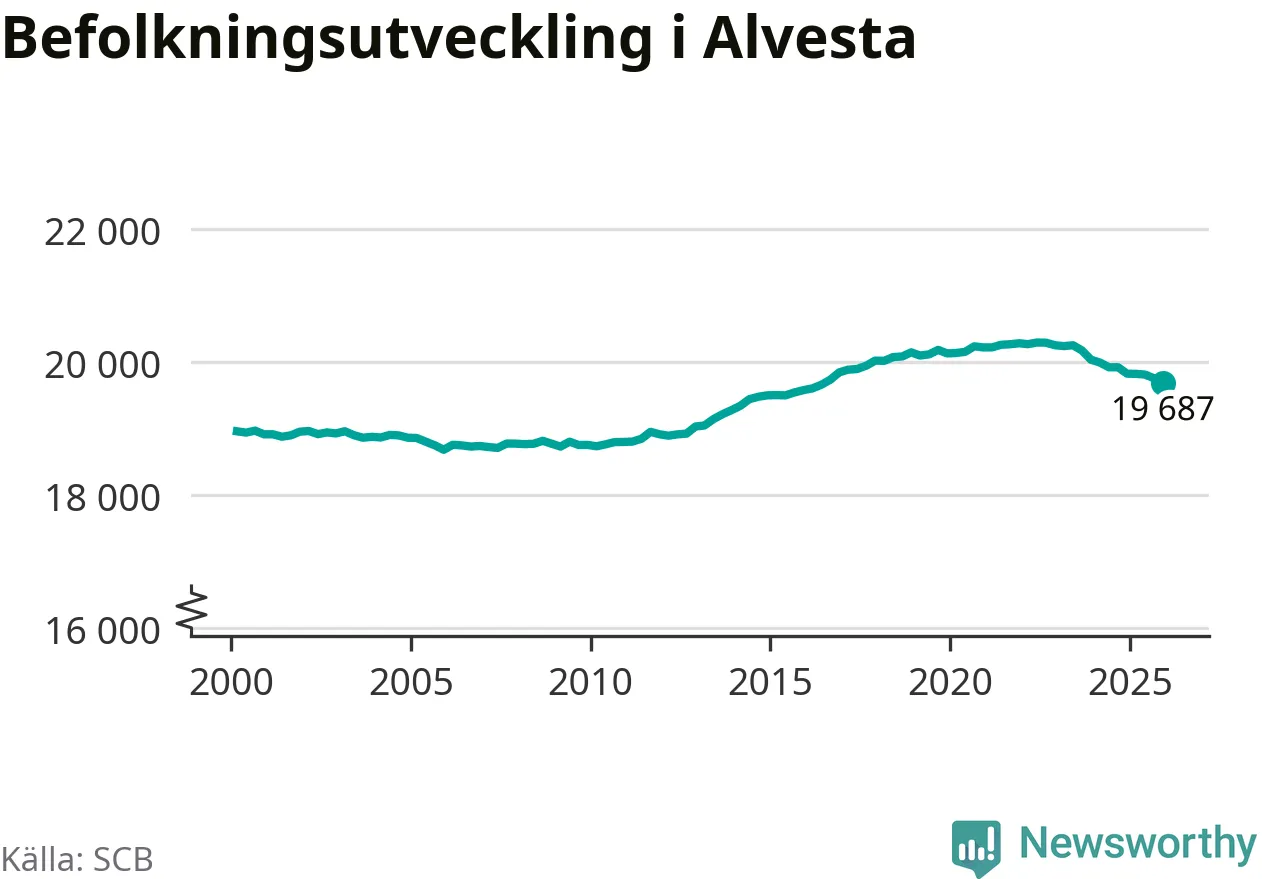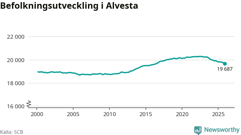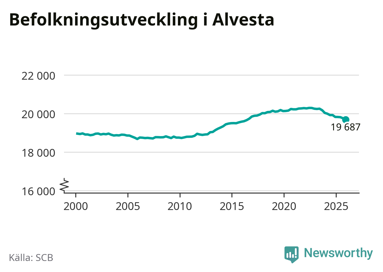 Befolkningen minskade i Alvesta kommun under det fjärde kvartalet 2025. Den 31 december bodde enligt SCB:s senaste siffror 19 687 personer i kommunen, vilket är 73 färre än i slutet av tredje kvartalet.