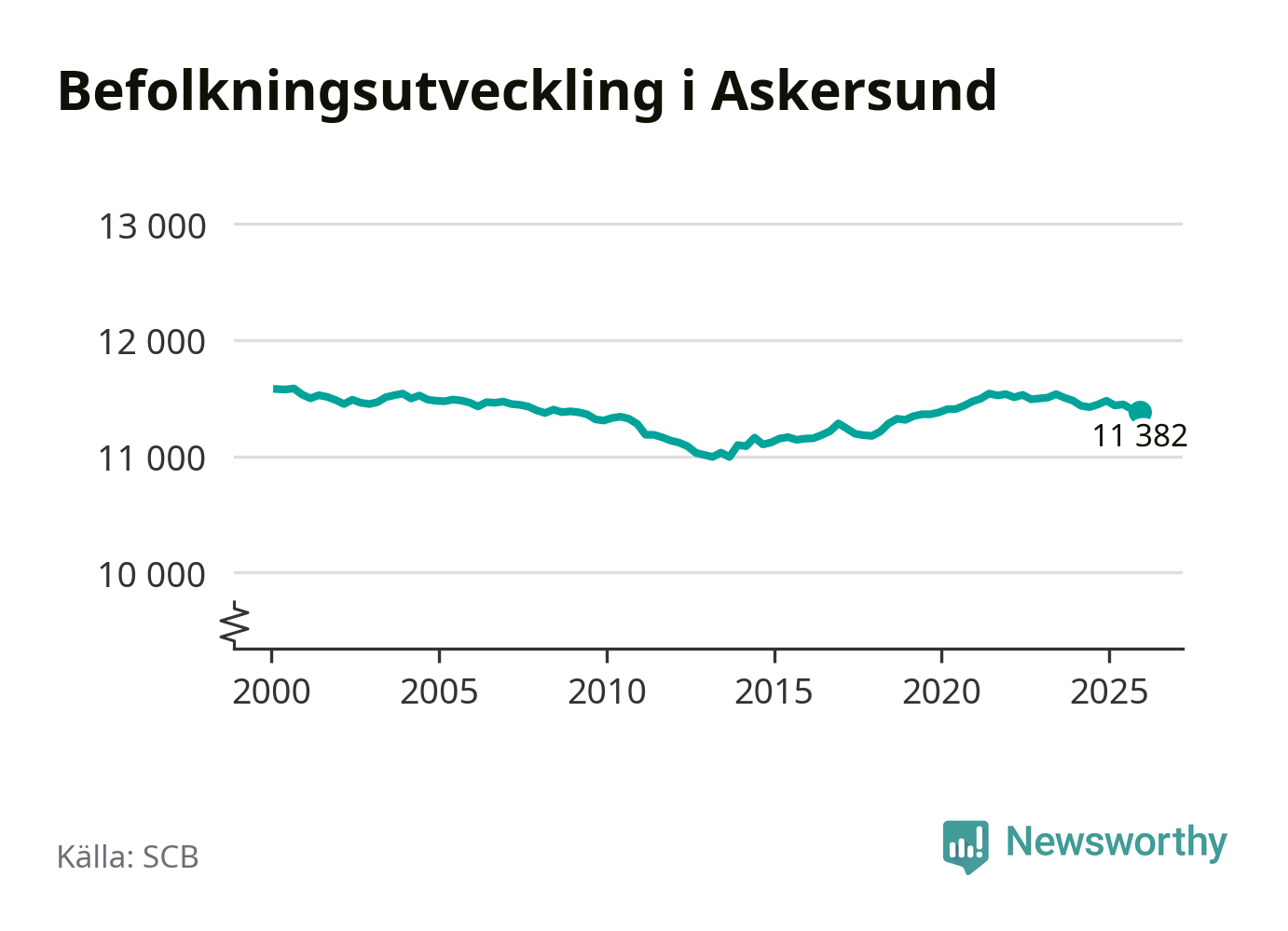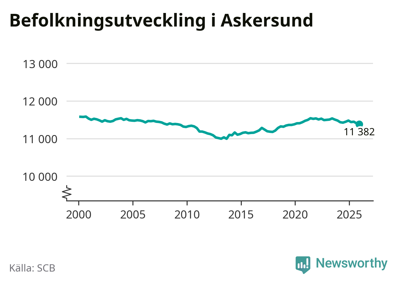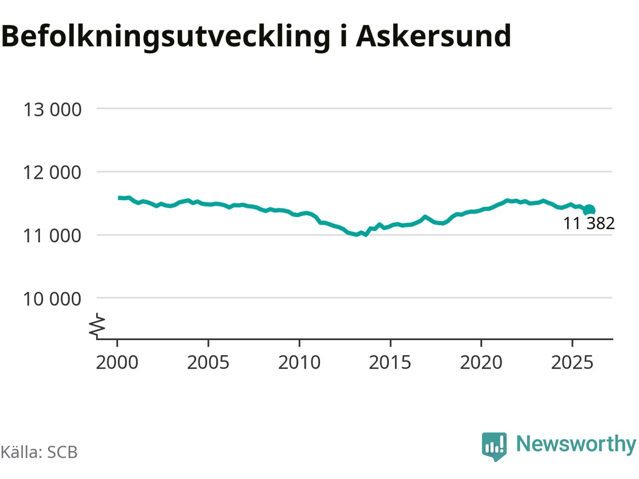 Befolkningen minskade i Askersunds kommun under det fjärde kvartalet 2025. Den 31 december bodde enligt SCB:s senaste siffror 11 382 personer i kommunen, vilket är 23 färre än i slutet av tredje kvartalet.
