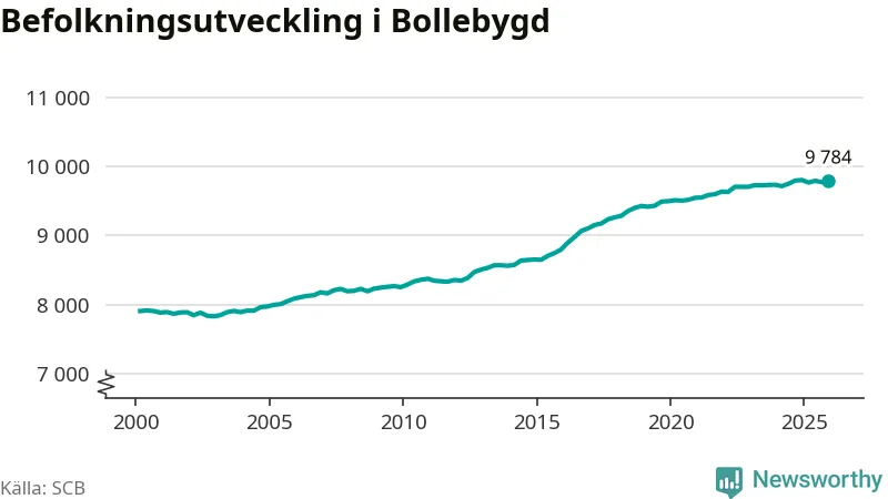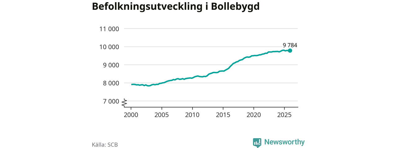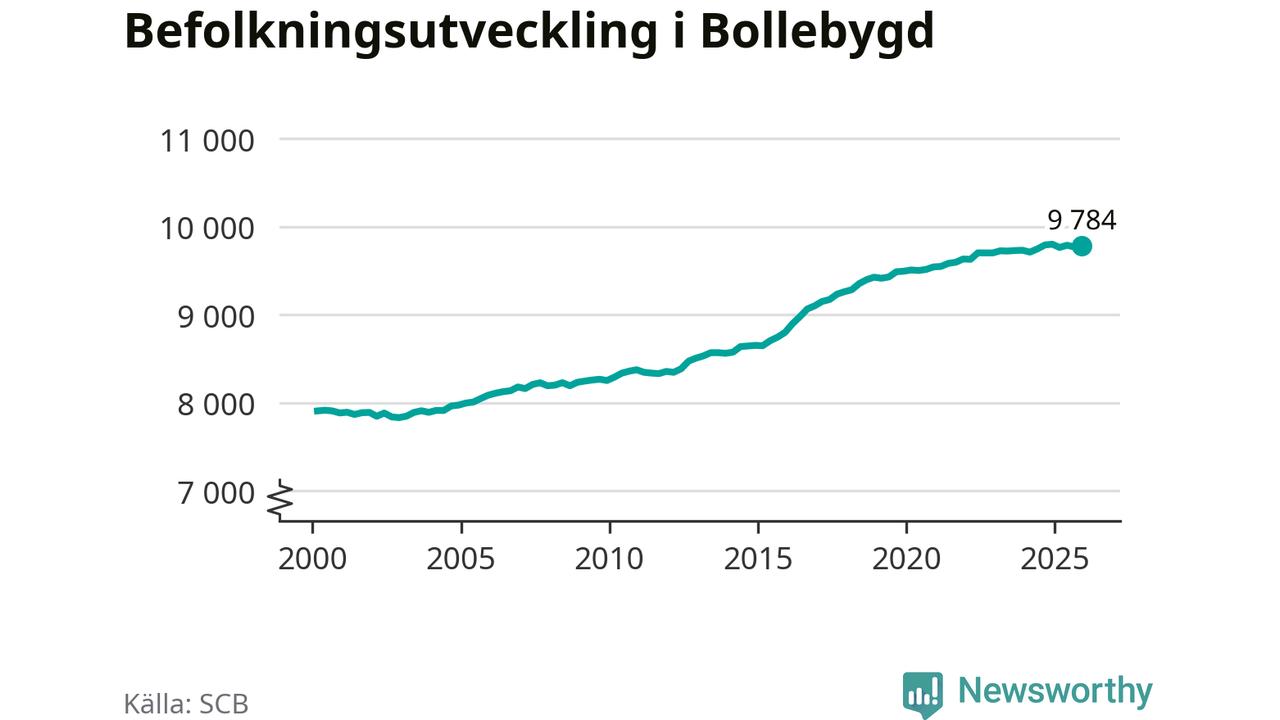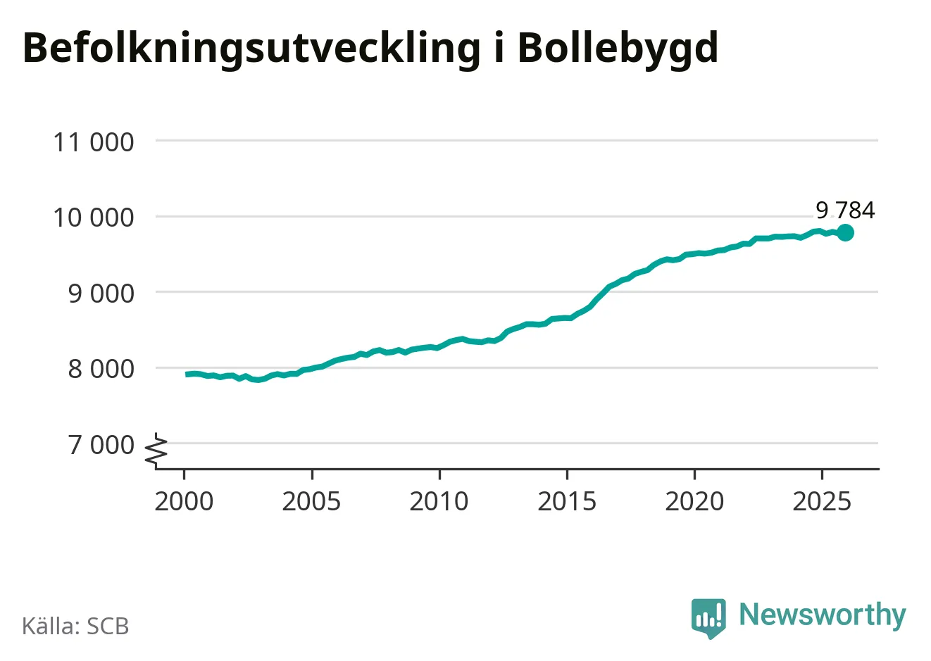 Befolkningen ökade i Bollebygds kommun under det fjärde kvartalet 2025. Den 31 december bodde enligt SCB:s senaste siffror 9 784 personer i kommunen, vilket är 14 fler än i slutet av tredje kvartalet.