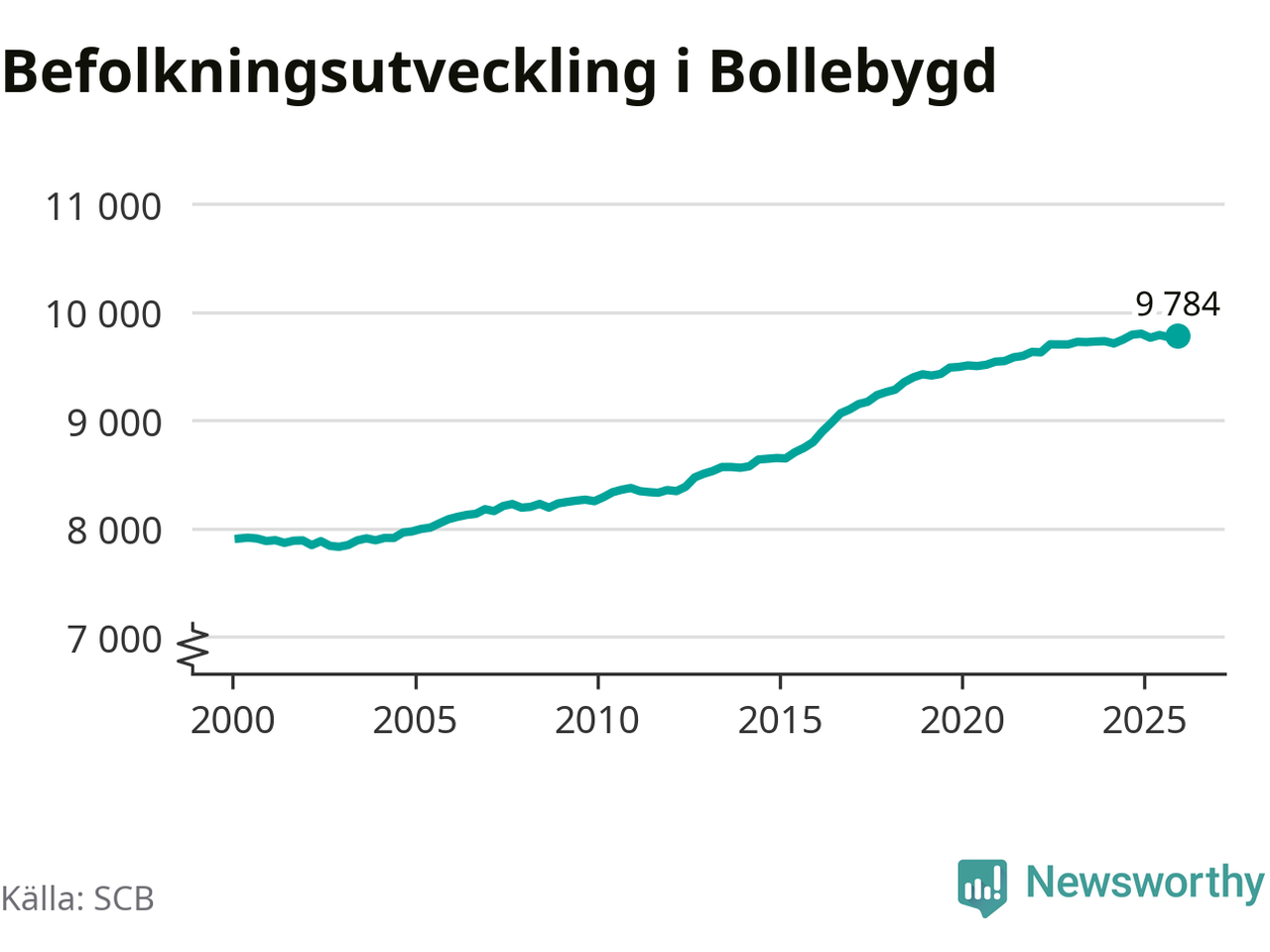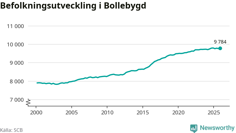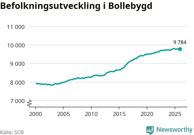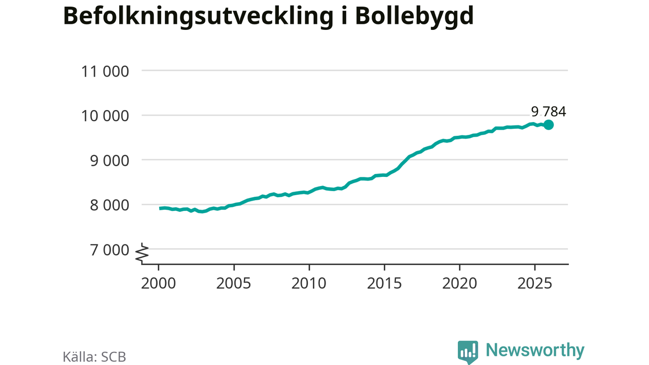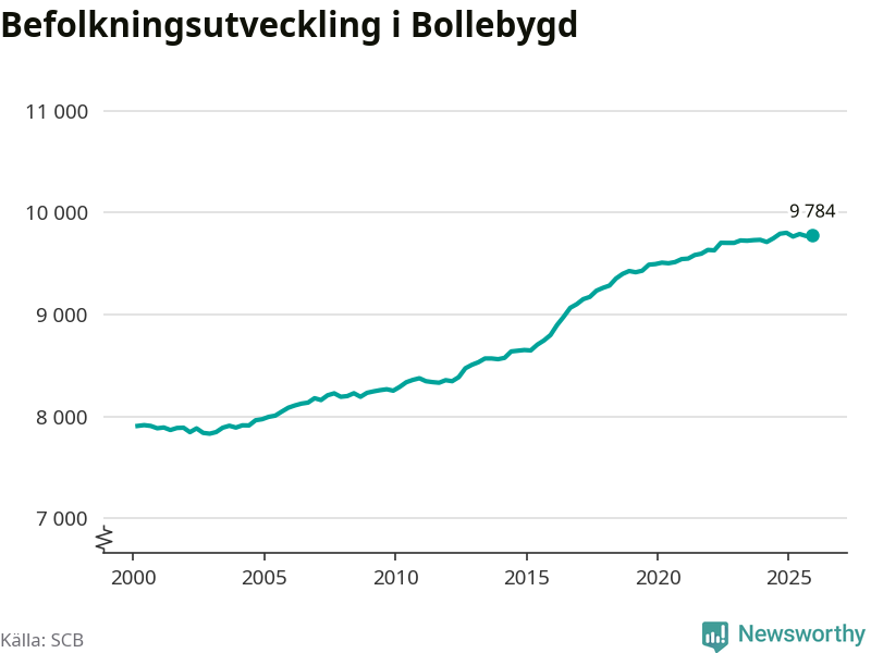 Befolkningen ökade i Bollebygds kommun under det fjärde kvartalet 2025. Den 31 december bodde enligt SCB:s senaste siffror 9 784 personer i kommunen, vilket är 14 fler än i slutet av tredje kvartalet.